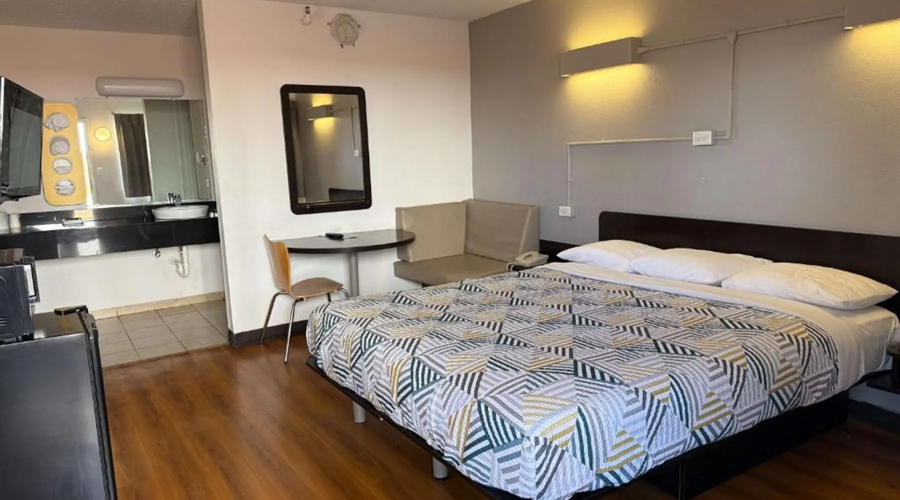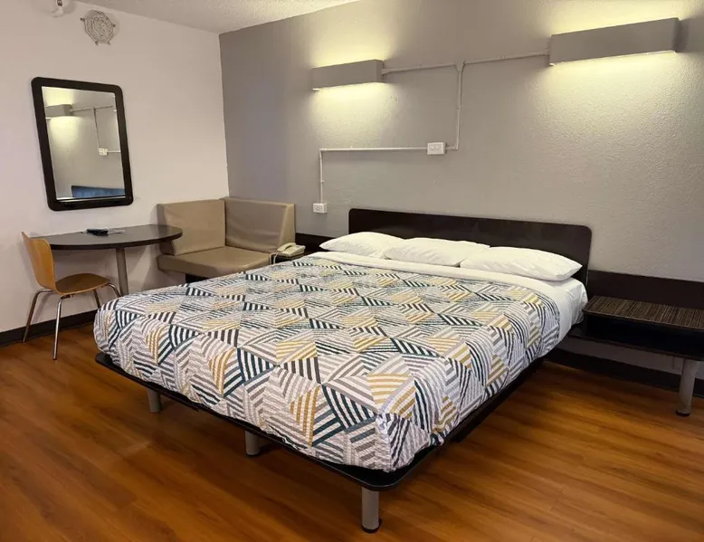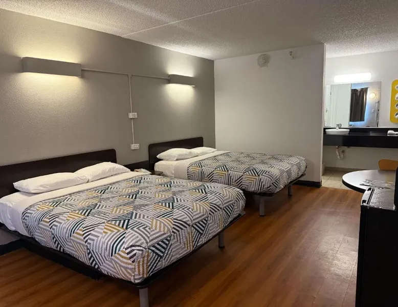 Comfortable Accommodations: Motel 6-Joliet, IL - I-80 in Joliet offers comfortable rooms with air-conditioning, TV, and free WiFi. Each room includes a bath with a walk-in shower, ensuring a pleasant stay. Convenient Facilities: Guests benefit from a 24-hour front desk and a pet-friendly environment. Additional amenities include a walk-in shower and a bath, catering to all needs. Local Attractions: Located 3.7 mi from the Joliet Area Historical Museum and 6.8 mi from Chicagoland Speedway, the hotel provides easy access to nearby points of interest. Midway International Airport is 35 mi away. This room features cable TV and a work desk. Please note that the room rate is based on 2 guests. Maximum occupancy is 4 guests (see Hotel Policies).