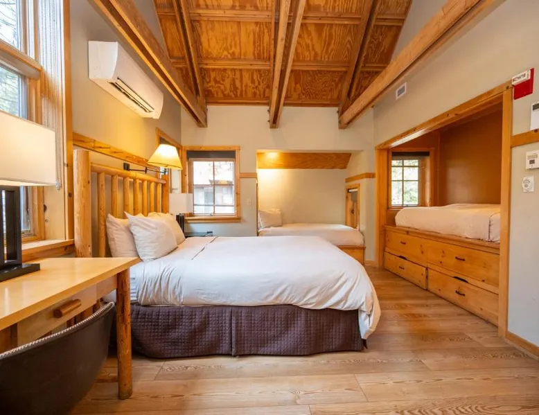 Comfortable Accommodations: Sleeping Lady Mountain Resort in Leavenworth offers family rooms with mountain views, private bathrooms, and modern amenities. Each room includes air-conditioning, a work desk, and a seating area. Exceptional Facilities: Guests enjoy spa facilities, a year-round outdoor swimming pool, and a lush garden. The resort features a hot tub, beauty services, and a fitness center. Free WiFi is available throughout the property. Dining Experience: The family-friendly restaurant serves American cuisine with vegetarian and gluten-free options. Breakfast includes champagne, local specialties, and fresh pastries. Dinner and cocktails are available in a traditional and modern ambiance. Activities and Attractions: Skiing, film nights, walking tours, and cycling are popular activities. Nearby attractions include Osprey Rafting Company (2.6 mi) and Leavenworth Zip Lines (19 mi). Pangborn Memorial Airport is 30 mi away. This guest accommodations includes a loft area that is accessible via ladder. Children under 7 years of age are not allowed in lofts. The main floor features two additional beds.