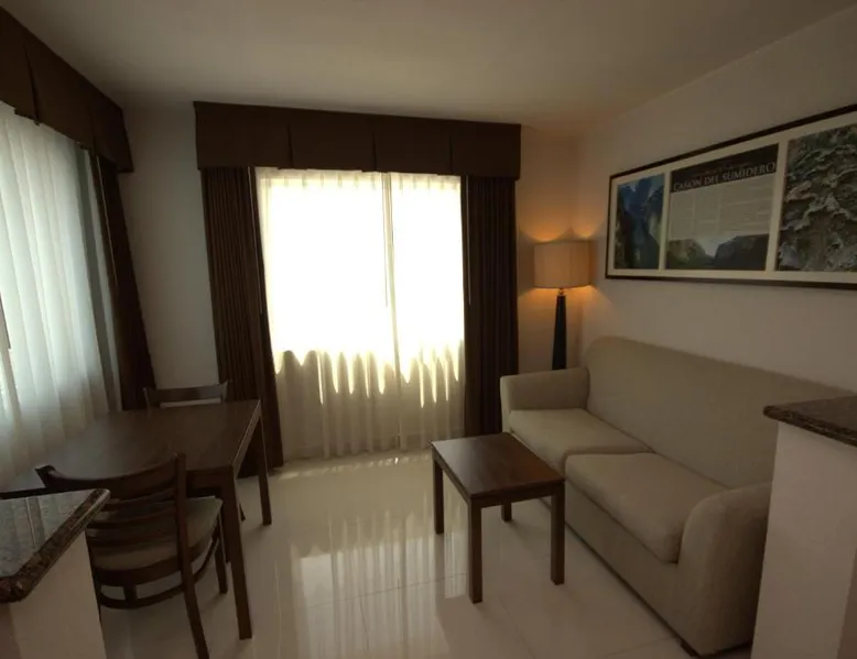 Located next to Marimba Park, this modern hotel offers free Wi-Fi, free private parking and a small gym. The stylish air-conditioned rooms include a coffee maker and flat-screen TV with cable channels. Each spacious room includes a large work desk with a lamp and ergonomic chair. The bathroom features a hairdryer and toiletries. The Holiday Inn serves a free breakfast buffet, including fruit, cereal, eggs and freshly brewed coffee, as well as a daily regional dish. The hotel also offers a 24-hour reception, tour desk and gift shop. Holiday Inn Express Tuxla Gutierrez La Marimba is located on Central Avenue, just 0.6 mi from the historic center of Tuxla Gutierrez. Ángel Albino Corzo International Airport is a 35-minute drive away. This stylish air-conditioned suite includes a separate living area with a kitchenette and 2 flat-screen TVs with cable channels. It also offers free Wi-Fi and a large work desk with a lamp and ergonomic chair. The bathroom features a hairdryer and toiletries.