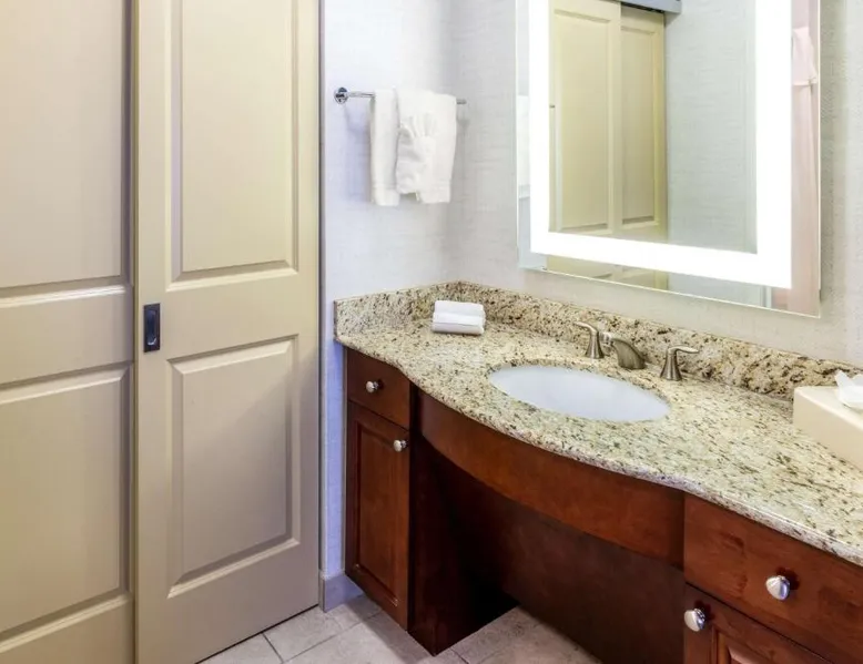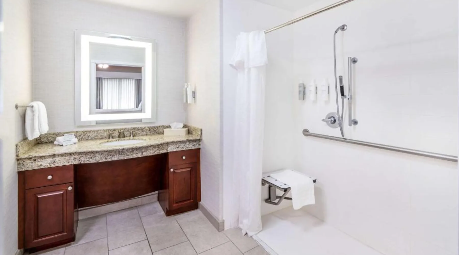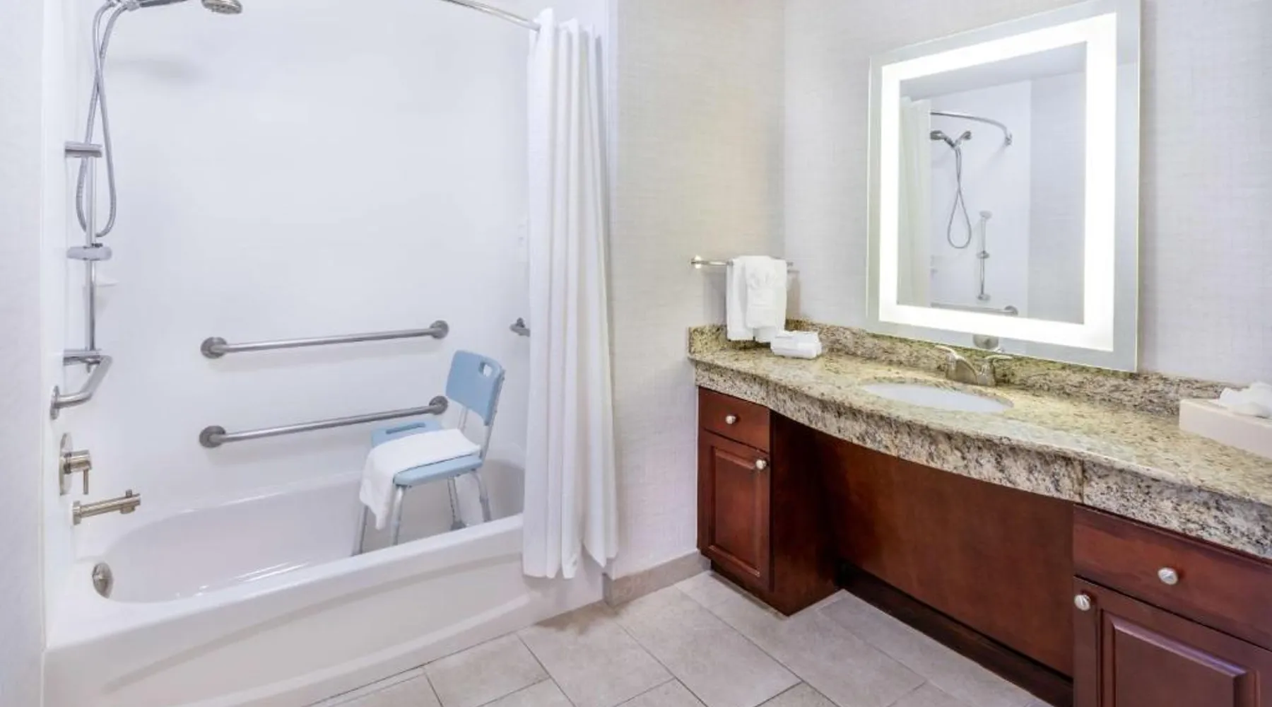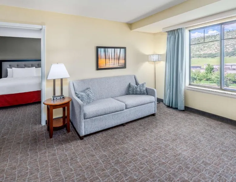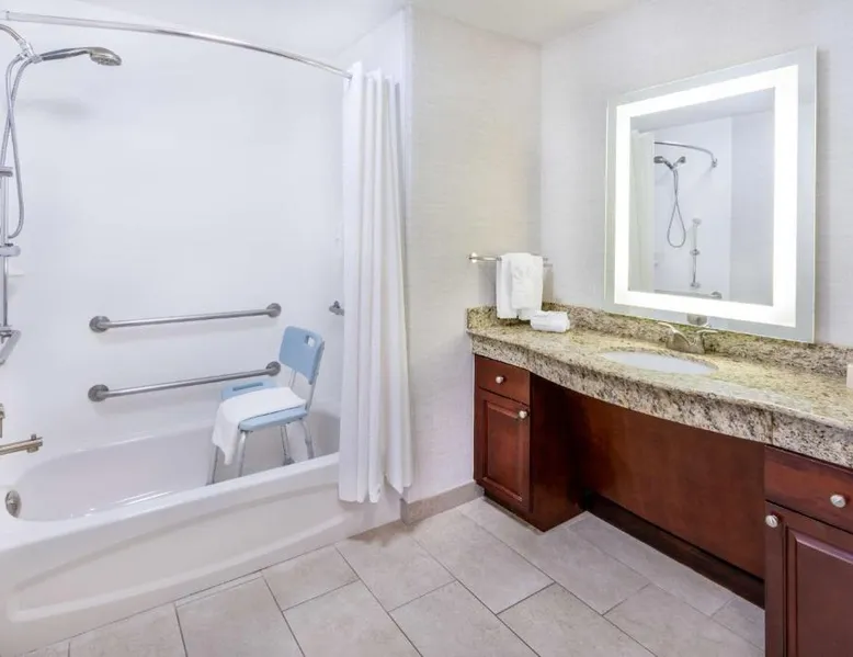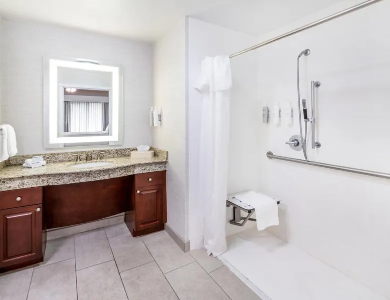 Comfortable Accommodations: Homewood Suites by Hilton Denver - Littleton in Littleton offers spacious rooms with air-conditioning, kitchen facilities, and free WiFi. Guests enjoy amenities such as a fitness center, indoor swimming pool, and hot tub. Convenient Facilities: The hotel features a lounge, fitness room, elevator, and 24-hour front desk. Additional amenities include a minimarket, child-friendly buffet, outdoor seating area, and family rooms. Free on-site private parking is available. Dining Options: A buffet breakfast is served daily, highly appreciated by guests. The property also offers a variety of dining options, including a child-friendly buffet and outdoor seating area. Nearby Attractions: Located 37 mi from Denver International Airport, the hotel is close to Red Rocks Park and Amphitheater (11 mi), Bear Creek Ranch (6.2 mi), and Chatfield State Park (15 mi). Guests can enjoy activities such as hiking and fishing. This mobility and hearing accessible nonsmoking studio features a separate seating area with a flat-screen TV featuring premium cable channels and a DVD player. A full kitchen is offered. This studio also offers an accessible bathtub. The room has a visual alarm and notification device for the doorbell or door knock, and incoming telephone calls.