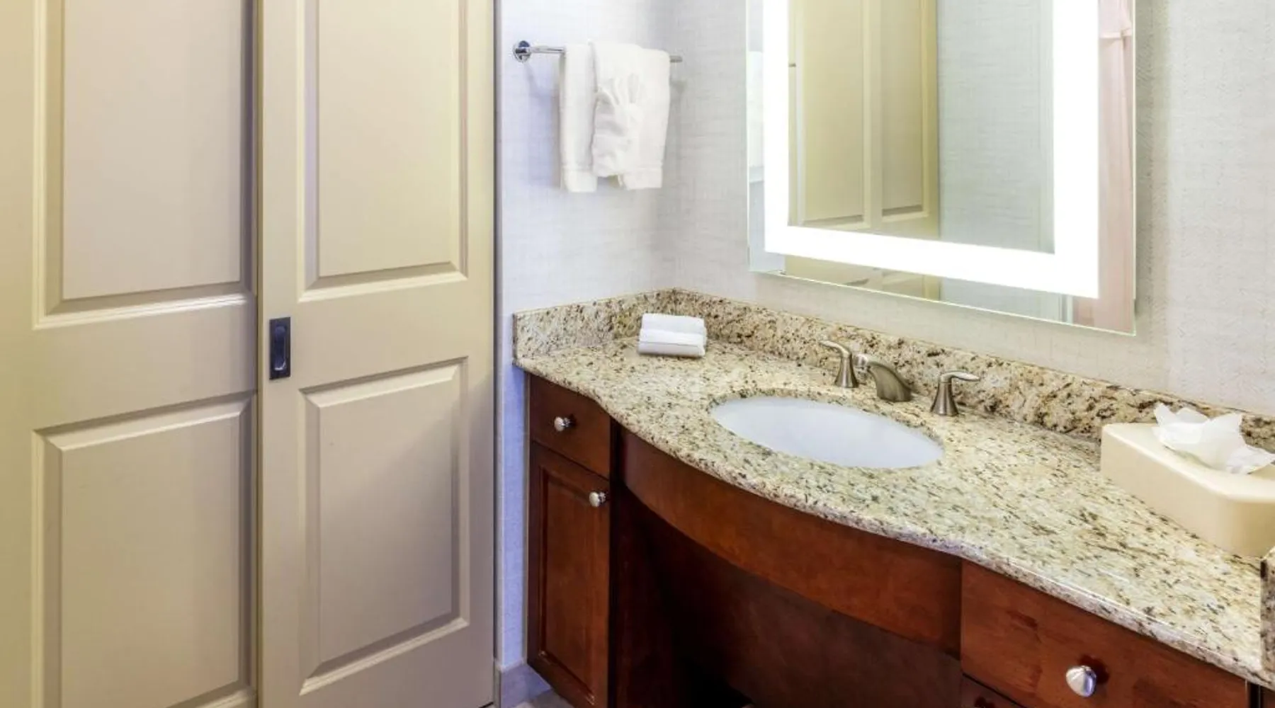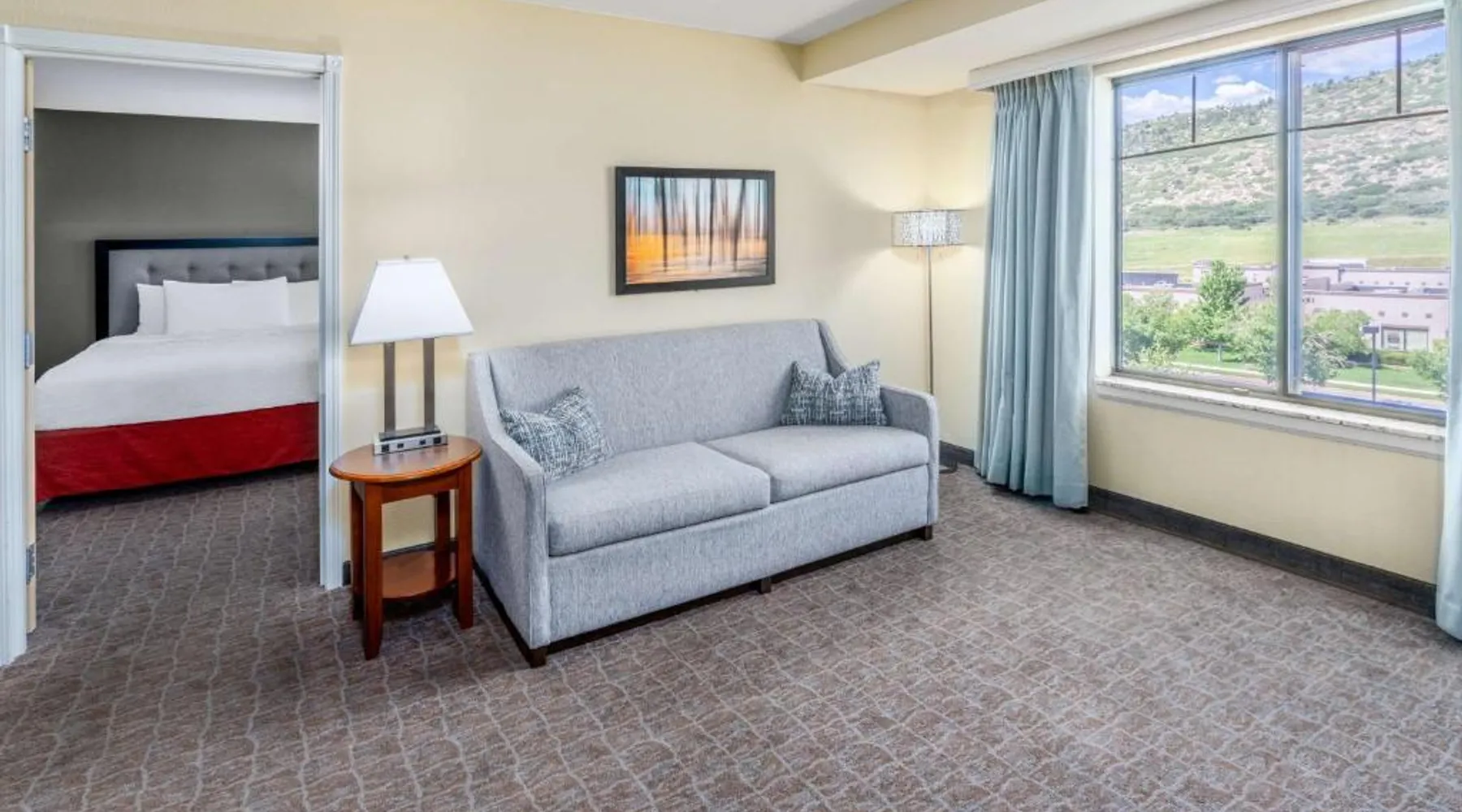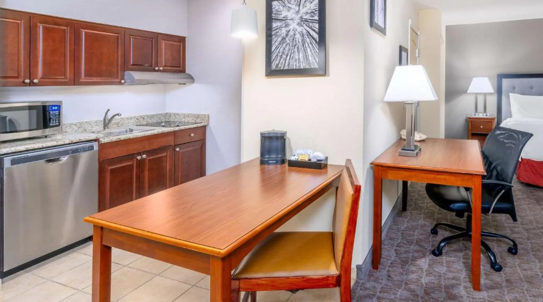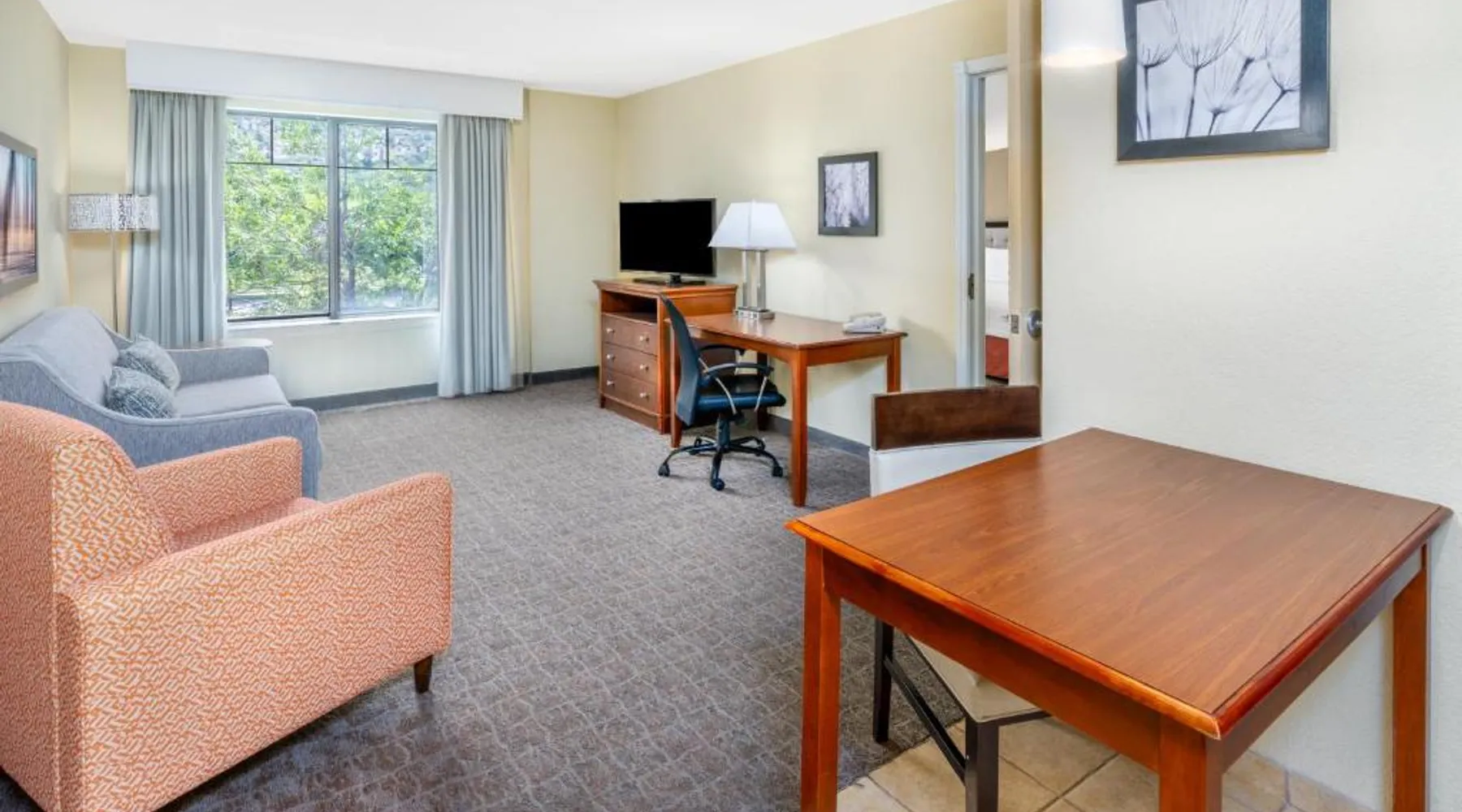 Comfortable Accommodations: Homewood Suites by Hilton Denver - Littleton in Littleton offers spacious rooms with air-conditioning, kitchen facilities, and free WiFi. Guests enjoy amenities such as a fitness center, indoor swimming pool, and hot tub. Convenient Facilities: The hotel features a lounge, fitness room, elevator, and 24-hour front desk. Additional amenities include a minimarket, child-friendly buffet, outdoor seating area, and family rooms. Free on-site private parking is available. Dining Options: A buffet breakfast is served daily, highly appreciated by guests. The property also offers a variety of dining options, including a child-friendly buffet and outdoor seating area. Nearby Attractions: Located 37 mi from Denver International Airport, the hotel is close to Red Rocks Park and Amphitheater (11 mi), Bear Creek Ranch (6.2 mi), and Chatfield State Park (15 mi). Guests can enjoy activities such as hiking and fishing. This mobility and hearing accessible nonsmoking studio features a separate seating area with a flat-screen TV featuring premium cable channels and a DVD player. A full kitchen is offered. This studio also offers an accessible bathtub. The room has a visual alarm and notification device for the doorbell or door knock, and incoming telephone calls.