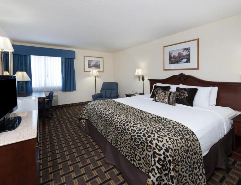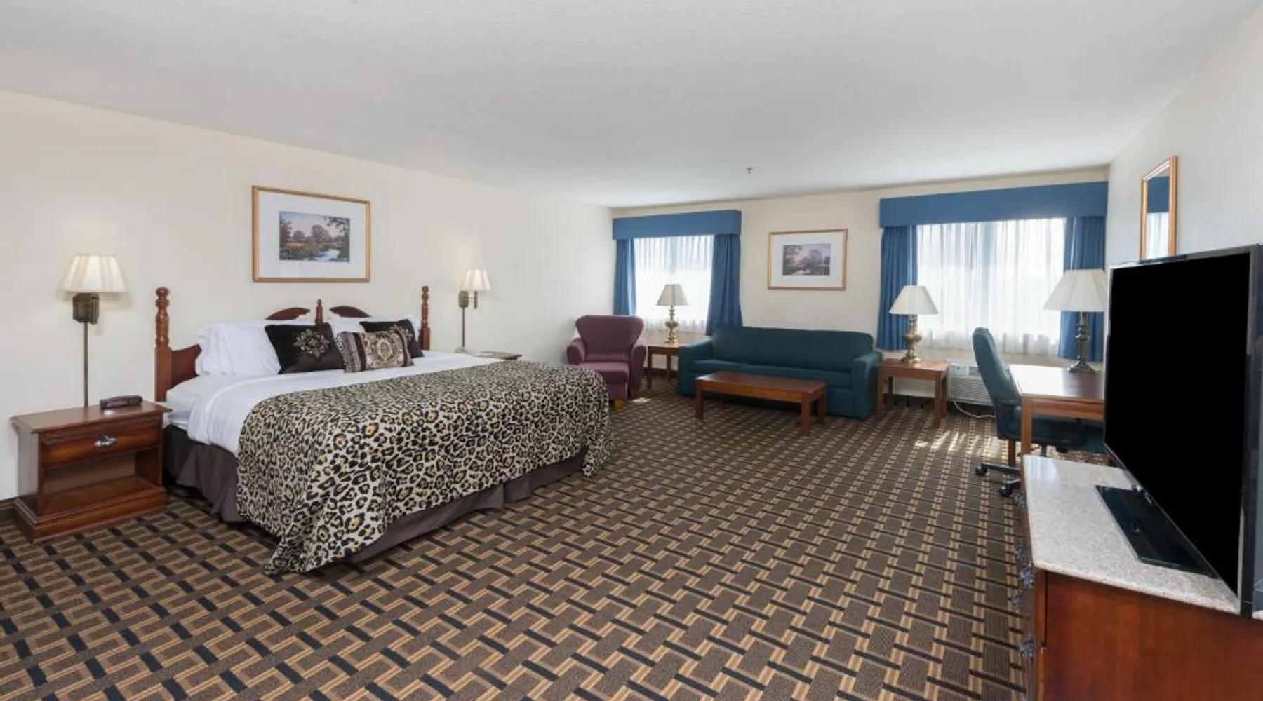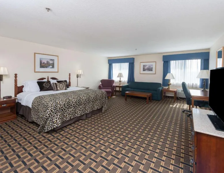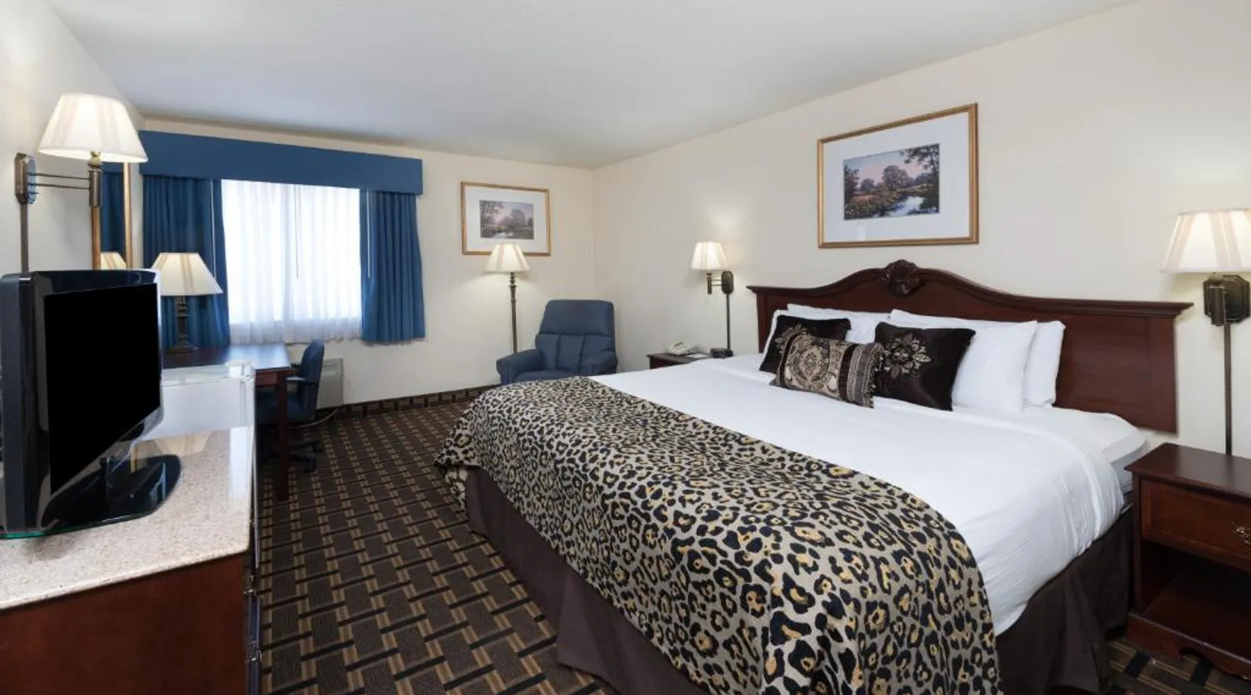 Comfortable Accommodations: Baymont by Wyndham Osage Beach in Osage Beach offers family rooms with air-conditioning, private bathrooms, and modern amenities. Each room includes a work desk, TV, and free WiFi. Exceptional Facilities: Guests enjoy a waterpark, lounge, and coffee shop. Additional services include private check-in and check-out, concierge, and electric vehicle charging. Free on-site parking is available. Dining Options: A continental breakfast with juice, pancakes, cheese, and fruits is served daily. The hotel also features a child-friendly buffet and outdoor dining area. Activities and Location: Located 63 mi from Waynesville-St. Robert Regional Airport, the hotel offers fishing, skiing, windsurfing, and cycling. Guests appreciate the convenient location and room comfort. This family room has a tea/coffee maker, microwave and air conditioning. This family room has a refrigerator and free wi-fi.