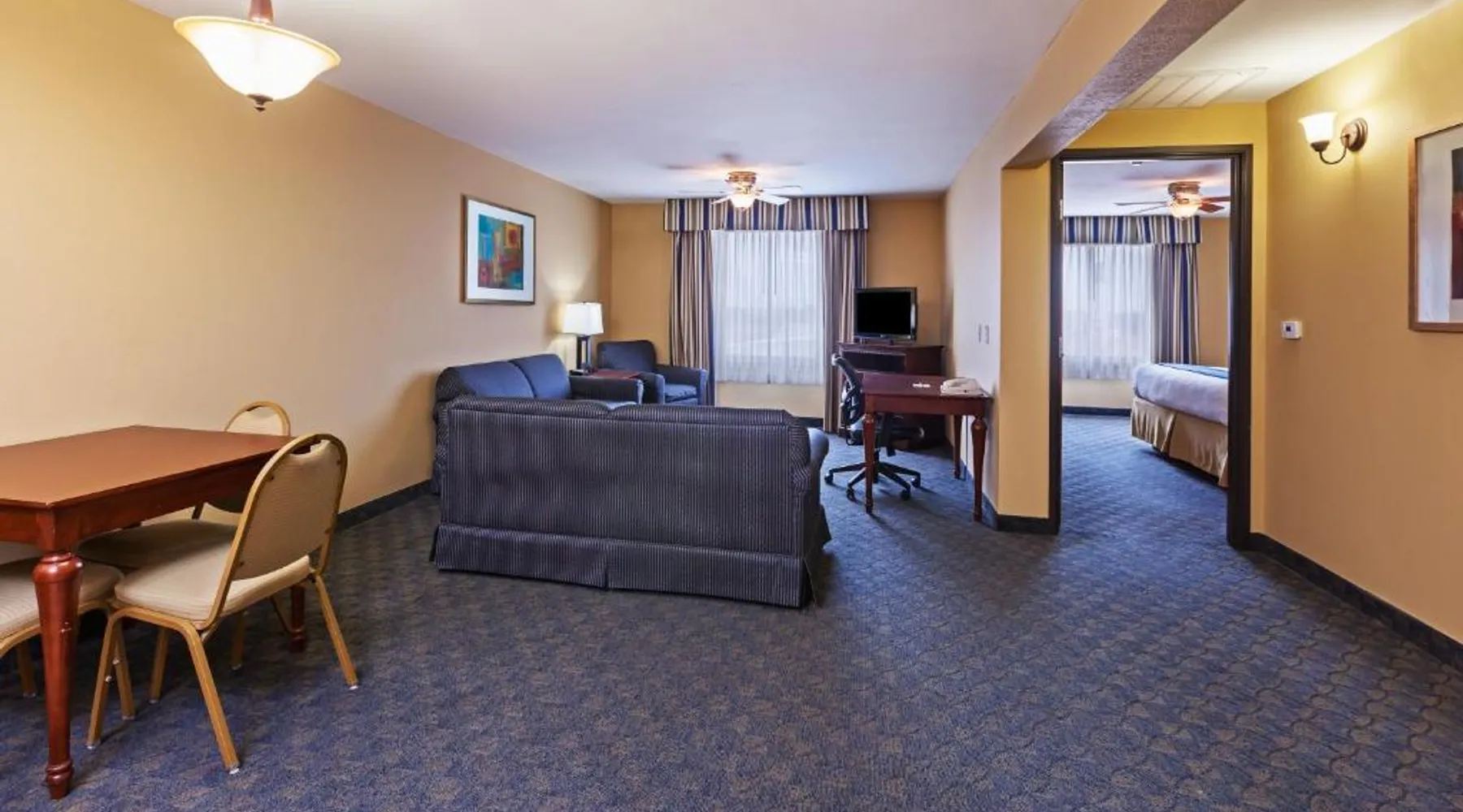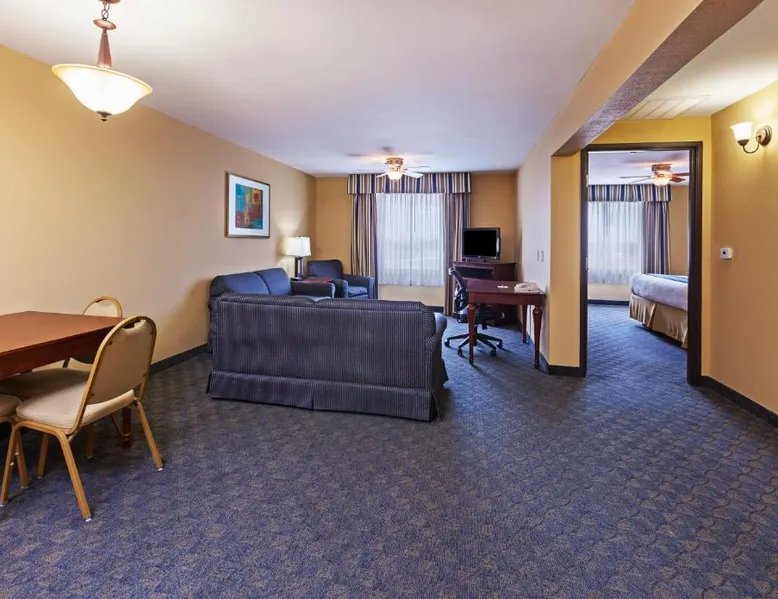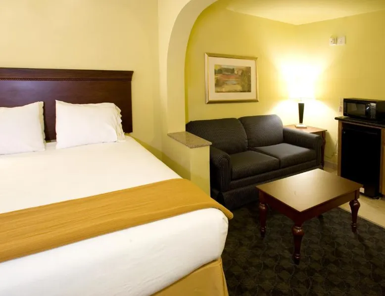 Comfortable Accommodations: Holiday Inn Express & Suites, Corpus Christi NW, Calallen by IHG in Corpus Christi offers family rooms with air-conditioning, private bathrooms, and modern amenities. Each room includes a tea and coffee maker, refrigerator, work desk, and free toiletries. Leisure Facilities: Guests can enjoy a fitness center, year-round outdoor swimming pool, and outdoor seating areas. Additional amenities include a minimarket, picnic area, and barbecue facilities. Free on-site parking is available. Convenient Location: Located 11 mi from Corpus Christi International Airport and 17 mi from the American Bank Center Convention Center. Highly rated for room cleanliness, attentive staff, and breakfast provided by the property. Spacious suite features a seating area with sofa bed, 32-inch flat-screen cable TV, a microwave and fridge.
