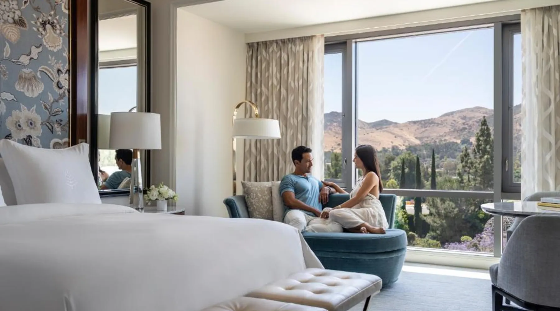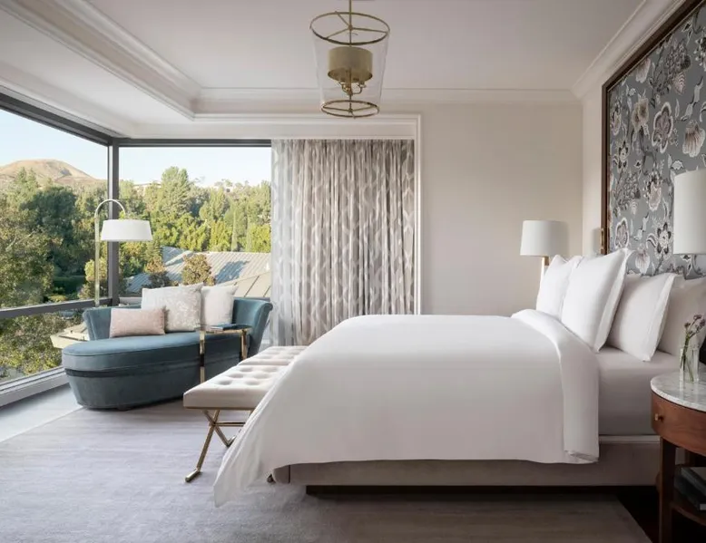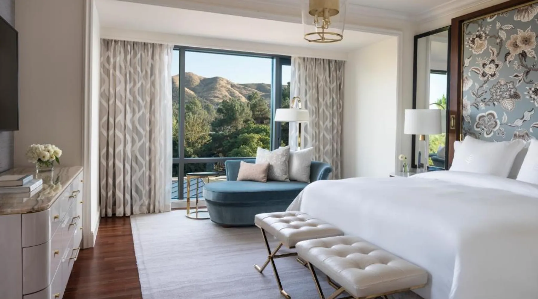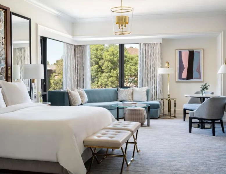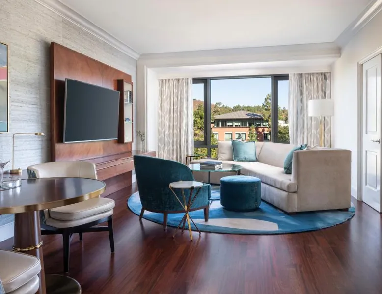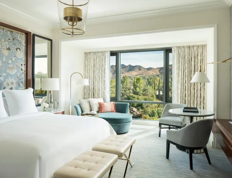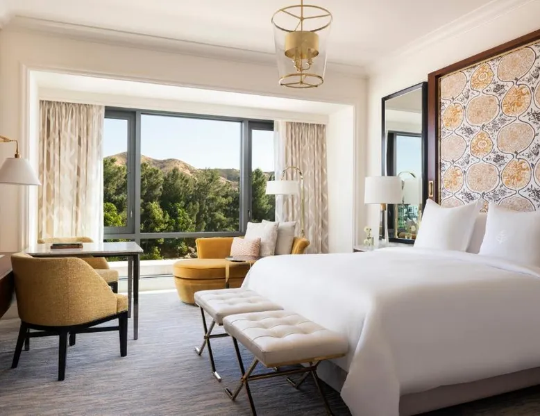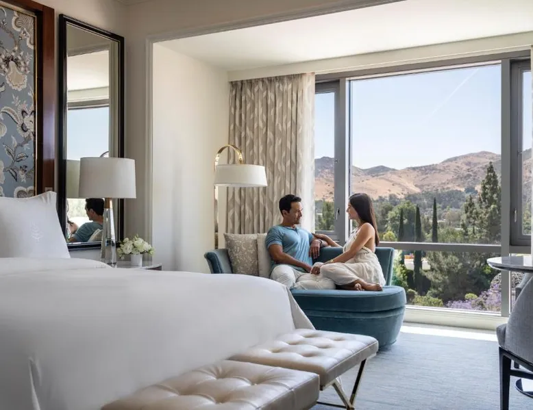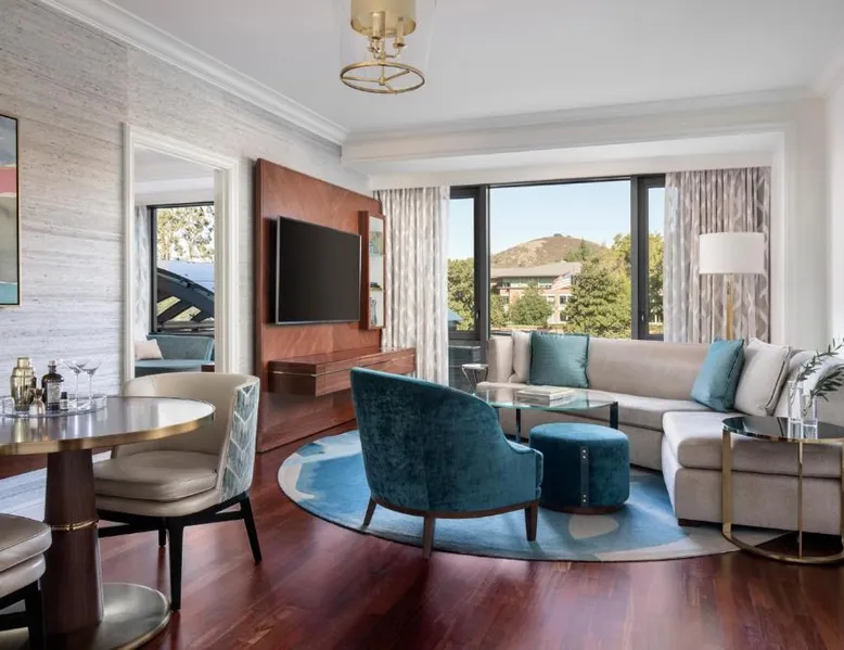 Featuring an outdoor pool with poolside dinning, this luxury resort is 15 mi from Zuma Beach and the ocean views of Pacific Coast Highway. Two fine dining options and full service spa is provided on-site. Select suites feature views of waterfalls at Four Seasons Hotel Westlake Village. Styled in refined furnishings, each elegant room provides terry cloth bathrobes, slippers and free spa toiletries. Free Wi-Fi for one device, a flat-screen TV and an iPod docking station are also included. Locally sourced, ONYX Japanese Restaurant features fresh sushi rolls and specialty cocktails in the Lobby Lounge. Pollo al forno, malanzane ala pergamina and other traditional Italian dished are featured at Mercato Italiano at Westlake Village Four Seasons Hotel. Valet parking and an indoor swimming pool are offered as well. In-room dining, concierge services, dry cleaning services and a fitness center are available to ensure guests have a comfortable stay at Four Seasons Hotel Westlake Village. Pepperdine University Malibu Campus and The Ronald Reagan Presidential Library and Museum are 15 mi away. Getty Villa is 25 mi away. Los Angeles International Airport is 45 minutes’ drive away from Four Seasons Hotel Westlake Village. This corner suite features views of the waterfall from the bedroom and includes hardwood floors and crystal chandeliers. A marble master bathroom is included with plush bathrobes and a large soaking tub. A guest bathroom is available near the entrance. A 42-inch flat-screen TV is provided in the bedroom and a 12-inch flat-screen TV is featured in the bathroom.
