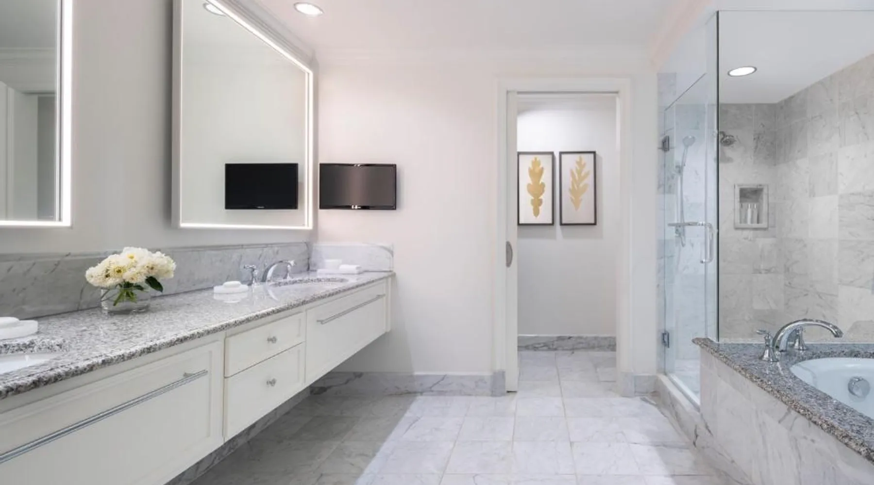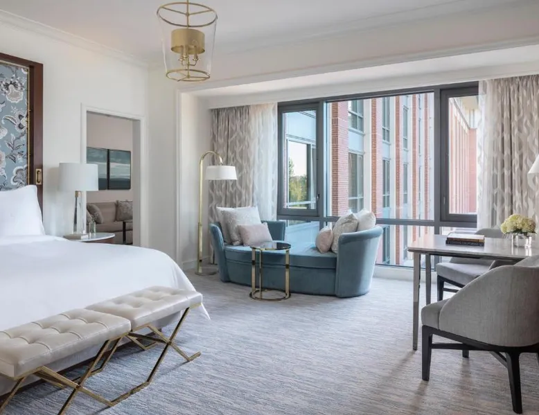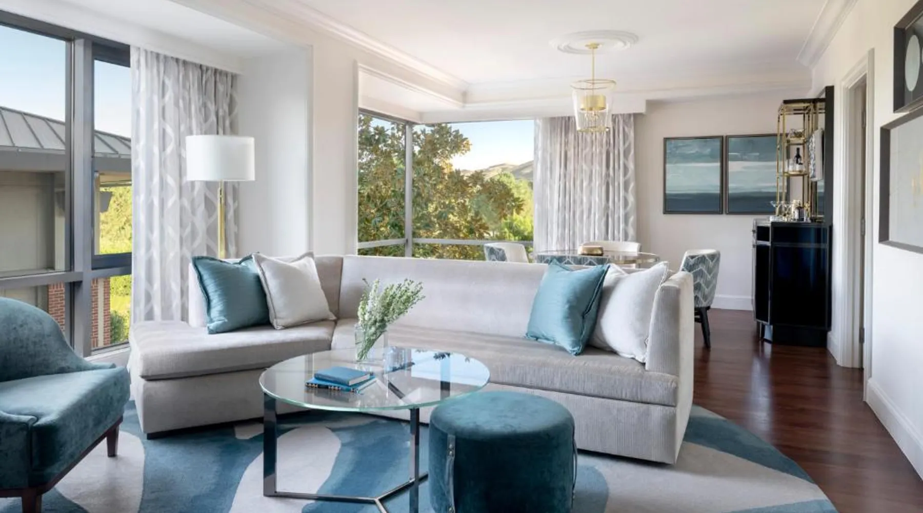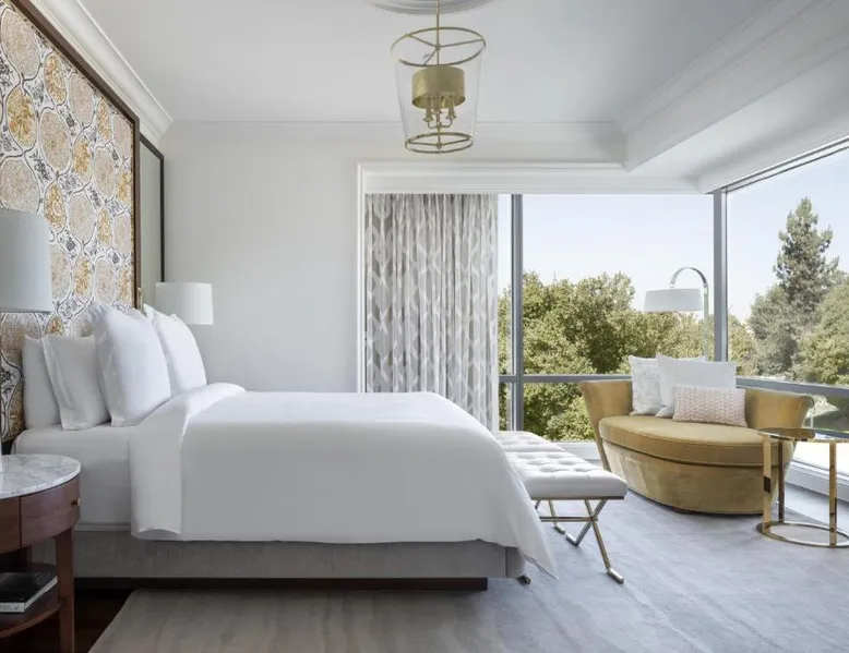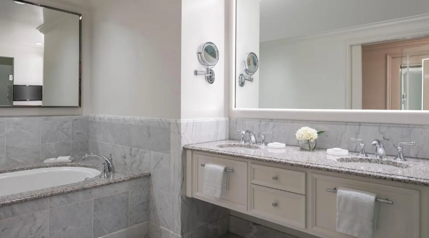 Featuring an outdoor pool with poolside dinning, this luxury resort is 15 mi from Zuma Beach and the ocean views of Pacific Coast Highway. Two fine dining options and full service spa is provided on-site. Select suites feature views of waterfalls at Four Seasons Hotel Westlake Village. Styled in refined furnishings, each elegant room provides terry cloth bathrobes, slippers and free spa toiletries. Free Wi-Fi for one device, a flat-screen TV and an iPod docking station are also included. Locally sourced, ONYX Japanese Restaurant features fresh sushi rolls and specialty cocktails in the Lobby Lounge. Pollo al forno, malanzane ala pergamina and other traditional Italian dished are featured at Mercato Italiano at Westlake Village Four Seasons Hotel. Valet parking and an indoor swimming pool are offered as well. In-room dining, concierge services, dry cleaning services and a fitness center are available to ensure guests have a comfortable stay at Four Seasons Hotel Westlake Village. Pepperdine University Malibu Campus and The Ronald Reagan Presidential Library and Museum are 15 mi away. Getty Villa is 25 mi away. Los Angeles International Airport is 45 minutes’ drive away from Four Seasons Hotel Westlake Village. This corner suite features views of the waterfall from the bedroom and includes hardwood floors and crystal chandeliers. A marble master bathroom is included with plush bathrobes and a large soaking tub. A guest bathroom is available near the entrance. A 42-inch flat-screen TV is provided in the bedroom and a 12-inch flat-screen TV is featured in the bathroom.