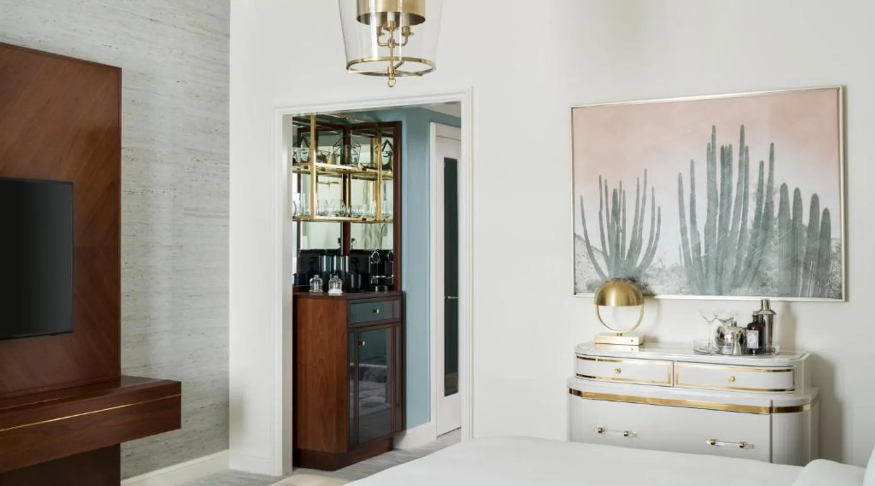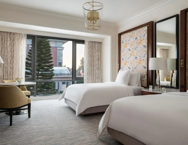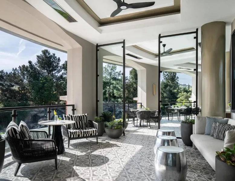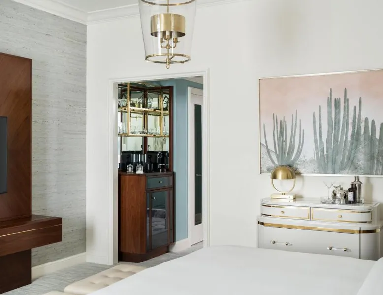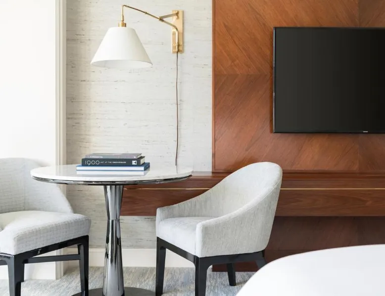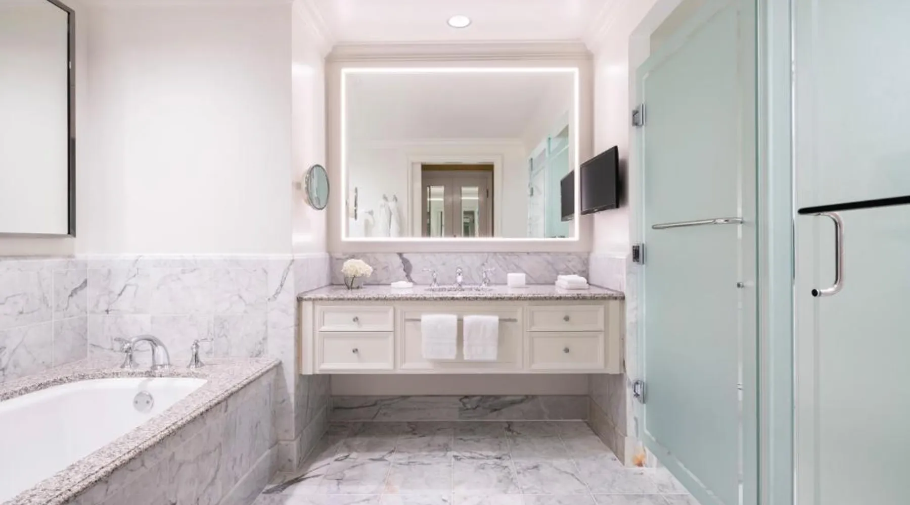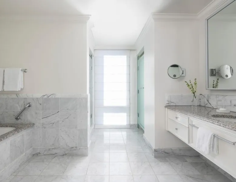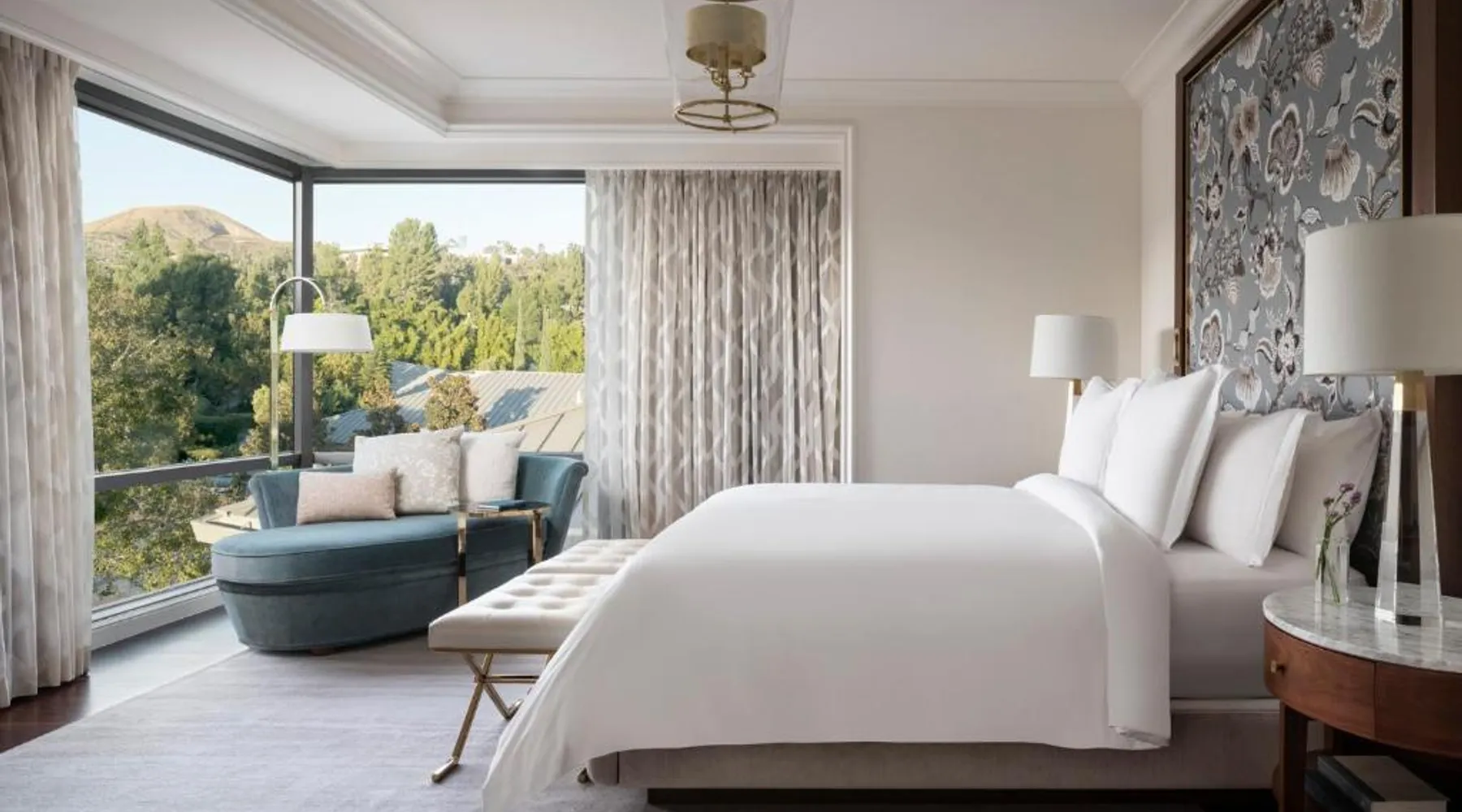 Featuring an outdoor pool with poolside dinning, this luxury resort is 15 mi from Zuma Beach and the ocean views of Pacific Coast Highway. Two fine dining options and full service spa is provided on-site. Select suites feature views of waterfalls at Four Seasons Hotel Westlake Village. Styled in refined furnishings, each elegant room provides terry cloth bathrobes, slippers and free spa toiletries. Free Wi-Fi for one device, a flat-screen TV and an iPod docking station are also included. Locally sourced, ONYX Japanese Restaurant features fresh sushi rolls and specialty cocktails in the Lobby Lounge. Pollo al forno, malanzane ala pergamina and other traditional Italian dished are featured at Mercato Italiano at Westlake Village Four Seasons Hotel. Valet parking and an indoor swimming pool are offered as well. In-room dining, concierge services, dry cleaning services and a fitness center are available to ensure guests have a comfortable stay at Four Seasons Hotel Westlake Village. Pepperdine University Malibu Campus and The Ronald Reagan Presidential Library and Museum are 15 mi away. Getty Villa is 25 mi away. Los Angeles International Airport is 45 minutes’ drive away from Four Seasons Hotel Westlake Village. This corner suite features views of the waterfall from the bedroom and includes hardwood floors and crystal chandeliers. A marble master bathroom is included with plush bathrobes and a large soaking tub. A guest bathroom is available near the entrance. A 42-inch flat-screen TV is provided in the bedroom and a 12-inch flat-screen TV is featured in the bathroom.