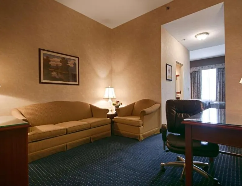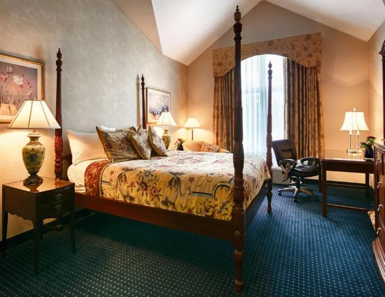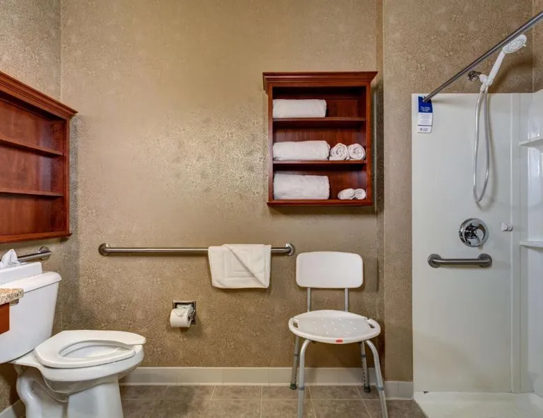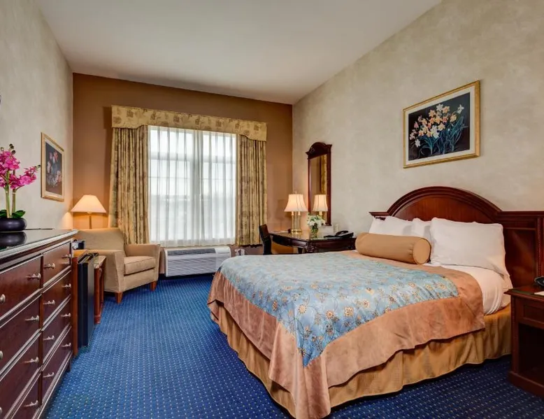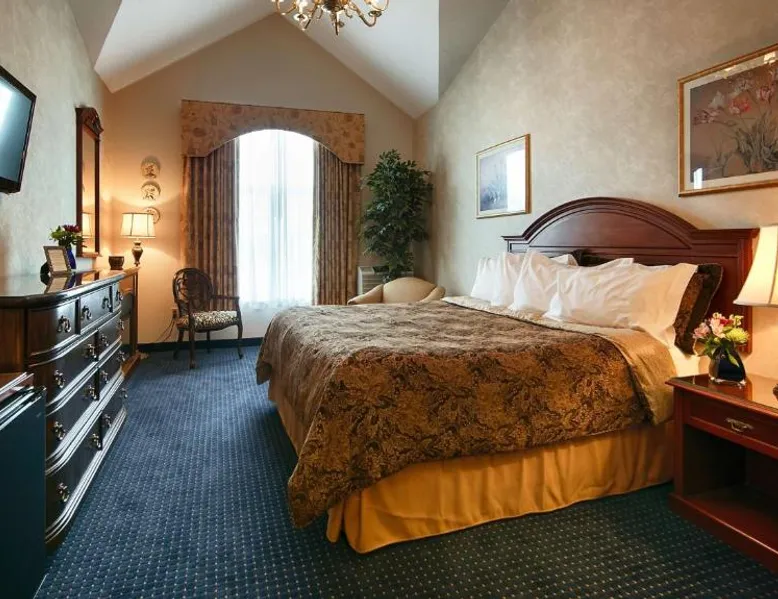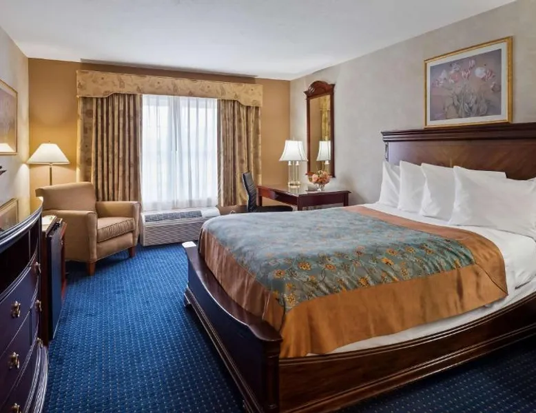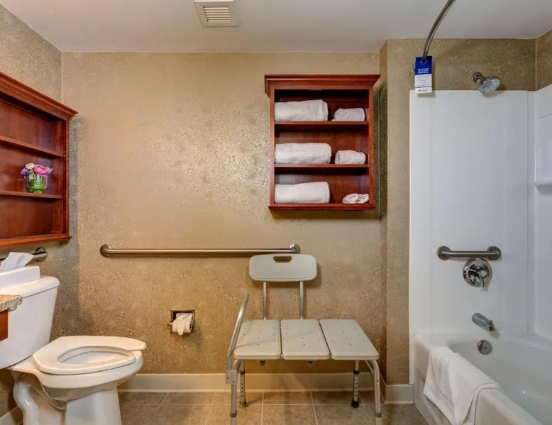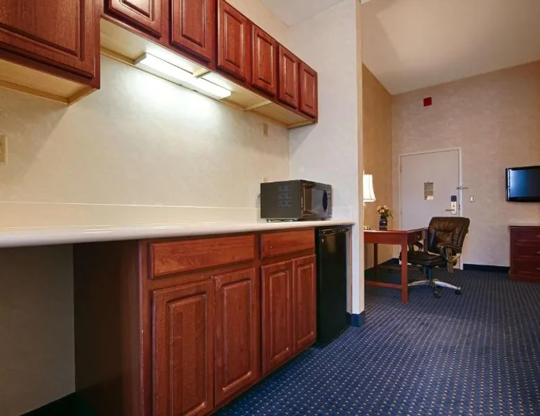 Comfortable Accommodations: Rooms feature air-conditioning, private bathrooms, tea and coffee makers, and free WiFi. Additional amenities include work desks, flat-screen TVs, and free toiletries. Dining and Leisure: The hotel offers a fitness center, seasonal outdoor swimming pool, and a romantic restaurant serving American cuisine. Guests can also enjoy a bar and outdoor seating area. Convenient Location: Located in Mentor, the property is 19 mi from the Cleveland Orchestra and 22 mi from the Cleveland Museum of Natural History. An ice-skating rink is nearby. Guest Satisfaction: Highly rated for its attentive staff, excellent breakfast, and immaculate rooms. This suite includes a microwave, tea/coffee maker, flat-screen TV and refrigerator.