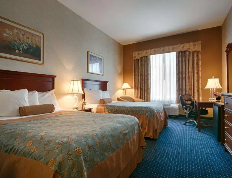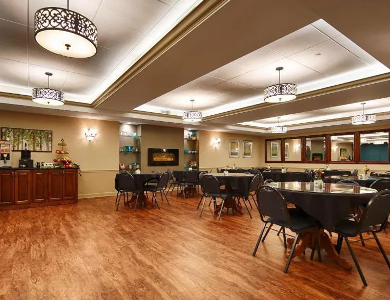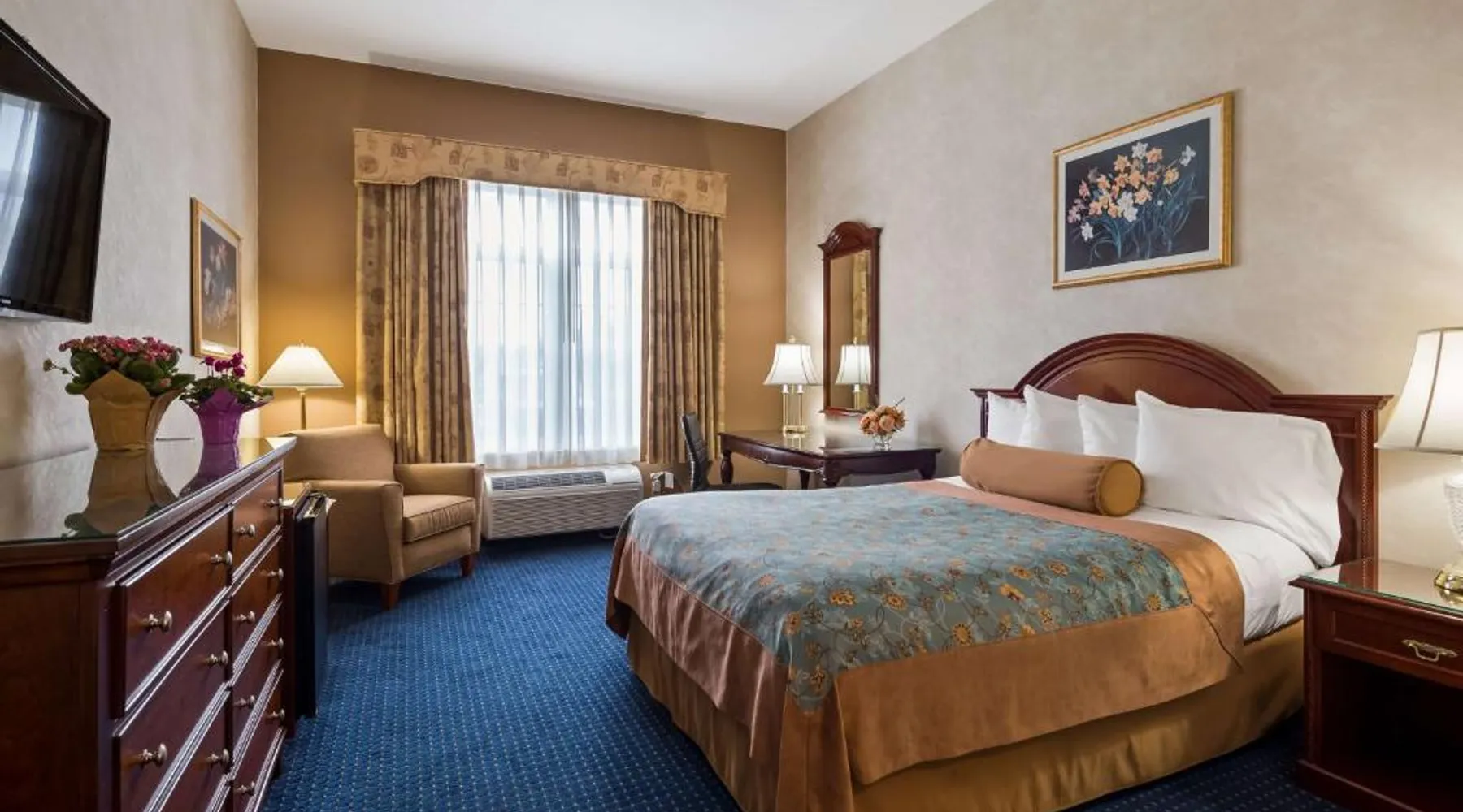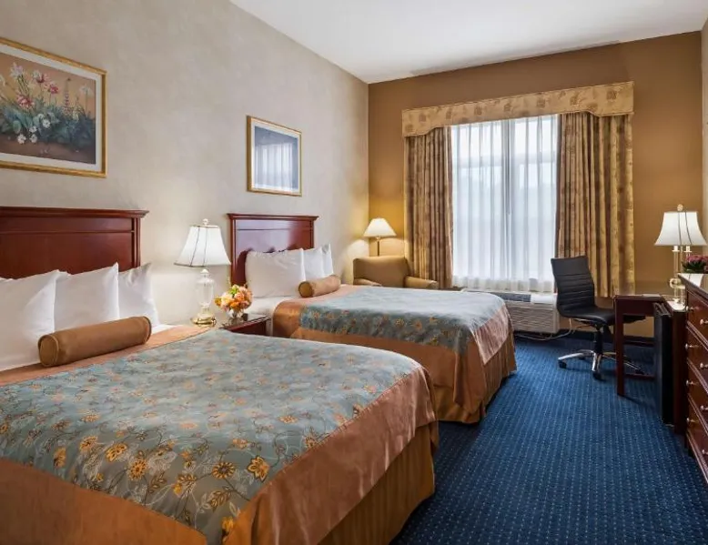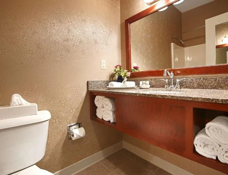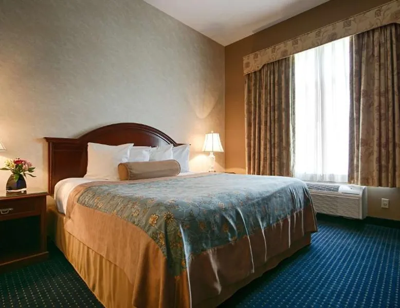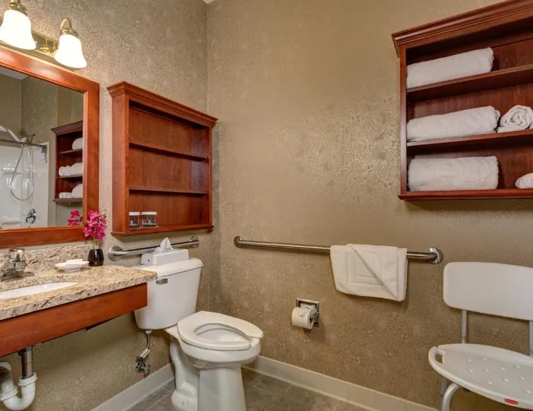 Comfortable Accommodations: Rooms feature air-conditioning, private bathrooms, tea and coffee makers, and free WiFi. Additional amenities include work desks, flat-screen TVs, and free toiletries. Dining and Leisure: The hotel offers a fitness center, seasonal outdoor swimming pool, and a romantic restaurant serving American cuisine. Guests can also enjoy a bar and outdoor seating area. Convenient Location: Located in Mentor, the property is 19 mi from the Cleveland Orchestra and 22 mi from the Cleveland Museum of Natural History. An ice-skating rink is nearby. Guest Satisfaction: Highly rated for its attentive staff, excellent breakfast, and immaculate rooms. This suite includes a microwave, tea/coffee maker, flat-screen TV and refrigerator.