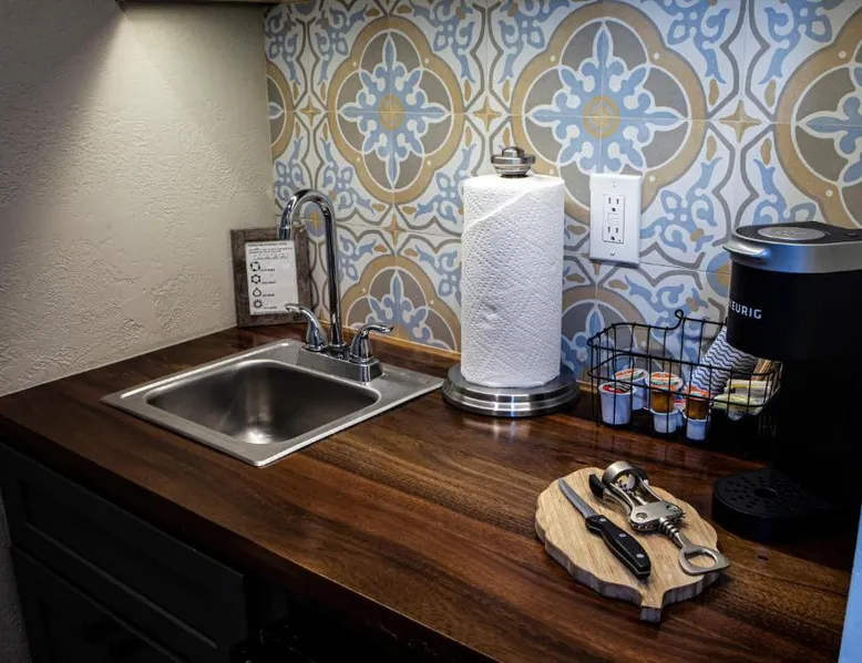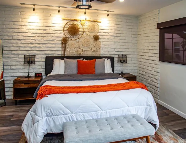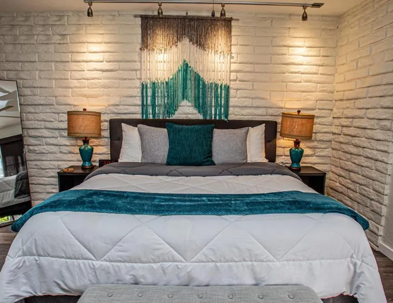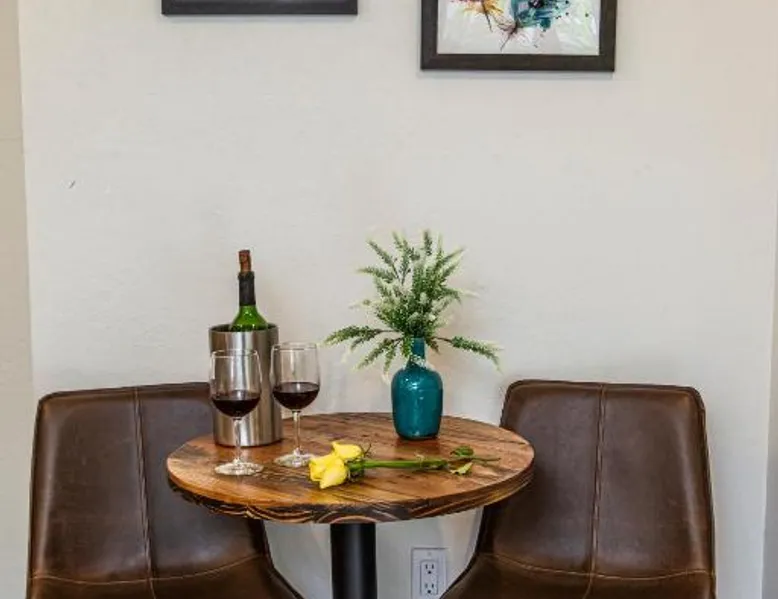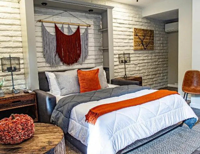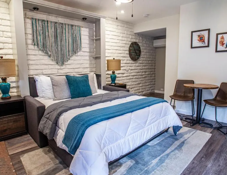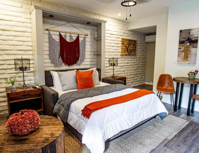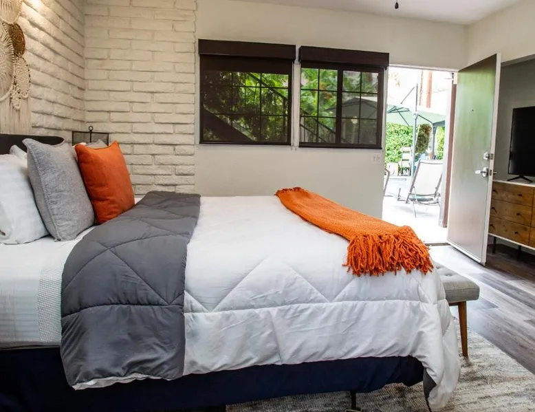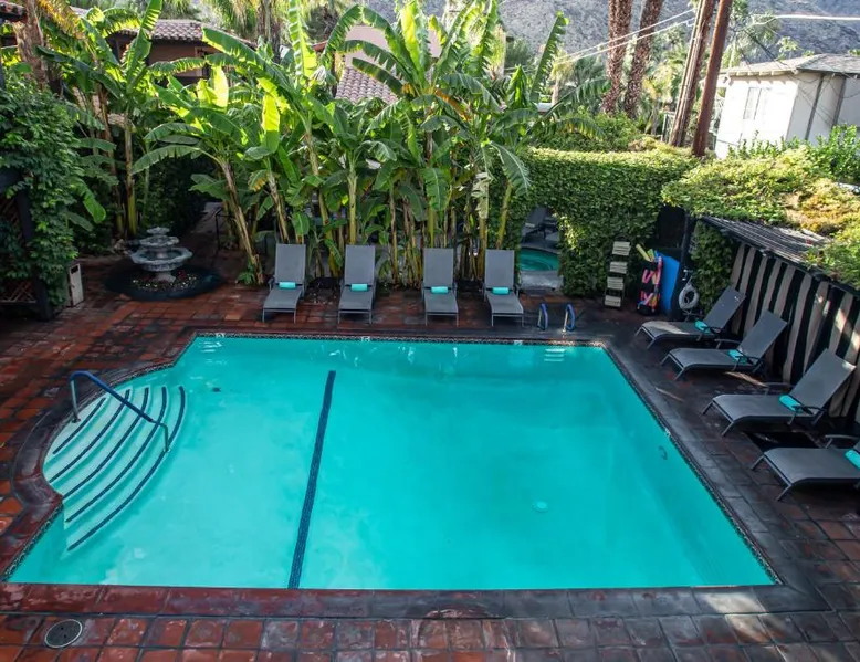 Comfortable Accommodations: Hotel California in Palm Springs offers adults-only rooms with private bathrooms, air-conditioning, and modern amenities. Each room includes a tea and coffee maker, refrigerator, and free toiletries. Outdoor Leisure: Guests can relax by the year-round outdoor swimming pool with a view, terrace, and lush garden. The property features a hot tub, outdoor fireplace, and barbecue facilities, ideal for outdoor activities. Dining Experience: A continental buffet breakfast is served daily, including fresh pastries, fruits, and juices. The on-site restaurant offers a variety of dining options, ensuring a pleasant start to the day. Convenient Location: Located 3.1 mi from Palm Springs International Airport, Hotel California is near attractions such as O'Donnell Golf Course (2.1 mi) and Palm Springs Aerial Tramway (4.3 mi). Free on-site private parking is available. This suite's standout feature is the pool with a view. This suite includes 1 living room, 1 separate bedroom and 1 bathroom with a walk-in shower and free toiletries. In the fully equipped kitchen, guests will find a stovetop, a refrigerator, a dishwasher and kitchenware. This suite has air conditioning, a tea and coffee maker, a flat-screen TV with satellite channels and a patio. The unit has 1 bed.