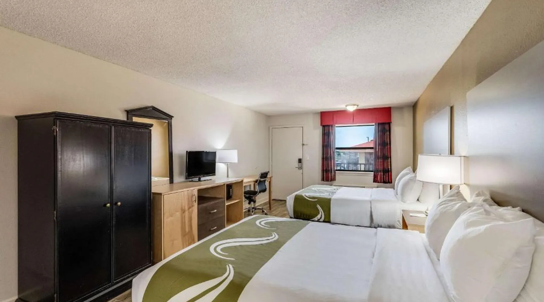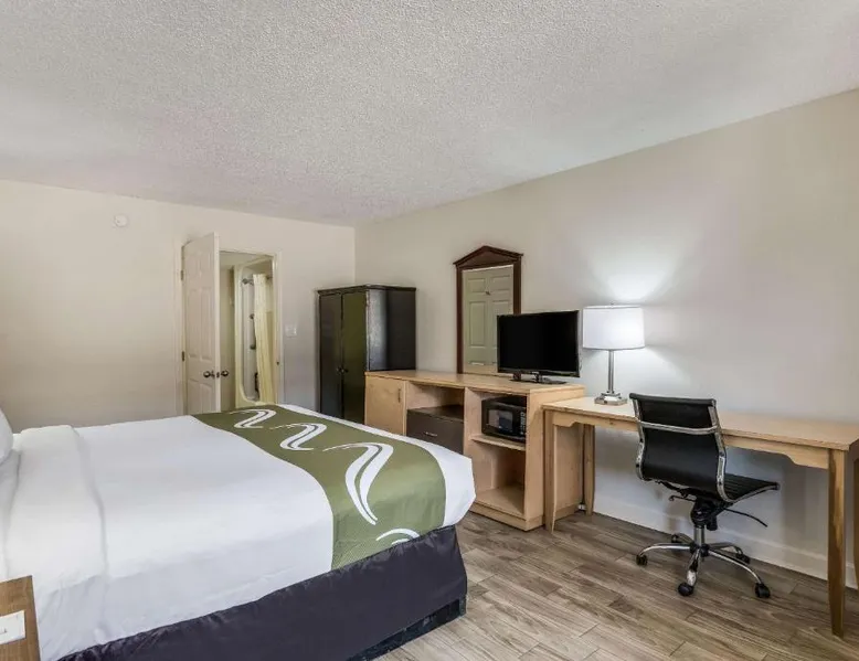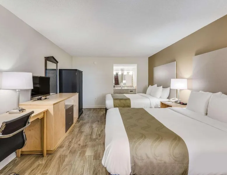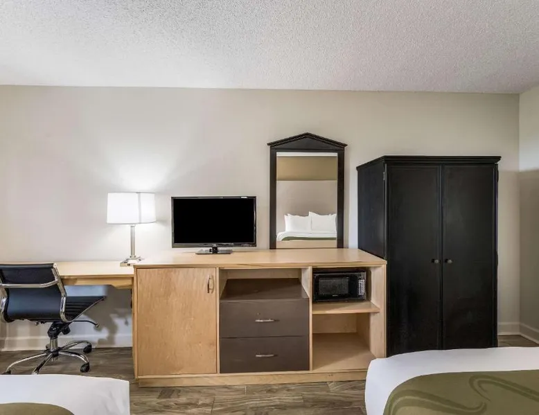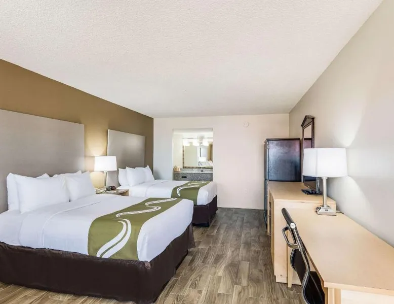 The Quality Inn & Suites hotel is conveniently located just four miles from the Memorial Field Airport. This Hot Springs, AR hotel is minutes from area attractions like Lake Hamilton, Lake Ouachita, Oaklawn thoroughbred horse race track, and the Hot Springs Convention Center. Visitors will enjoy the Bathhouse Row National Historic Landmark District located in Hot Springs National Park. Magic Springs & Crystal Falls amusement and water park is only eight miles away. Several shops are nearby. A variety of restaurants and cocktail lounges are located in the surrounding area. The hotel offer a free continental breakfast, free coffee and free local calls, free high-speed Internet access in all rooms, free wireless high-speed Internet access in the lobby and access to copy and fax services. Some rooms also feature spacious work desks. The hotel's meeting room accommodates up to 70 people. Also have a seasonal outdoor pool. All spacious guest rooms include hair dryers and cable television. Suites come equipped with refrigerators, microwaves and coffee makers. Nonsmoking rooms are also available. A newsstand is located on the property for guest convenience. This is a pet-friendly hotel; a small nightly fee is required. The family room features a TV with cable channels, a tea and coffee maker, a seating area and heating. The unit has 2 beds.
