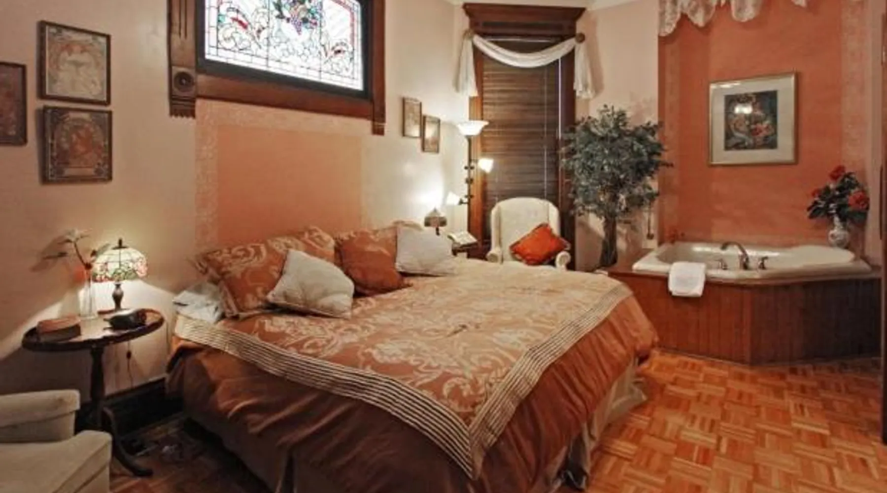 Comfortable Accommodations: Old Northside Bed & Breakfast in Indianapolis offers private bathrooms with air-conditioning, bathrobes, and free WiFi. Each room includes a work desk, TV, and parquet floors. Relaxing Facilities: Guests can enjoy a garden, hot tub, outdoor seating area, and games room. Free on-site private parking is available. Delicious Breakfast: A buffet breakfast is served daily, featuring warm dishes, fresh pastries, pancakes, fruits, and juice. Prime Location: Located 8.7 mi from Indianapolis International Airport, the property is a short walk from Murat - Egyptian Room. Nearby attractions include Lucas Oil Stadium (1.9 mi) and Indianapolis Motor Speedway (5 mi). Guest Satisfaction: Highly rated for its friendly host, excellent breakfast, and attentive staff. This luxury suite has a private fireplace, spa bath, and a seating area.