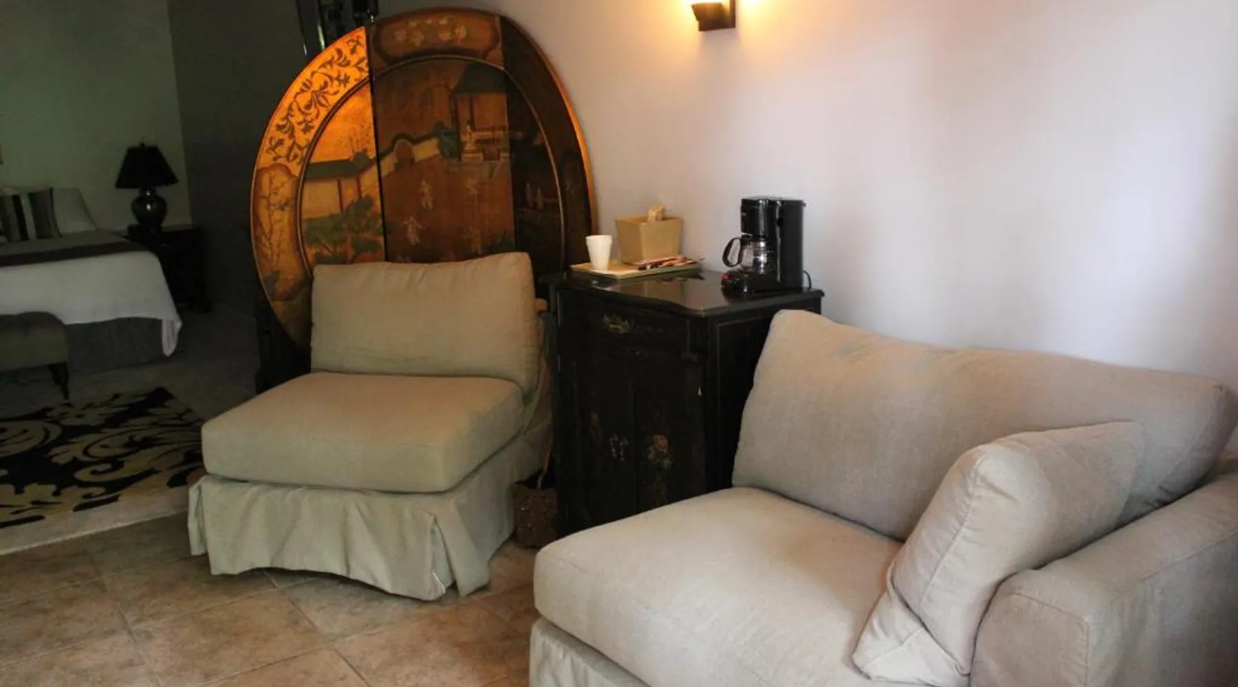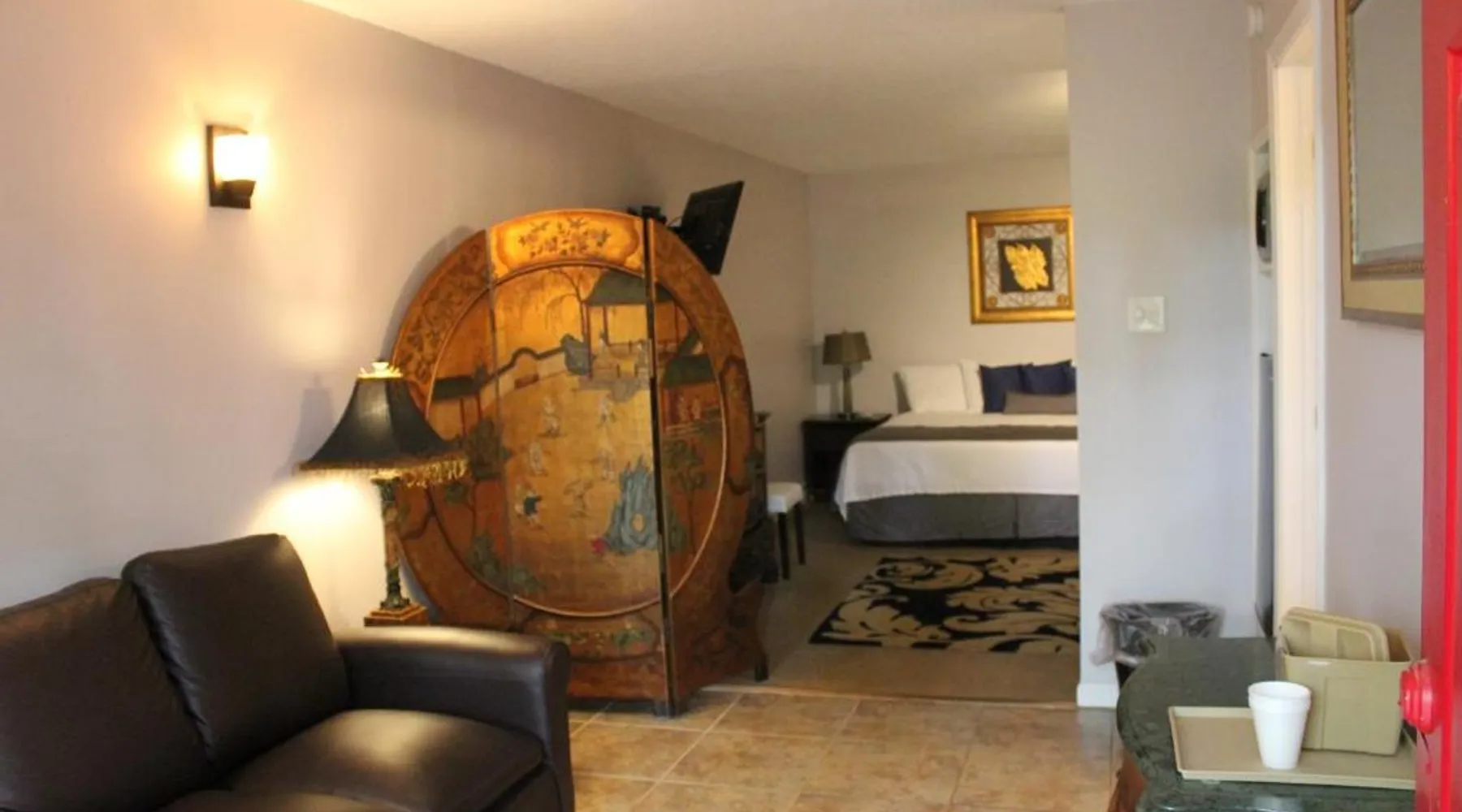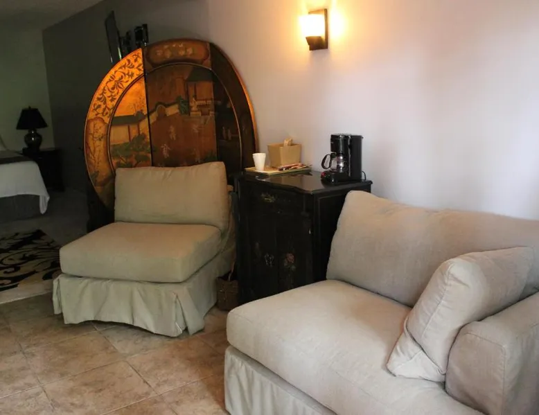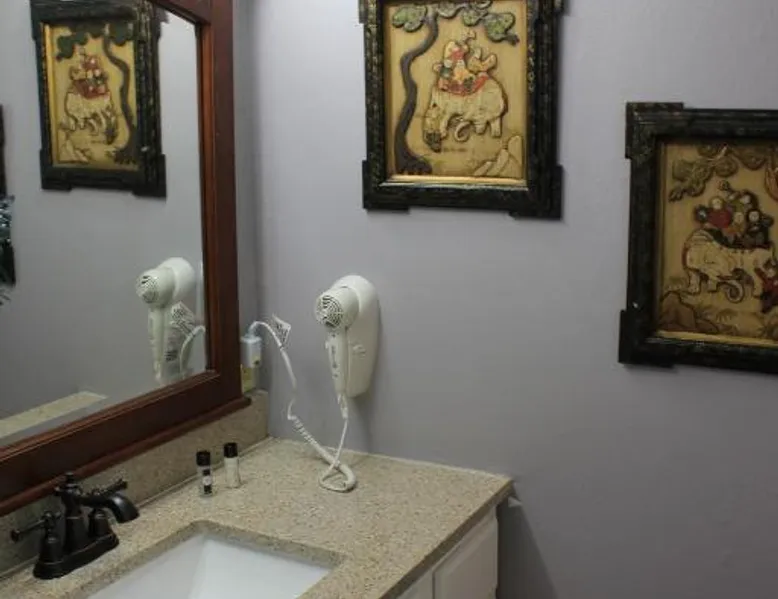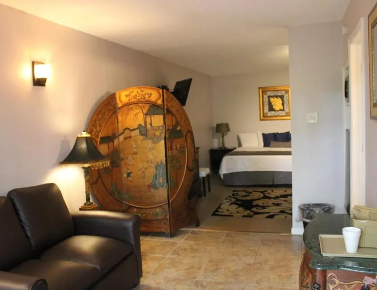 Comfortable Accommodations: Brydan Suites in Eureka Springs offers adults-only rooms with private bathrooms, air-conditioning, and free WiFi. Each room includes a TV, work desk, and soundproofing for a relaxing stay. Outdoor Amenities: Guests can enjoy a sun terrace, garden, and outdoor fireplace. Additional facilities include an outdoor seating area, picnic spots, and barbecue facilities, perfect for outdoor activities. Convenient Services: The motel provides private check-in and check-out, housekeeping, full-day security, and luggage storage. Free on-site private parking is available for guests' convenience. Local Attractions: Located 1.9 mi from Eureka Springs Historic District and 2.5 mi from The Great Passion Play, Brydan Suites offers easy access to local points of interest. Boone County Airport is 39 mi away. This room features a microwave and refrigerator.