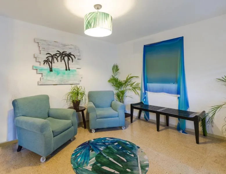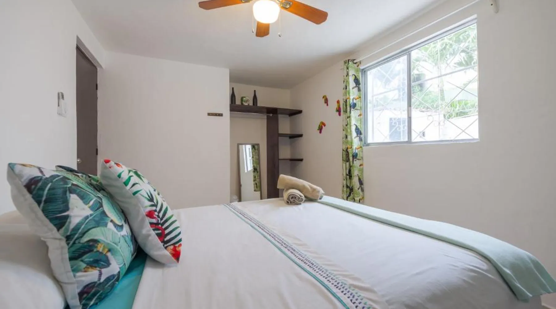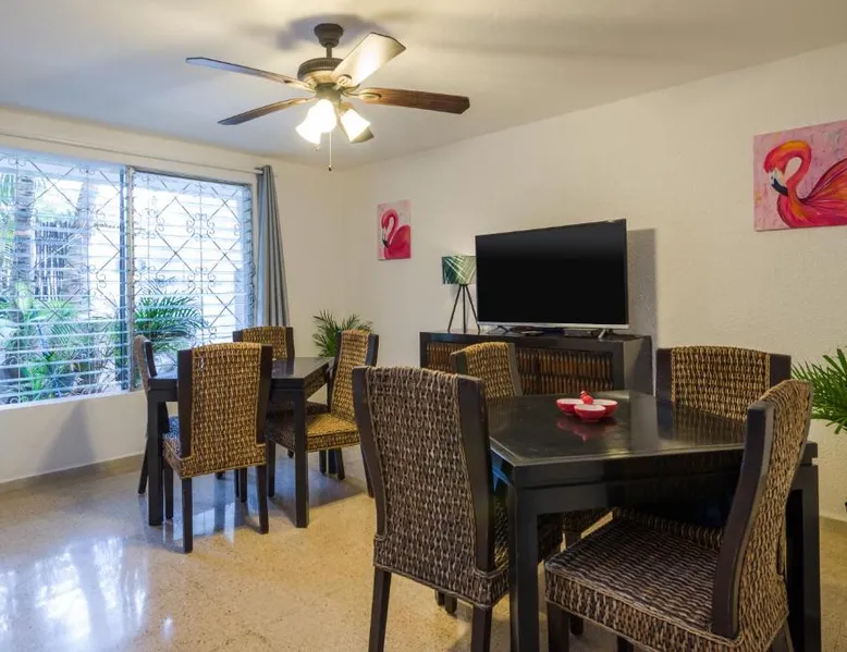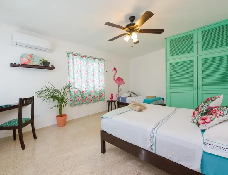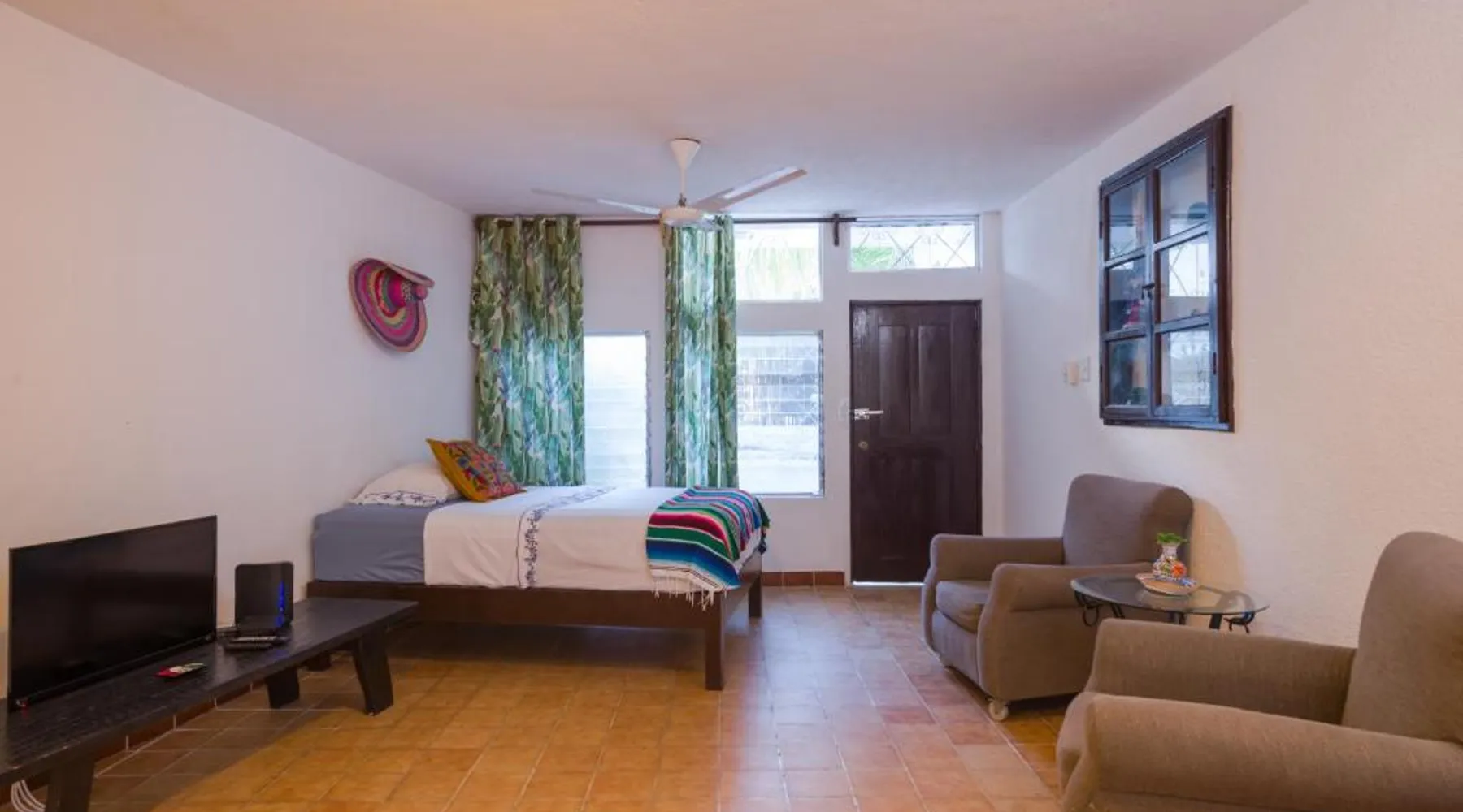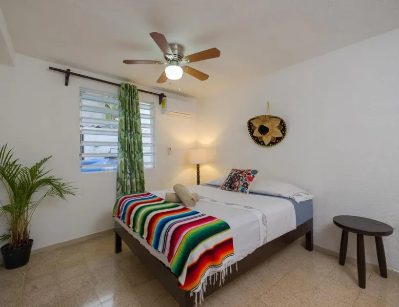 Comfortable Accommodations: Casa Tropical in Cancún offers adults-only rooms with air-conditioning, private bathrooms, and garden views. Each room includes a kitchenette, work desk, and free WiFi. Exceptional Facilities: Guests can relax on the sun terrace or in the garden. The property features a lounge, outdoor seating area, and a shared kitchen. Additional amenities include a balcony, terrace, and free parking. Convenient Location: Located 11 mi from Cancún International Airport, Casa Tropical is near attractions such as Cancun Government Palace (15-minute walk) and Parque las Palapas (less than 0.6 mi). Highly rated for room comfort, convenient location, and cleanliness. Offering free toiletries, this double room includes a shared bathroom with a walk-in shower and a hairdryer. Guests can make meals in the kitchen that is fitted with a stovetop, a refrigerator, kitchenware and an oven. The air-conditioned double room offers a TV with streaming services, a tea and coffee maker, a seating area, a dining area as well as garden views. The unit has 1 bed.
