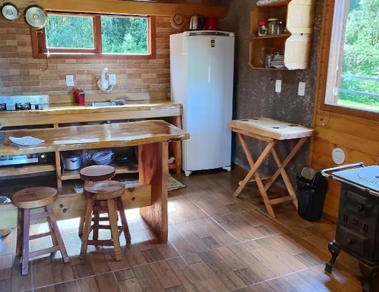Comfortable Accommodations: Pousada Vale da Imbuia chalé para temporada in Urubici offers family rooms with private bathrooms. Each room features a balcony or patio, kitchenette, and modern amenities. Leisure Facilities: Guests can relax in the garden or bar, enjoy free WiFi, and utilize barbecue facilities. The property includes a fireplace, dining area, and outdoor seating. Convenient Location: Located on a quiet street, the holiday home is 78 mi from Planalto Serrano Regional Airport. Nearby attractions include fishing and hiking opportunities. Guest Satisfaction: Highly rated for its location and room comfort, the property is ideal for nature trips. The fireplace is the standout feature of this holiday home. Boasting a private entrance, this holiday home comes with 1 living room, 1 separate bedroom and 1 bathroom with a walk-in shower and a bidet. Guests will find a stovetop, a refrigerator, kitchenware and an oven in the fully equipped kitchen. The holiday home also includes a barbecue. Featuring a balcony with lake views, this holiday home also features a tea and coffee maker and a flat-screen TV with satellite channels. The unit has 1 bed.