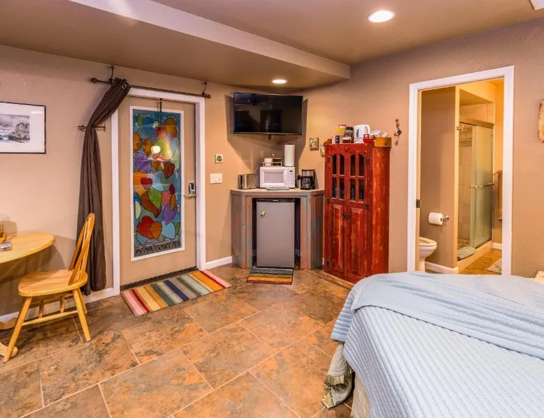 The Cozy Cactus sits on the edge of Sedona’s breathtaking national forest, offering direct access to scenic trails and expansive red rock views. Surrounded by native cactus gardens, open skies, and frequent wildlife sightings, it’s a peaceful space to reflect, reconnect, and create. The property is available for individual nightly stays or full buyouts. The Cozy Cactus is a family-owned and operated inn nestled along the edge of Sedona’s stunning national forest land. Surrounded by cactus gardens, open skies, and miles of scenic trails, our little hideaway is a place to pause, breathe, and feel at home in the high desert. Whether you're here for rest, adventure, or a bit of both, we’re honored to share this special corner of Sedona with you—one sunrise, one story, and one warm welcome at a time. Each room offers a private entrance, a private bathroom and a fully-stocked kitchenette.