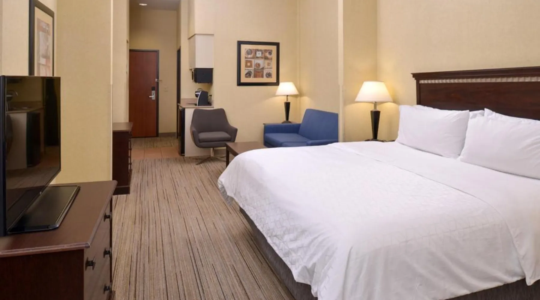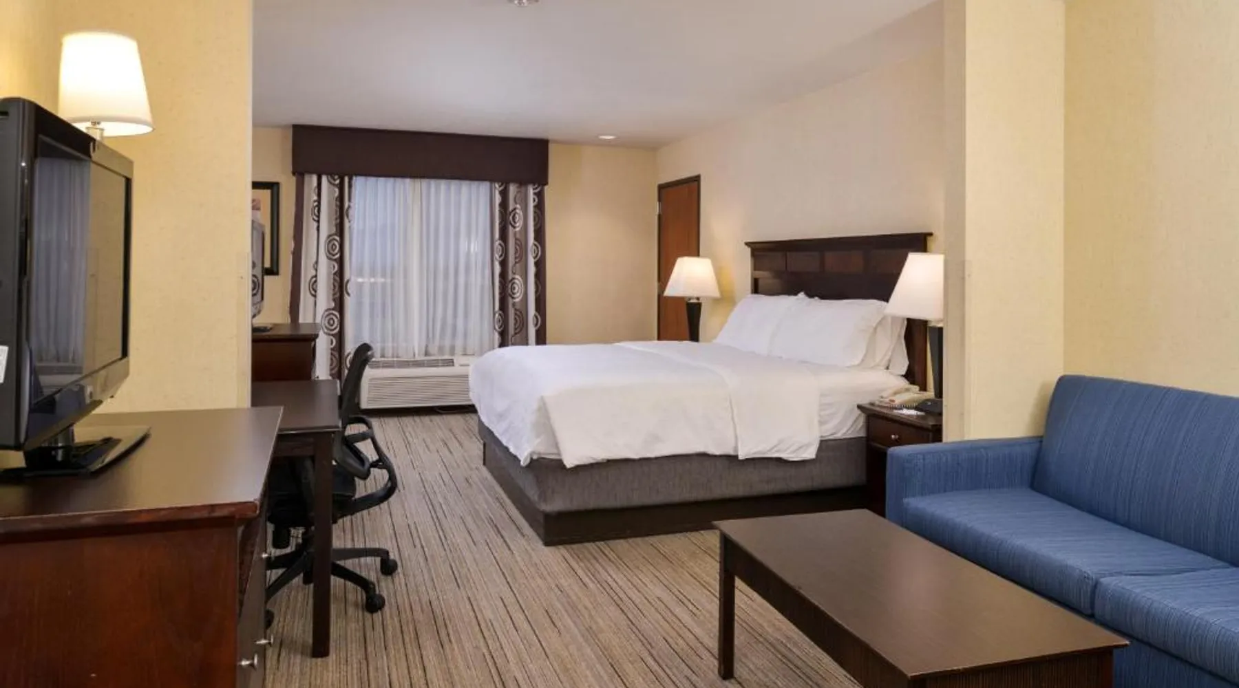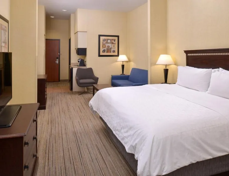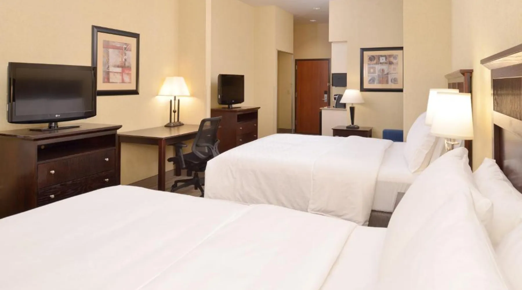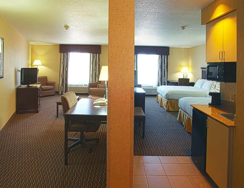 Comfortable Accommodations: Holiday Inn Express & Suites Nampa - Idaho Center by IHG in Nampa offers family rooms with air-conditioning, private bathrooms, and free WiFi. Each room includes a work desk, TV, and seating area. Leisure Facilities: Guests can enjoy a fitness center, indoor swimming pool, and hot tub. Additional amenities include a elevator, business area, and free on-site private parking. Dining Options: A continental buffet breakfast is served daily, featuring juice, fresh pastries, pancakes, and fruits. Location and Attractions: Located 15 mi from Boise Airport, the hotel is near attractions such as Ford Idaho Center Arena (1.5 mi) and Roaring Springs Water Park (6.8 mi). Highly rated for room cleanliness, staff, and breakfast. Bed type preference cannot be guaranteed as it will be allocated upon arrival based on availability.