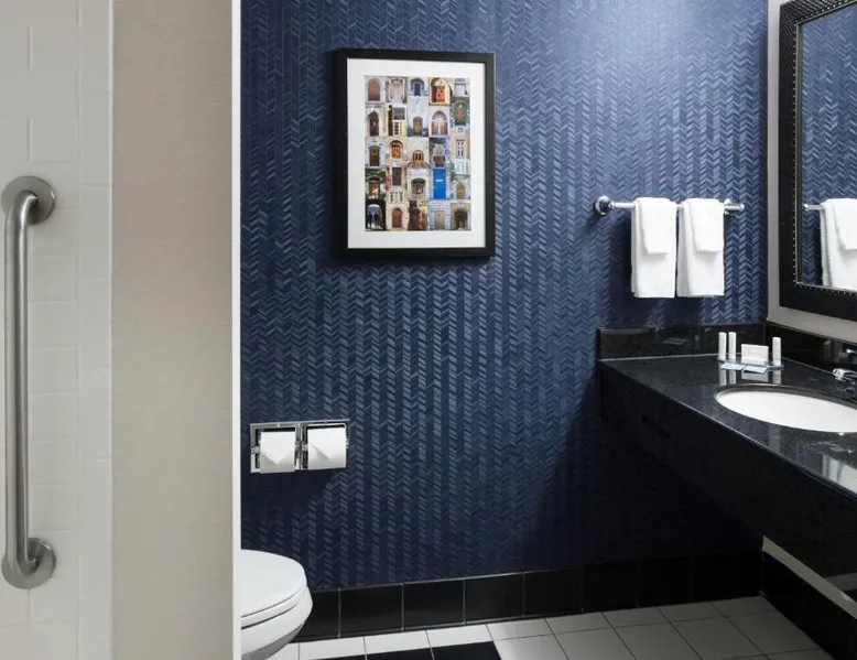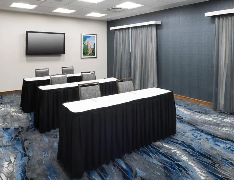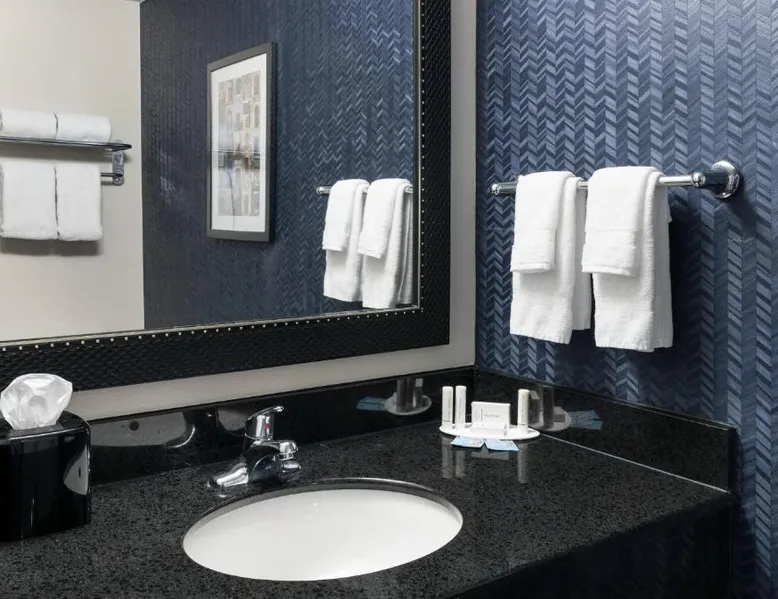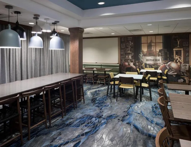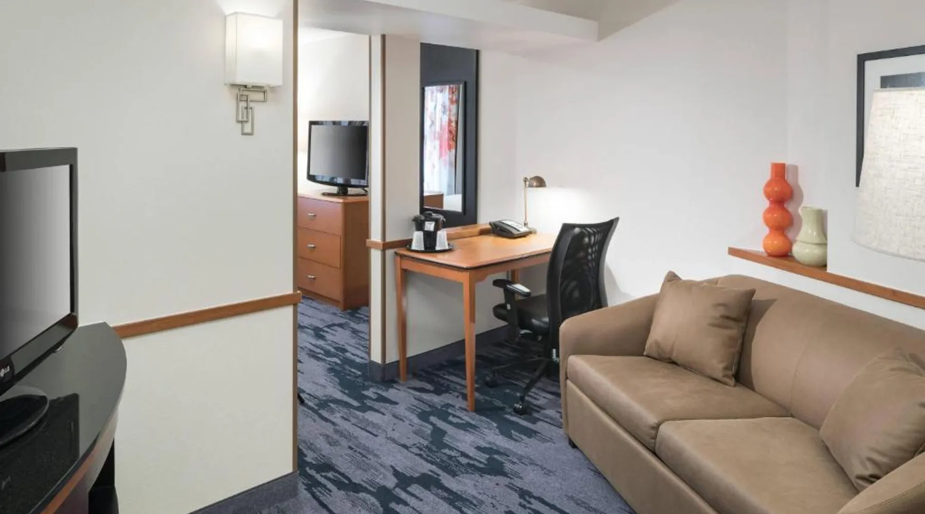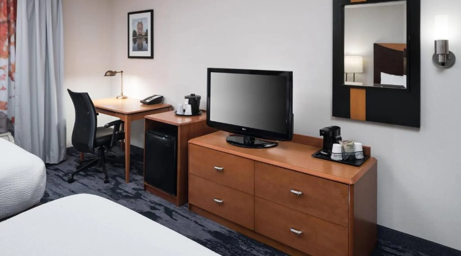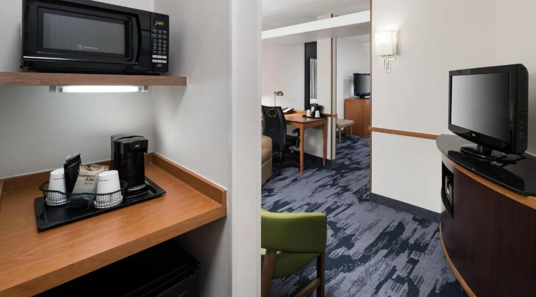 Comfortable Accommodations: Fairfield Inn & Suites South Bend at Noter Dame in South Bend offers air-conditioned rooms with private bathrooms, tea and coffee makers, hairdryers, work desks, seating areas, bath or showers, and TVs. Facilities and Services: Guests can enjoy a fitness center and indoor swimming pool, a elevator, and a 24-hour front desk. Paid on-site parking is available. Dining Options: A continental and American breakfast is served daily. Location and Attractions: Located 4.3 mi from South Bend Regional Airport, the hotel is an 8-minute walk from Noter Dame Stadium, 0.9 mi from the University of Noter Dame, and near other attractions. Guests appreciate the convenient location for city trips. This air-conditioned studio includes a flat-screen TV with cable channels and a private bathroom. The unit offers 1 bed.