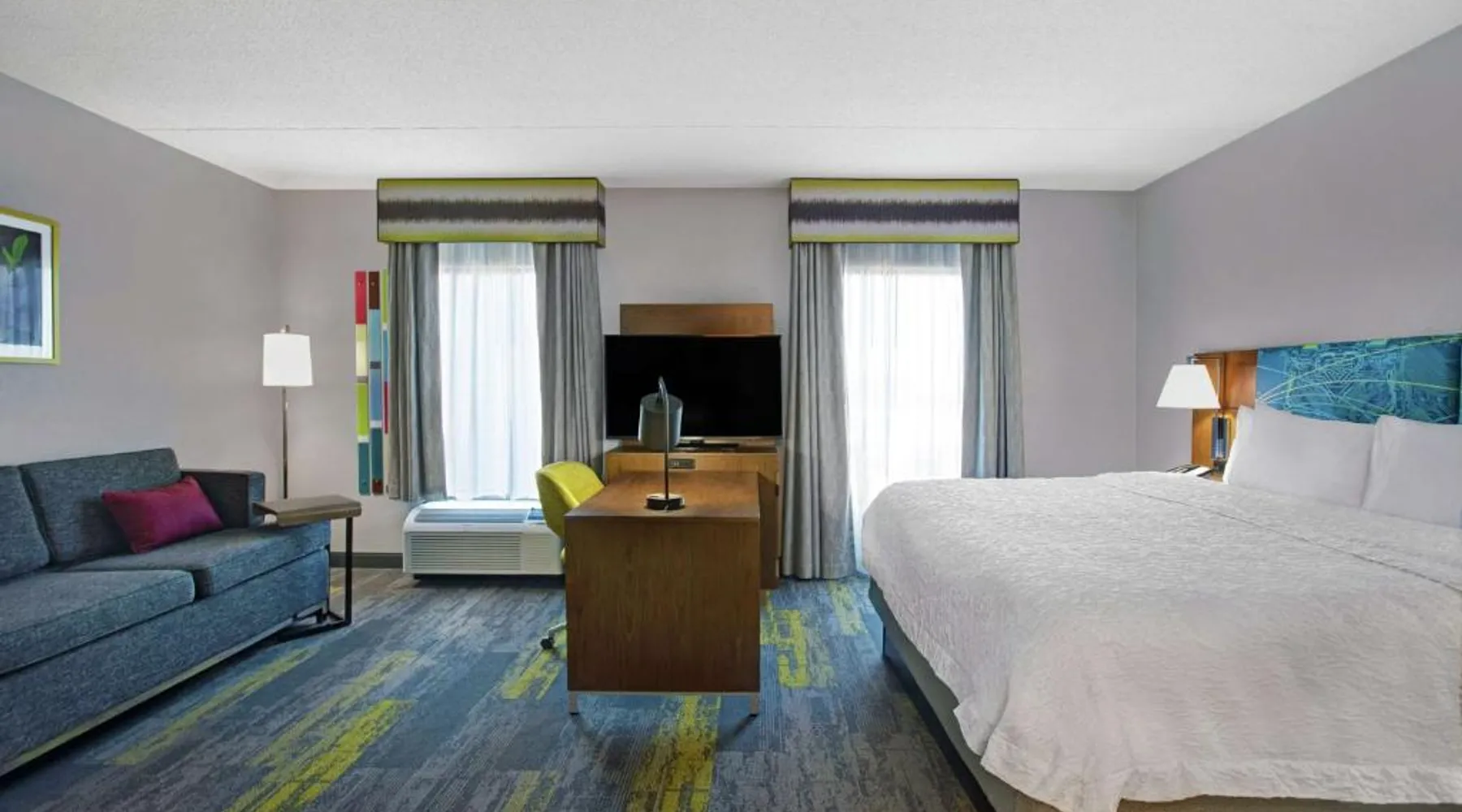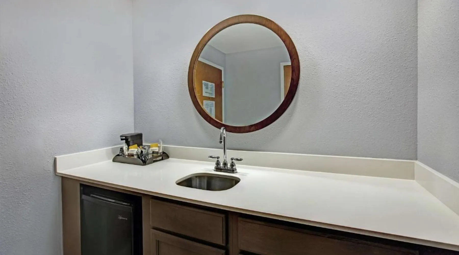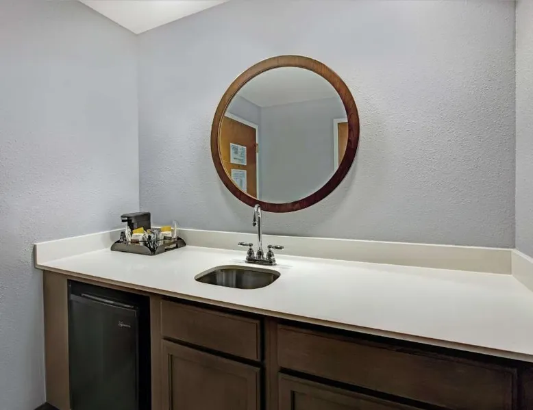 Comfortable Accommodations: Ham Inn & Suites Augusta West in Augusta offers family rooms with free WiFi, air-conditioning, and modern amenities including a tea and coffee maker, hairdryer, refrigerator, microwave, shower, and TV. Leisure Facilities: Guests can enjoy a free indoor swimming pool, fitness room, and 24-hour front desk. Free on-site parking is available, and a restaurant is located in the surrounding area. Convenient Location: Located 14 mi from Augusta Regional Airport, the hotel is close to attractions such as Funsville Fun Park (1.1 mi), Augusta National Golf Club (9.3 mi), and Augusta Mall (3.7 mi). Guest Services: The property provides a complimentary breakfast, excellent staff support, and room cleanliness, ensuring a pleasant stay for all visitors. Studio features a microwave, a small refrigerator and a seating area.