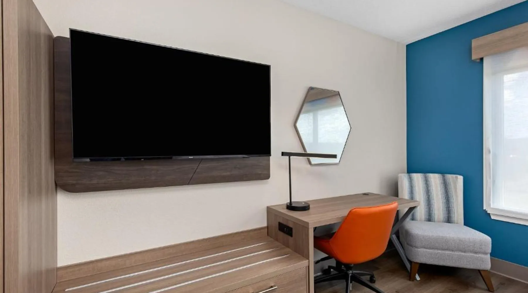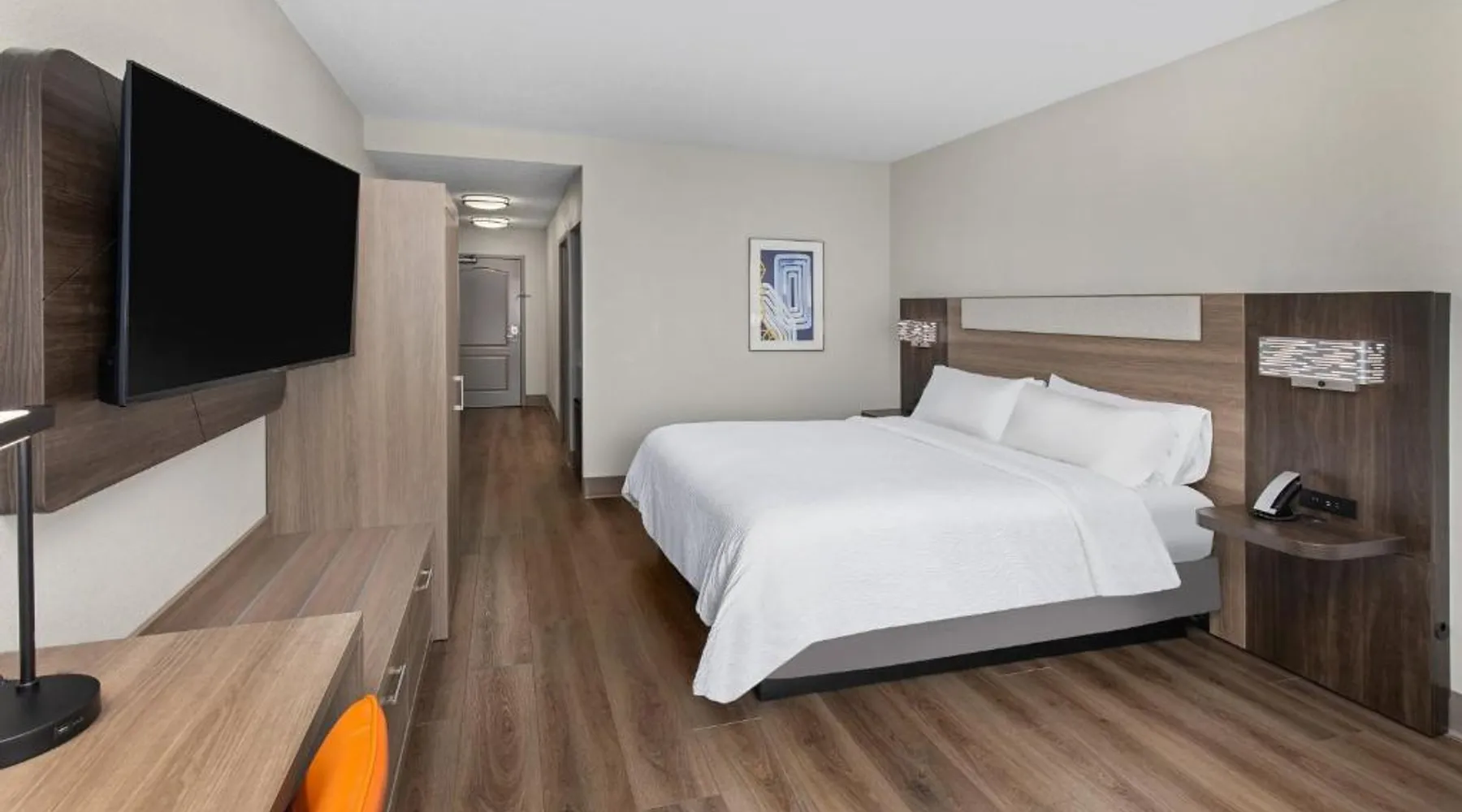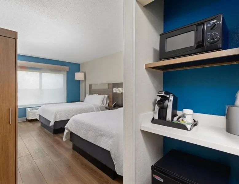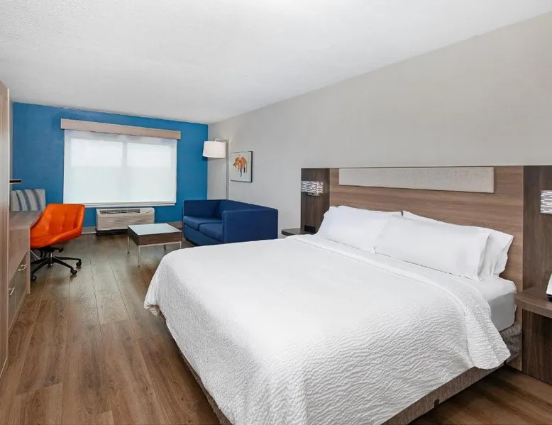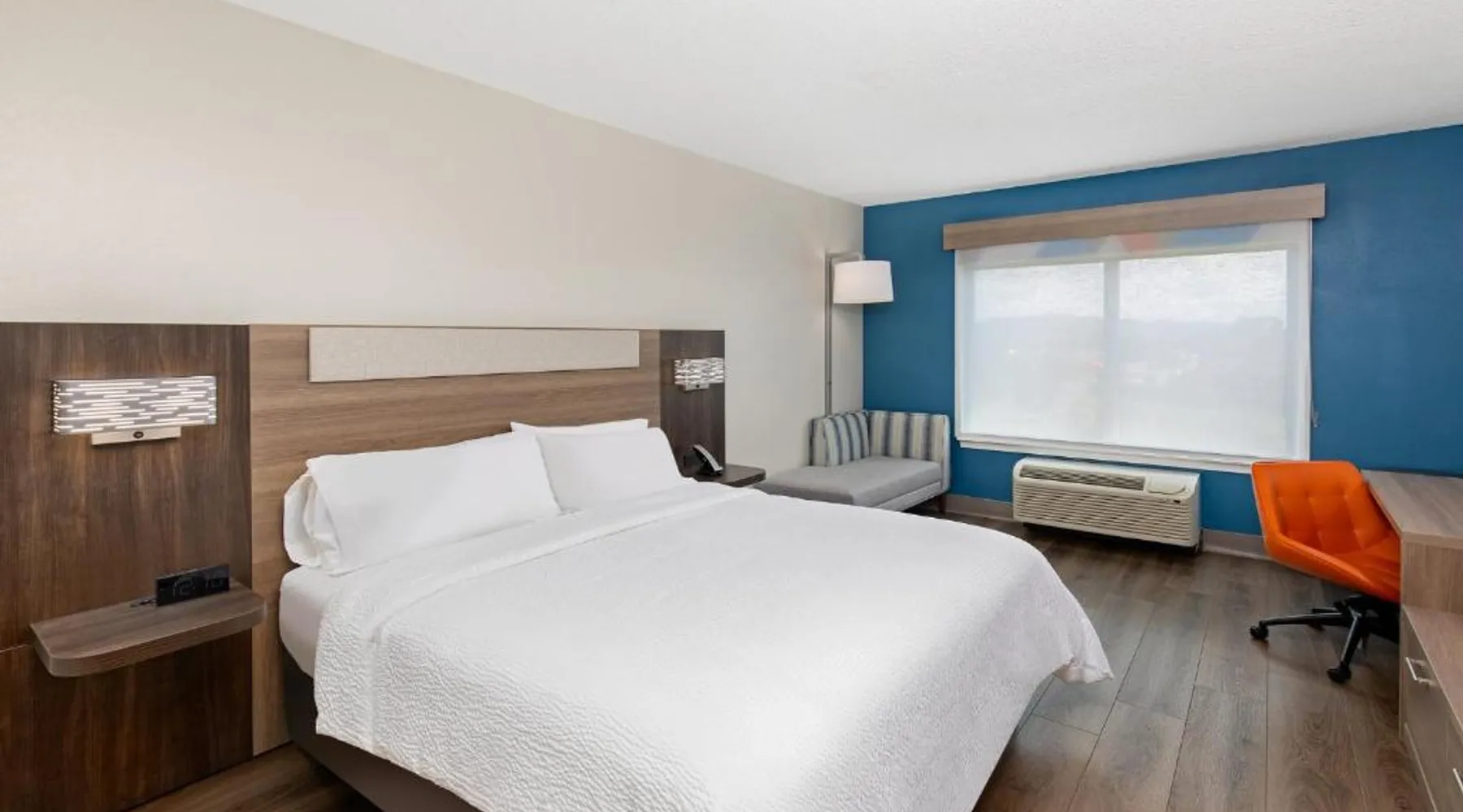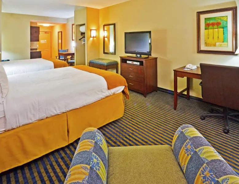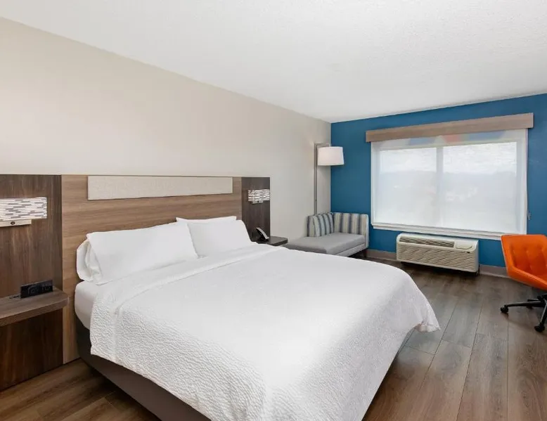 Comfortable Accommodations: Holiday Inn Express Hotel & Suites Ooltewah Springs in Chattanooga offers air-conditioned rooms with private bathrooms, tea and coffee makers, and free WiFi. Each room includes a work desk, refrigerator, and TV. Leisure Facilities: Guests can enjoy an indoor swimming pool, hot tub, fitness room, and outdoor seating area. Additional amenities include a lounge, picnic area, and child-friendly buffet. Convenient Location: Located 9.9 mi from Chattanooga Metropolitan Airport, the hotel is near attractions such as Tennessee Aquarium (17 mi) and Lookout Mountain (21 mi). Free on-site parking is available. Guest Satisfaction: Highly rated for its attentive staff, excellent breakfast, and immaculate rooms. This room features a 37-inch flat-screen TV, a microwave, and a refrigerator.