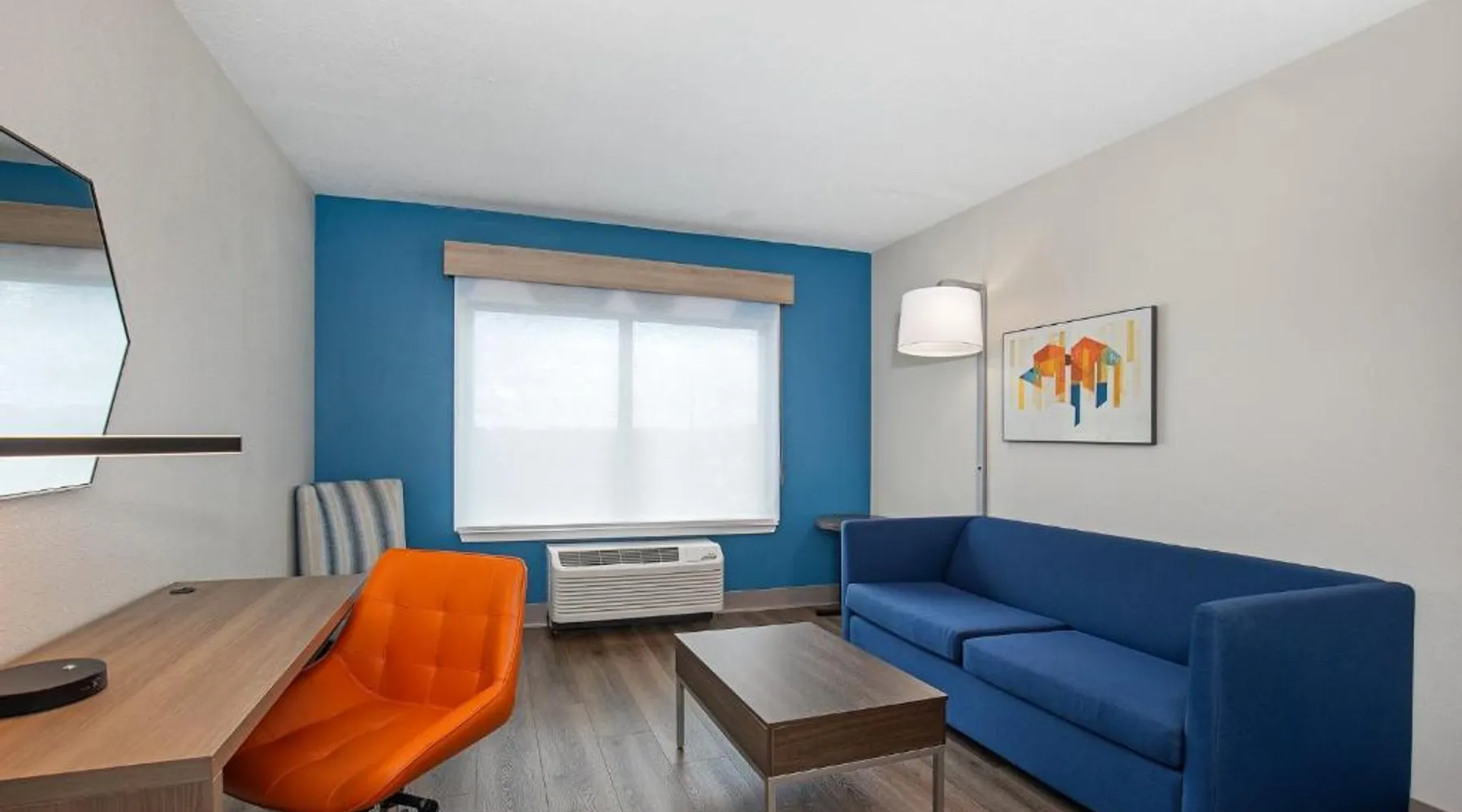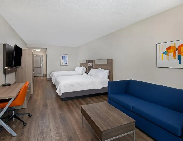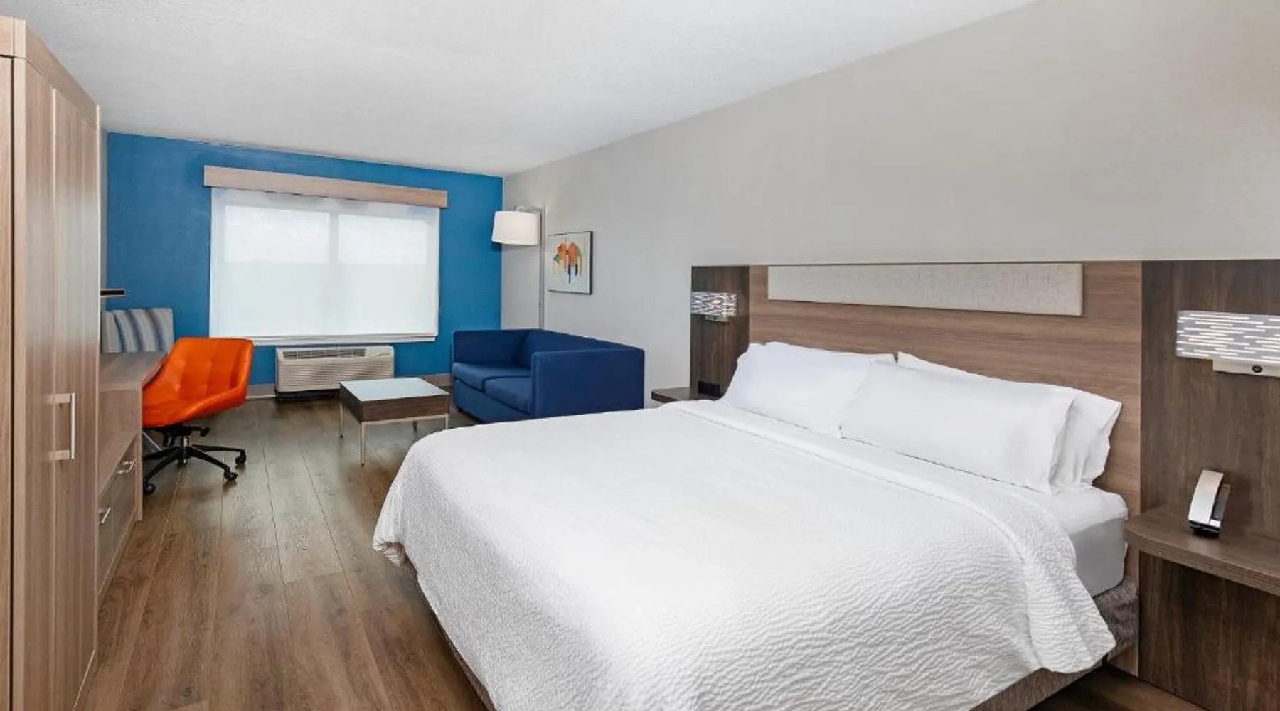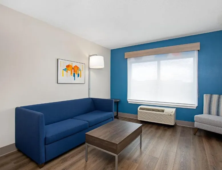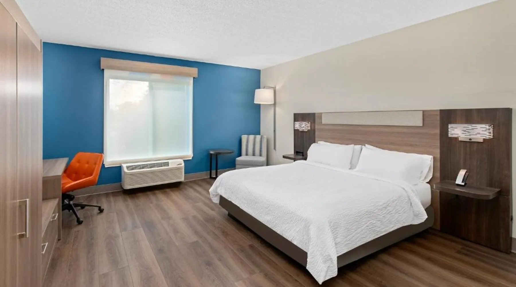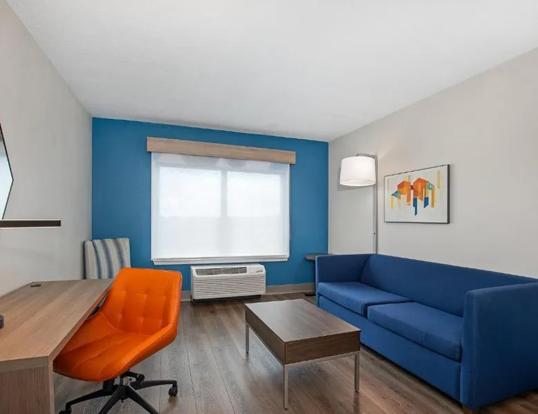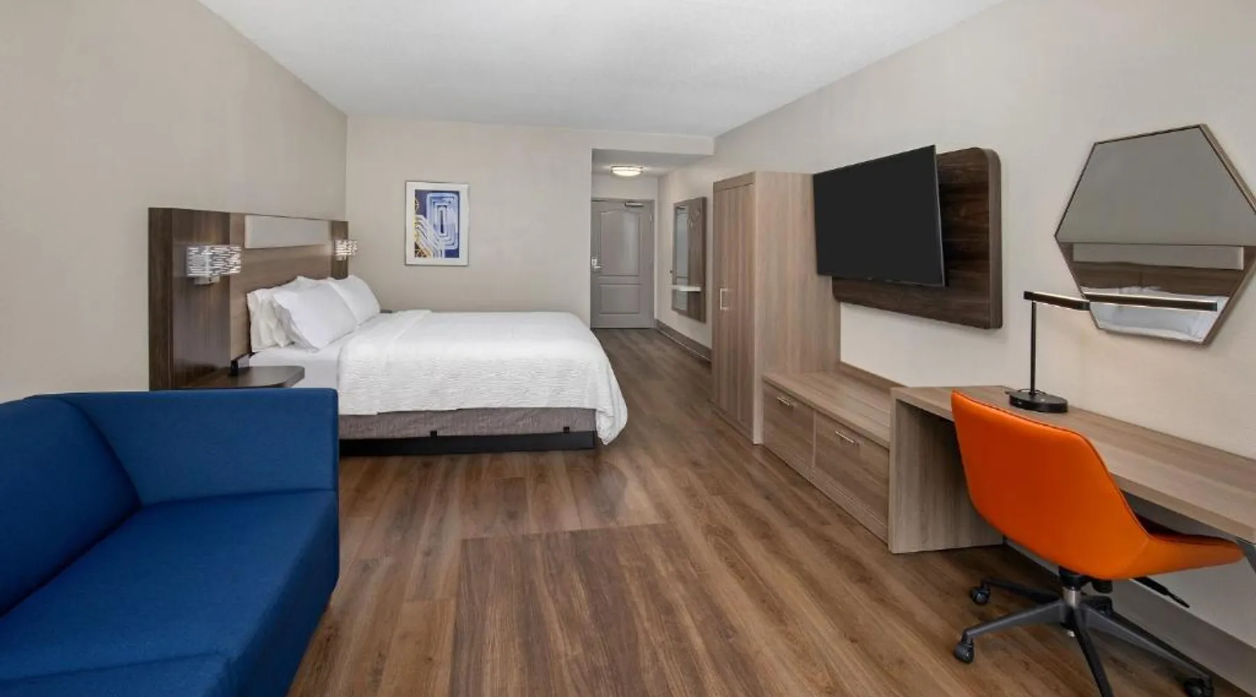 Comfortable Accommodations: Holiday Inn Express Hotel & Suites Ooltewah Springs in Chattanooga offers air-conditioned rooms with private bathrooms, tea and coffee makers, and free WiFi. Each room includes a work desk, refrigerator, and TV. Leisure Facilities: Guests can enjoy an indoor swimming pool, hot tub, fitness room, and outdoor seating area. Additional amenities include a lounge, picnic area, and child-friendly buffet. Convenient Location: Located 9.9 mi from Chattanooga Metropolitan Airport, the hotel is near attractions such as Tennessee Aquarium (17 mi) and Lookout Mountain (21 mi). Free on-site parking is available. Guest Satisfaction: Highly rated for its attentive staff, excellent breakfast, and immaculate rooms. This room features a 37-inch flat-screen TV, a microwave, and a refrigerator.
