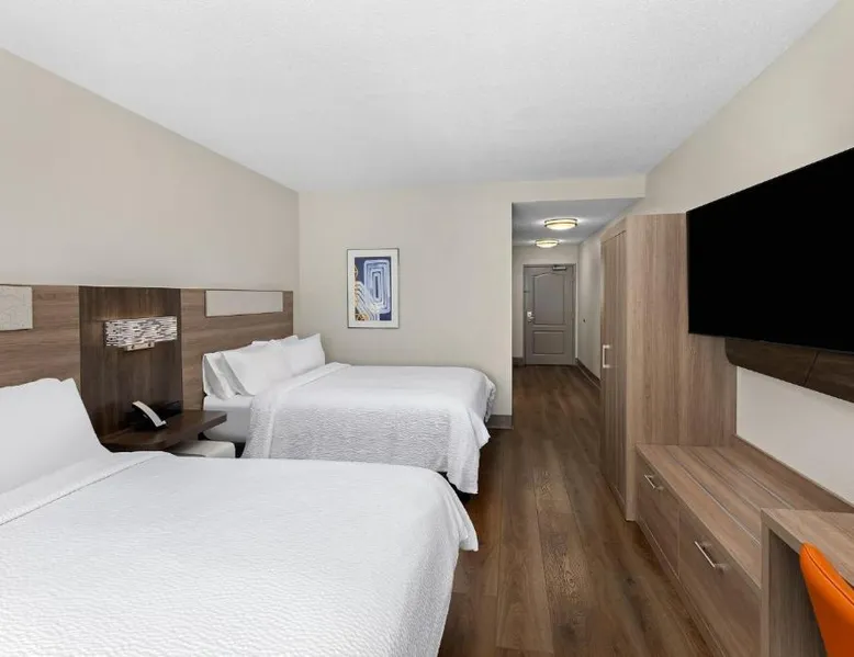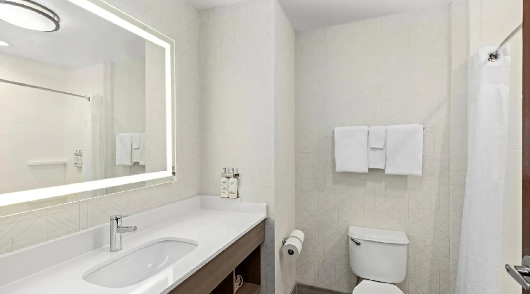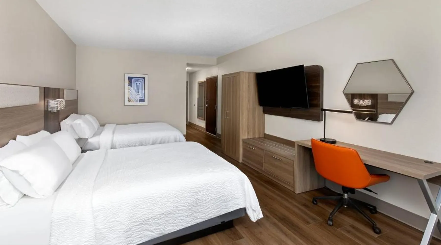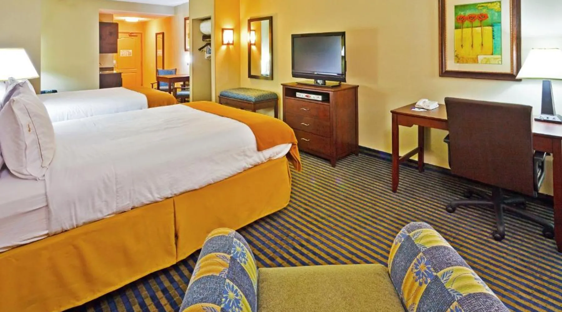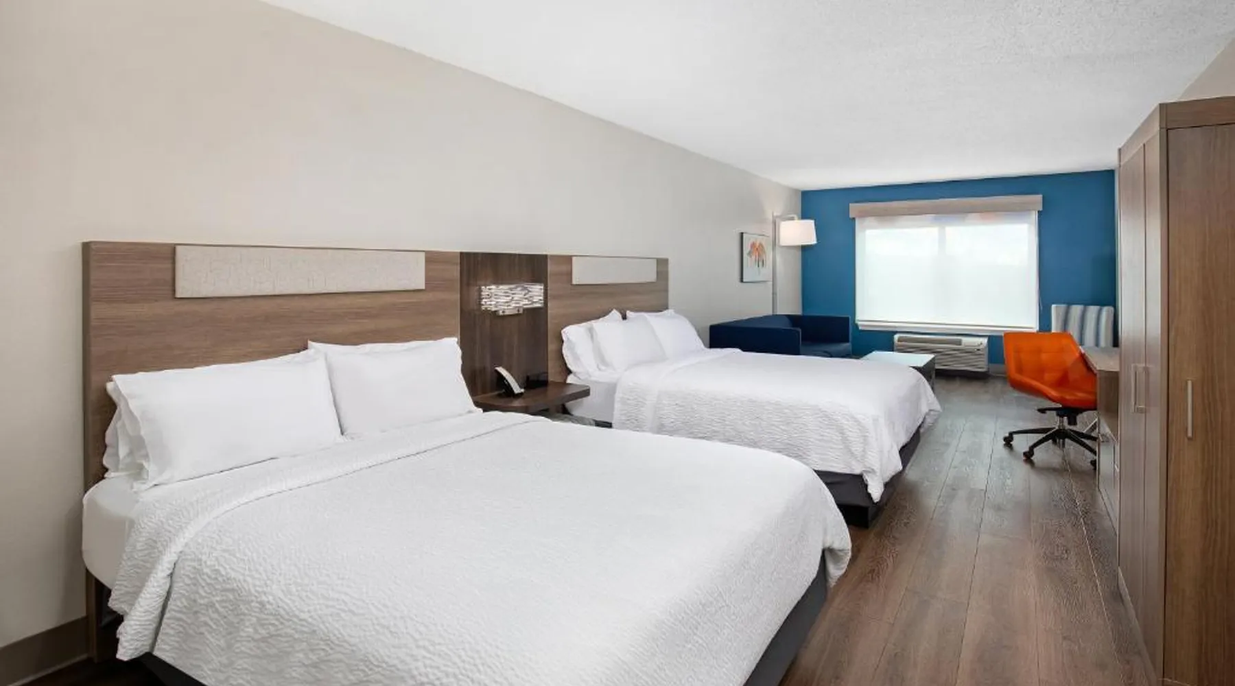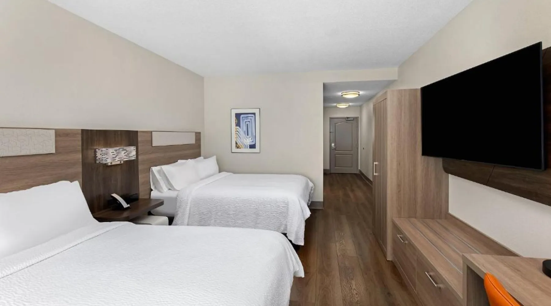 Comfortable Accommodations: Holiday Inn Express Hotel & Suites Ooltewah Springs in Chattanooga offers air-conditioned rooms with private bathrooms, tea and coffee makers, and free WiFi. Each room includes a work desk, refrigerator, and TV. Leisure Facilities: Guests can enjoy an indoor swimming pool, hot tub, fitness room, and outdoor seating area. Additional amenities include a lounge, picnic area, and child-friendly buffet. Convenient Location: Located 9.9 mi from Chattanooga Metropolitan Airport, the hotel is near attractions such as Tennessee Aquarium (17 mi) and Lookout Mountain (21 mi). Free on-site parking is available. Guest Satisfaction: Highly rated for its attentive staff, excellent breakfast, and immaculate rooms. This room features a 37-inch flat-screen TV, a microwave, and a refrigerator.