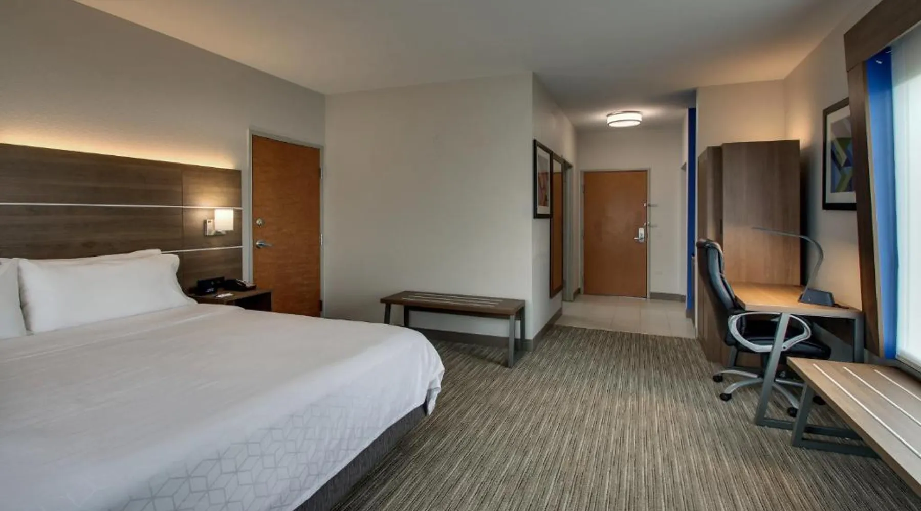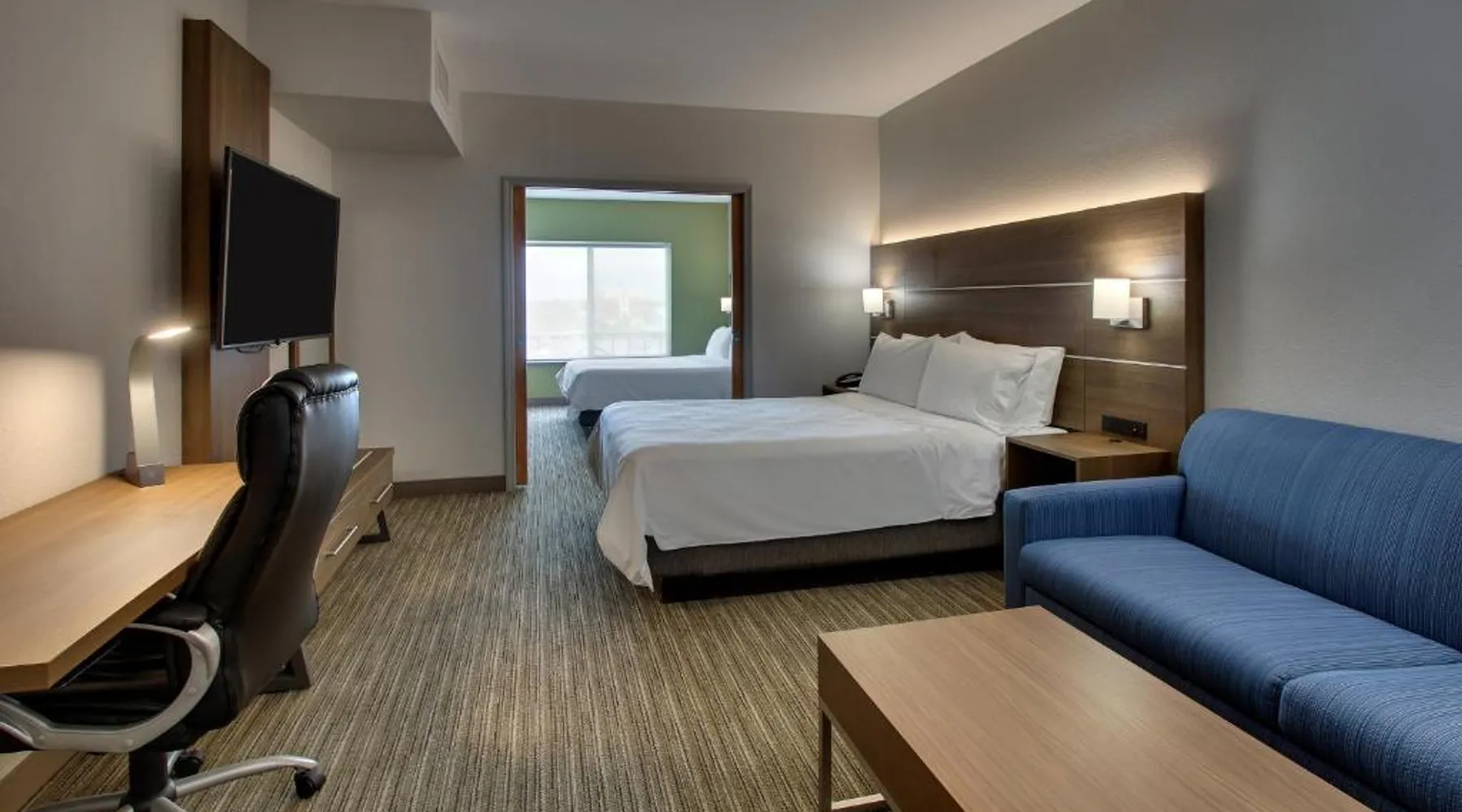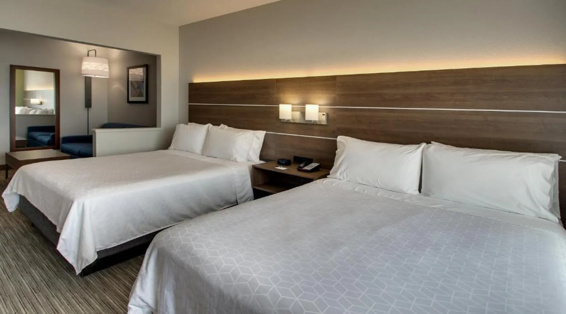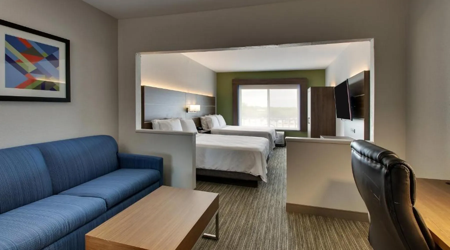 Just 4 miles from Six Flags Great America, this Waukegan hotel features an indoor pool on site. Each guest room is equipped with a 55-inch flat-screen TV. Free Wi-Fi is offered in every room at Holiday Inn Express Hotel & Suites Waukegan/Gurnee. An in-room microwave, fridge, and tea and coffee-making facilities are standard at this hotel. A hot breakfast is served at Waukegan/Gurnee Holiday Inn Express Hotel & Suites each morning. A 24-hour fitness center and business center are also provided. The Naval Training Center is 5 miles away. Gurnee Mills Mall is less than 7 miles from this hotel. Featuring a 55-inch flat-screen TV, this room also offers a microwave, fridge, and tea and coffee-making facilities. Bed type preference cannot be guaranteed as it will be allocated upon arrival based on availability.