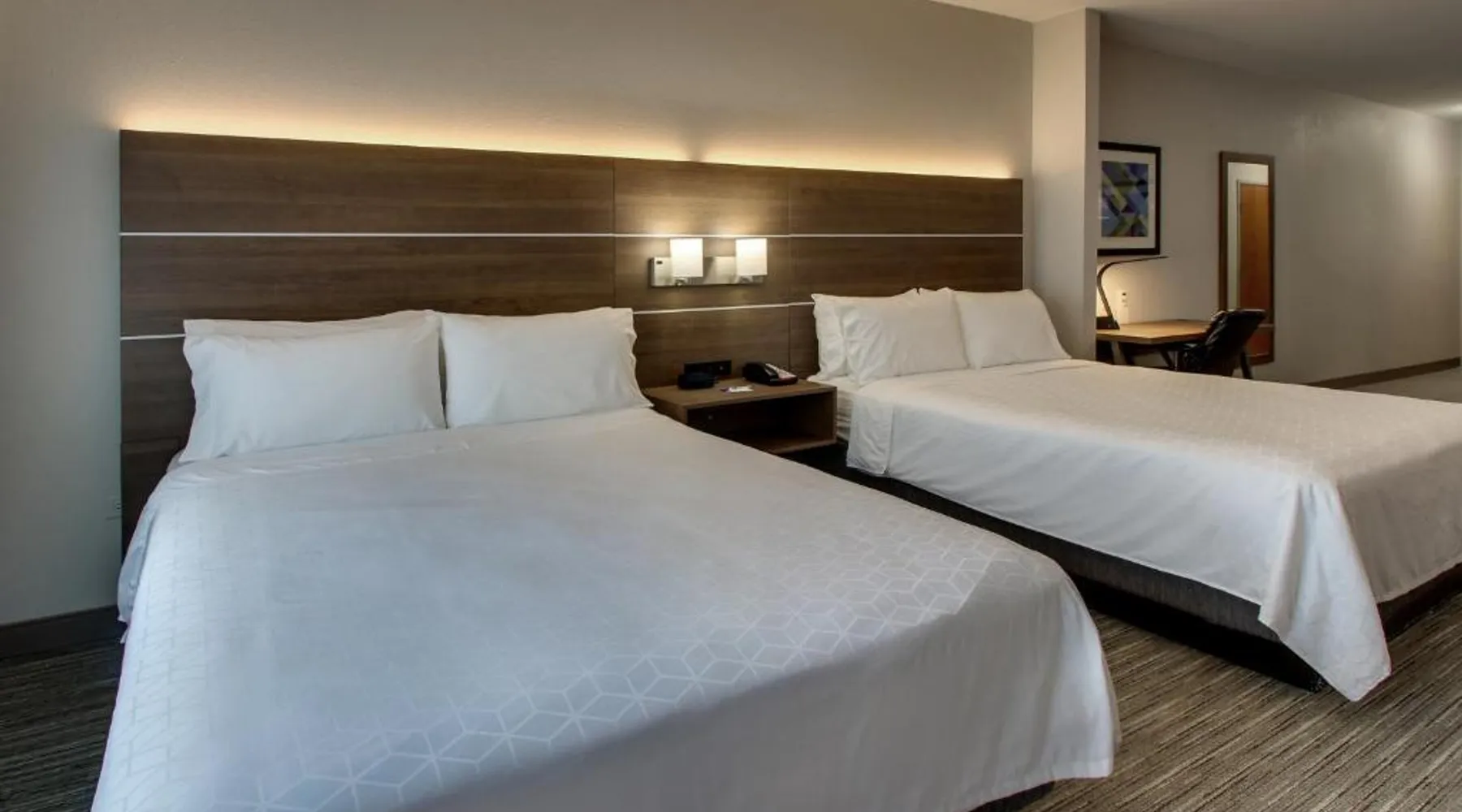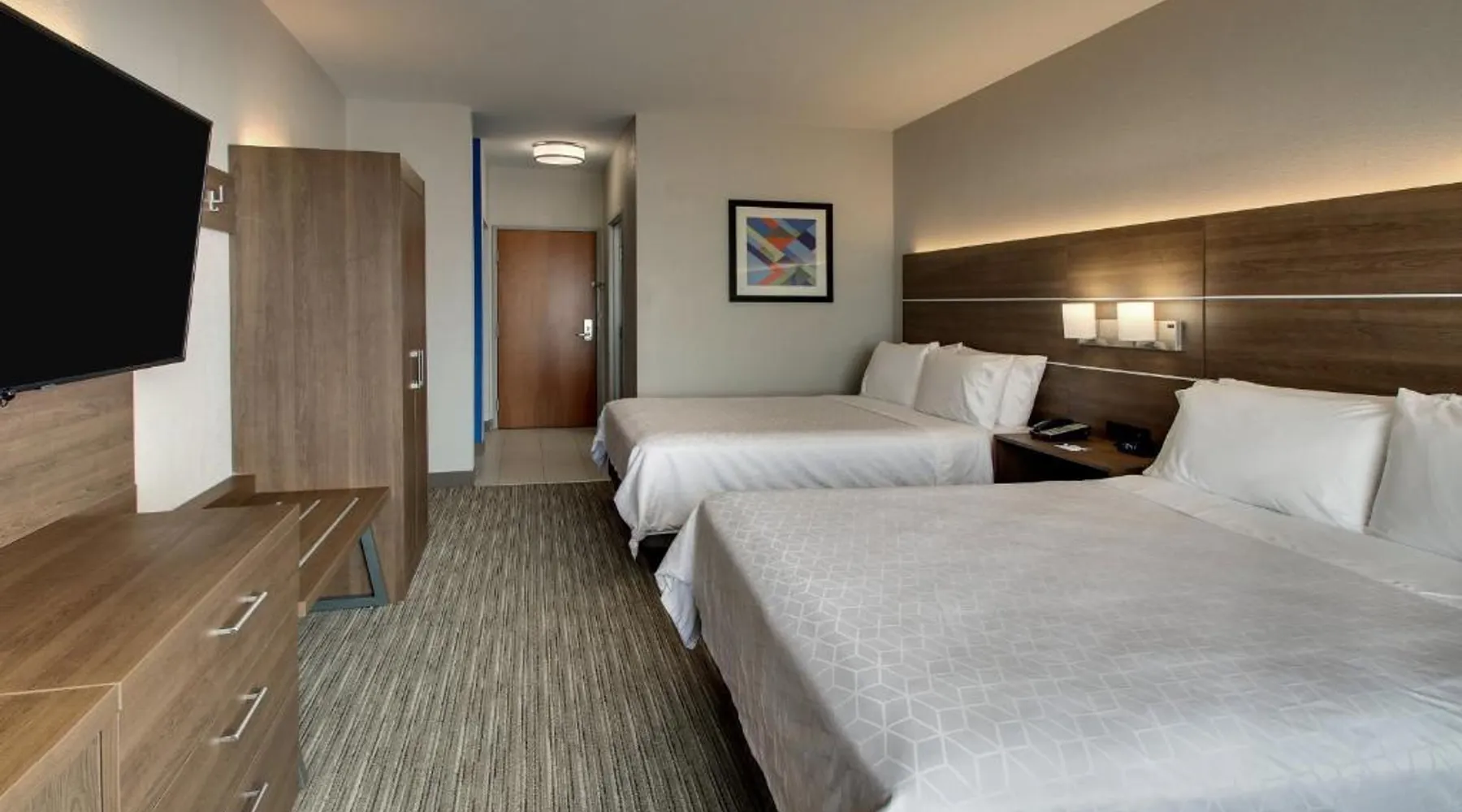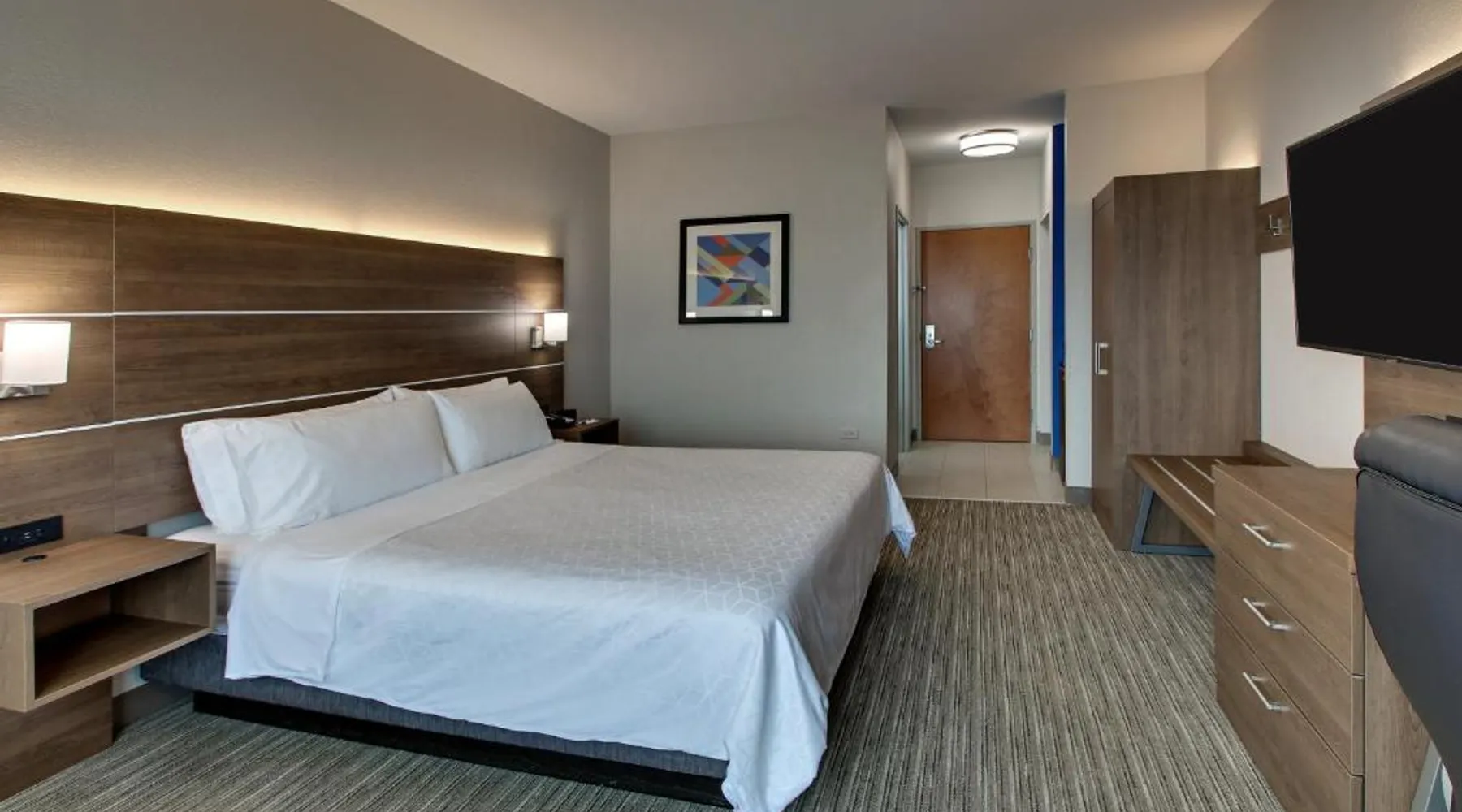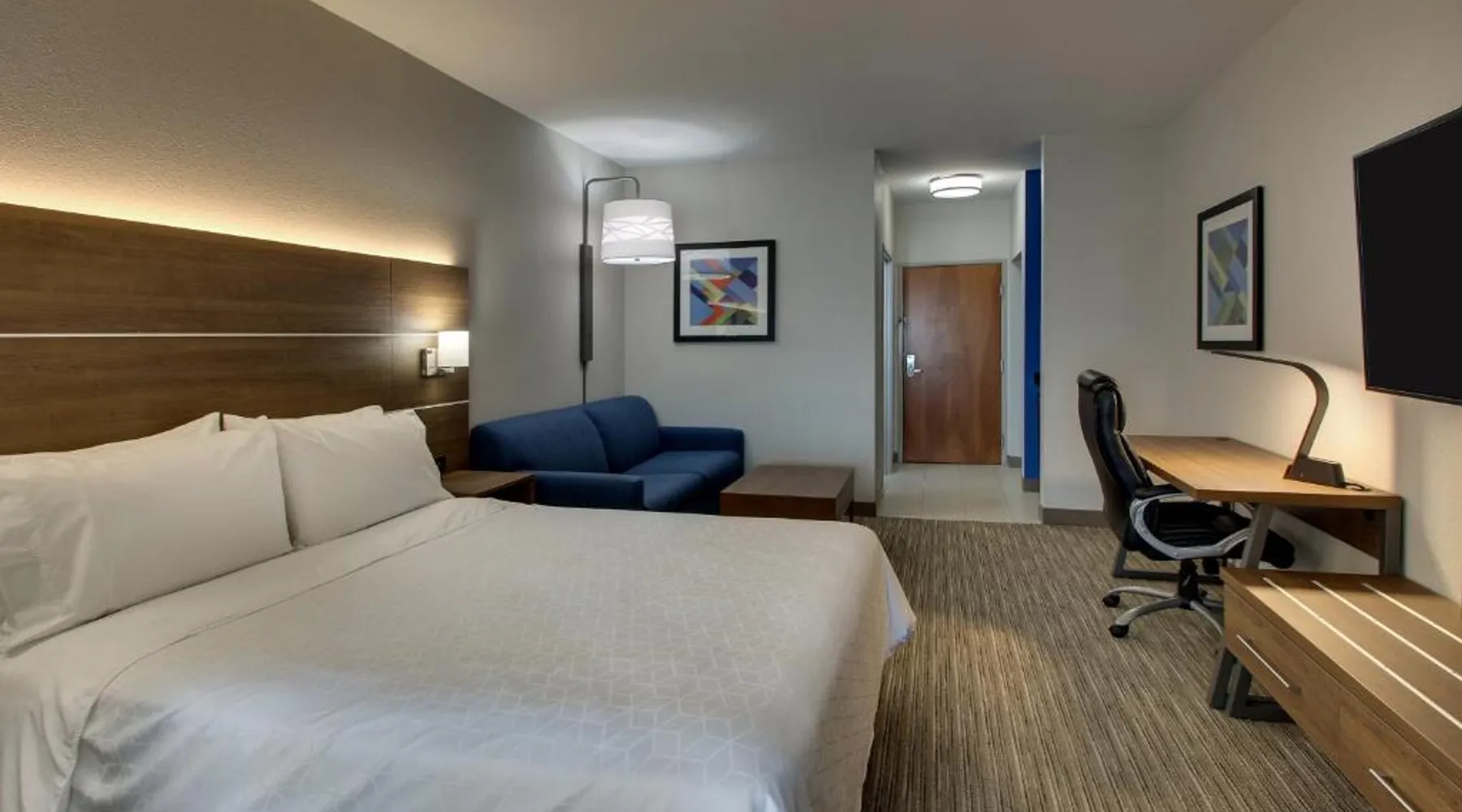 Just 4 miles from Six Flags Great America, this Waukegan hotel features an indoor pool on site. Each guest room is equipped with a 55-inch flat-screen TV. Free Wi-Fi is offered in every room at Holiday Inn Express Hotel & Suites Waukegan/Gurnee. An in-room microwave, fridge, and tea and coffee-making facilities are standard at this hotel. A hot breakfast is served at Waukegan/Gurnee Holiday Inn Express Hotel & Suites each morning. A 24-hour fitness center and business center are also provided. The Naval Training Center is 5 miles away. Gurnee Mills Mall is less than 7 miles from this hotel. Featuring a 55-inch flat-screen TV, this room also offers a microwave, fridge, and tea and coffee-making facilities. Bed type preference cannot be guaranteed as it will be allocated upon arrival based on availability.