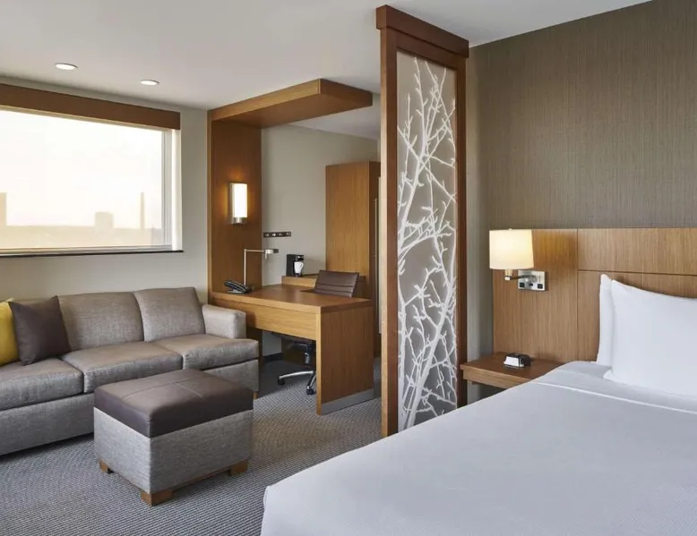 Comfortable Accommodations: Hyatt Place Wilmington Riverfront in Wilmington offers family rooms with air-conditioning, private bathrooms, and river views. Each room includes a work desk, sofa bed, and free WiFi. Dining and Leisure: The modern restaurant serves American cuisine with vegetarian and gluten-free options. Guests can enjoy breakfast, lunch, and dinner, alongside cocktails at the bar. Free bicycles and a fitness center enhance the stay. Convenient Location: Located 5.6 mi from New Castle Airport, the hotel is near attractions such as Old Dutch House and Delaware Museum Of Natural History, each 6.2 mi away. Free on-site private parking is available. Featuring free toiletries, this quadruple room includes a private bathroom with a bath or a shower and a hairdryer. The air-conditioned quadruple room features a flat-screen TV with cable channels, a tea and coffee maker, a seating area and a wardrobe. The unit has 2 beds.