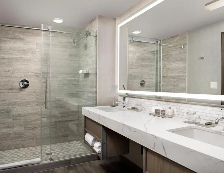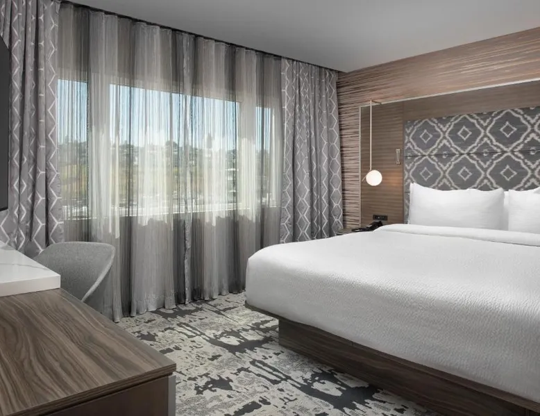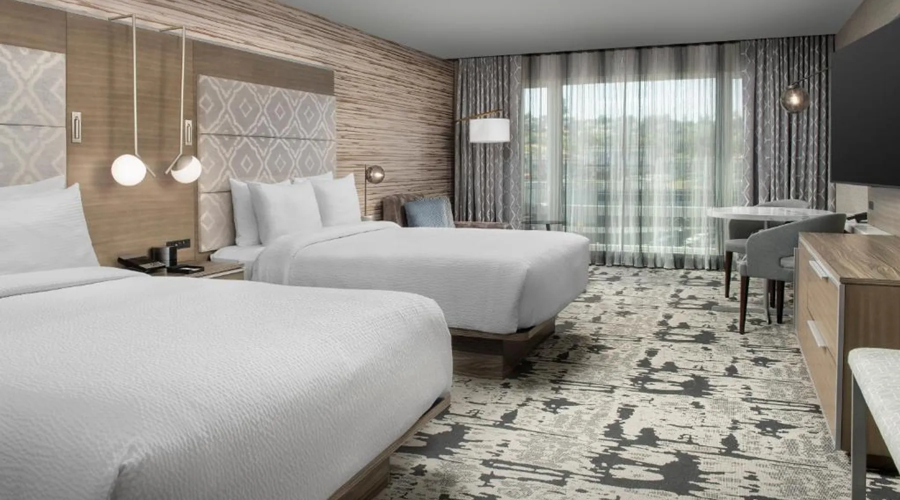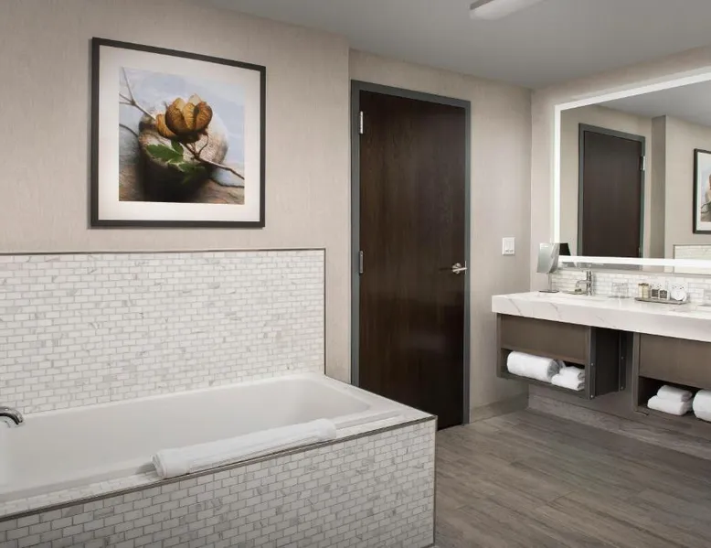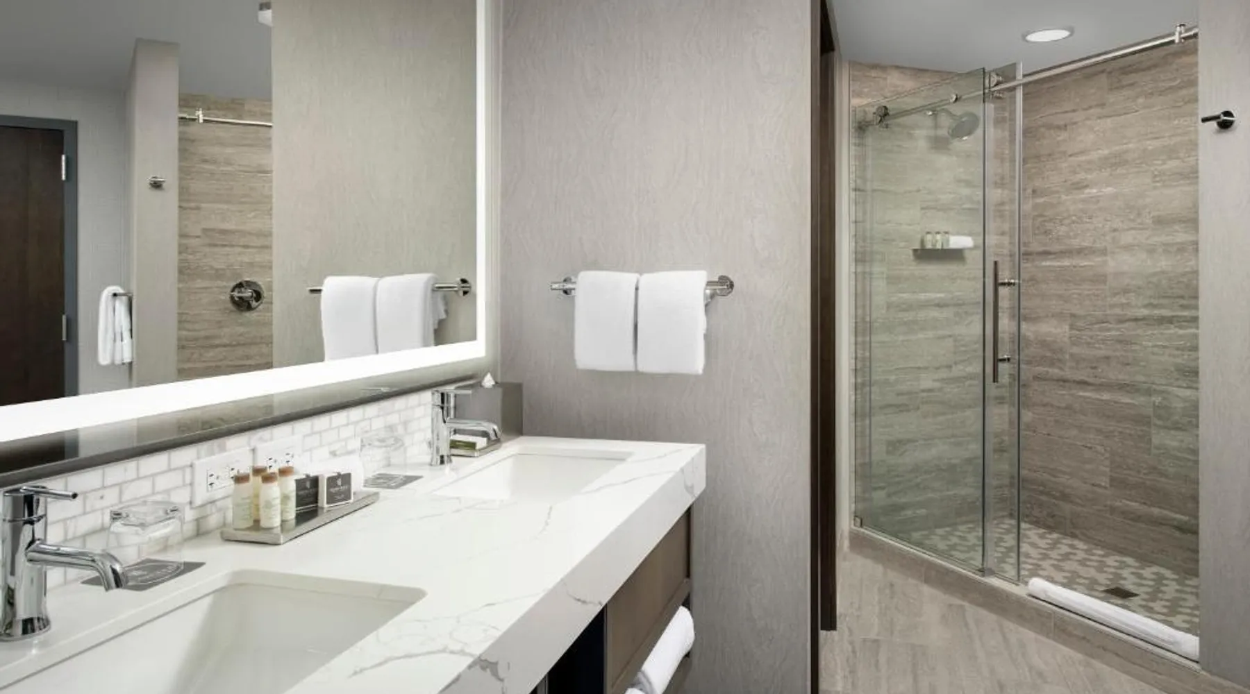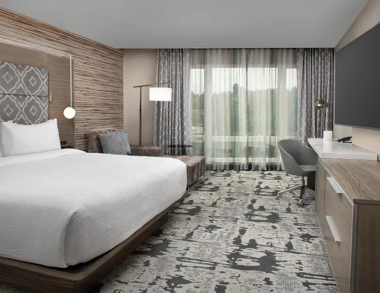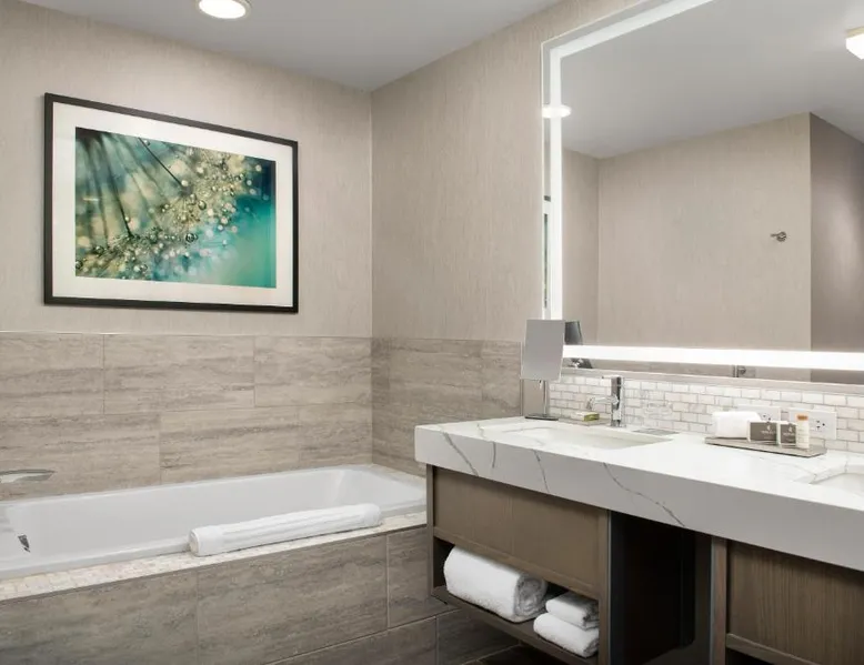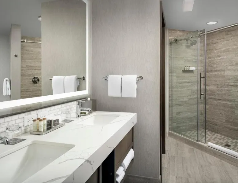 Elegant Accommodations: Silver Cloud Hotel Tacoma at Point Ruston Waterfront in Tacoma offers a 4-star experience with a rooftop swimming pool, spa facilities, fitness center, sun terrace, and a lush garden. Guests enjoy free WiFi, a restaurant, bar, and a variety of amenities including a hot tub and outdoor fireplace. Comfortable Rooms: Rooms feature air-conditioning, private bathrooms, tea and coffee makers, hairdryers, refrigerators, work desks, and seating areas. Additional amenities include bathrobes, baths, and wardrobes, ensuring a relaxing and comfortable stay. Dining Options: The family-friendly restaurant serves American cuisine with vegetarian, vegan, gluten-free, and dairy-free options. Breakfast includes local specialties, warm dishes, fresh pastries, pancakes, and juice. Dinner is available in a modern and romantic ambiance. Prime Location: Located 26 mi from Seattle–Tacoma International Airport, the hotel is a 16-minute walk from Owen Beach. Nearby attractions include the Museum of Glass (5.6 mi) and various restaurants. Guests appreciate the scenic views and excellent service. This quadruple room features air conditioning, soundproofing and lake view and a 65 inch flat screen TV