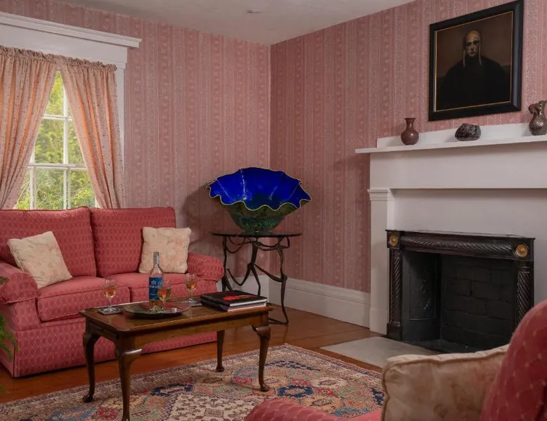 Historic Setting: Camden Maine Stay Inn in Camden is housed in a historic building, offering a unique and charming atmosphere. The property features a beautiful garden and terrace, perfect for relaxation. Comfortable Accommodations: Rooms include air-conditioning, private bathrooms, and free WiFi. Additional amenities include balconies with garden or mountain views, fireplaces, and work desks. Family rooms and ground-floor units cater to all guests. Delicious Breakfast: Guests enjoy a variety of breakfast options, including American, full English/Irish, vegetarian, vegan, and gluten-free. Breakfast includes local specialties, fresh pastries, and warm dishes. Convenient Location: Located 11 mi from Knox County Regional Airport, the inn is close to attractions such as Laite Memorial Beach (17-minute walk), Mount Battie (1.2 mi), and Camden Harbor Park (4-minute walk). Activities like skiing, hiking, and cycling are available nearby. This corner room is on the 1st floor and has a brass bed, two sitting areas and views of the garden.