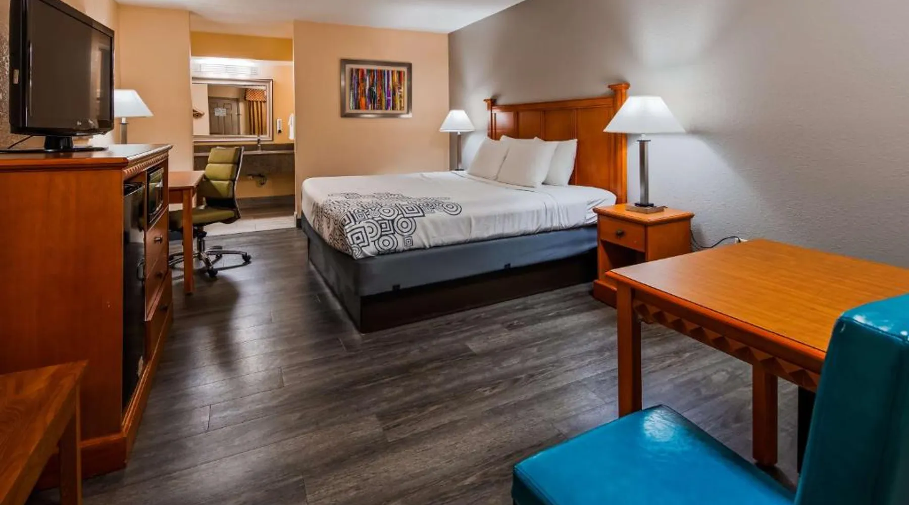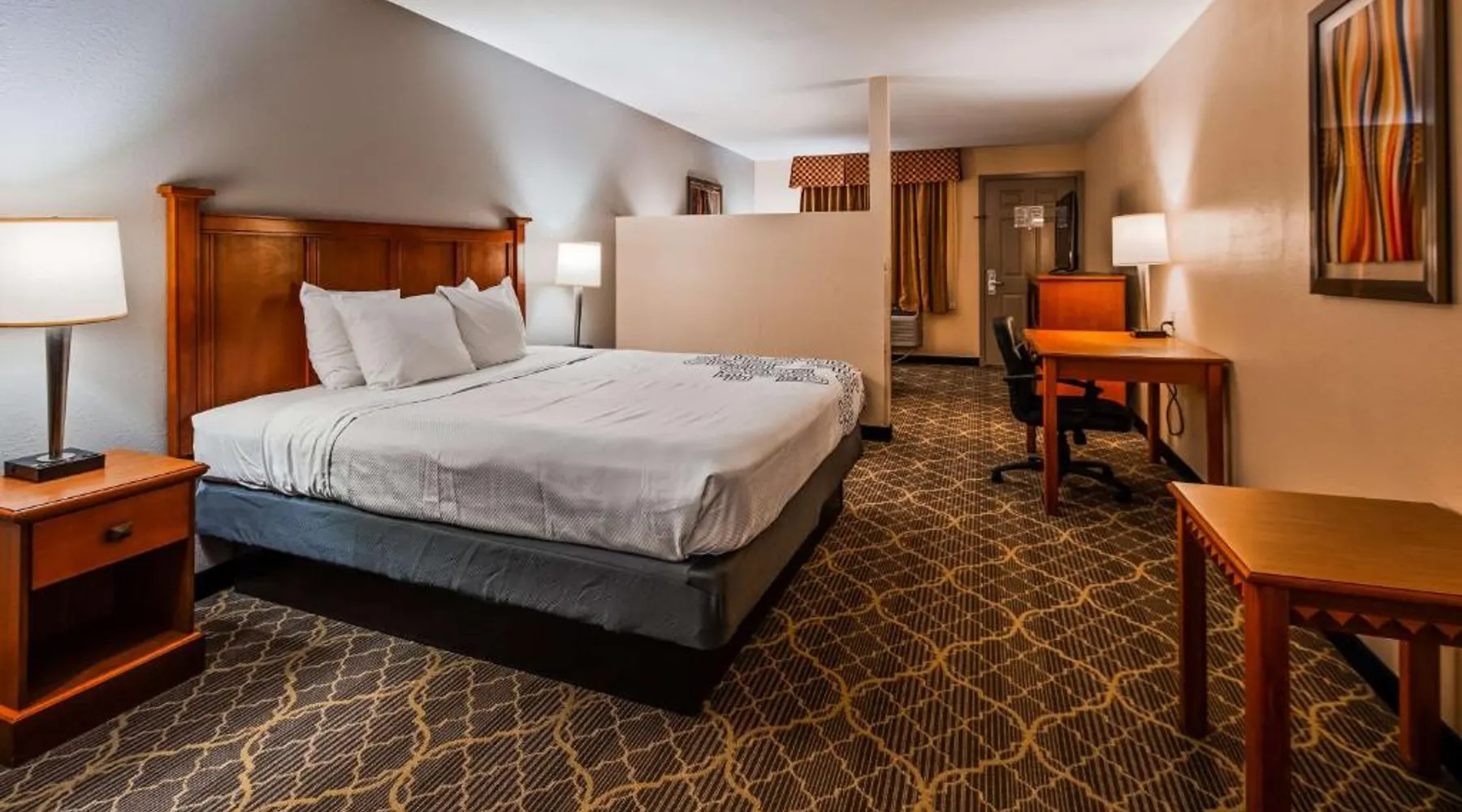 Comfortable Accommodations: Best Western Jacksonville near Little Rock Air Force Base in Jacksonville offers family rooms with private bathrooms, air-conditioning, and free WiFi. Each room includes a refrigerator, microwave, and TV. Leisure Facilities: Guests can enjoy a fitness center, seasonal outdoor swimming pool, and a coffee shop. Additional amenities include a patio, pool views, and a work desk. Convenient Services: The hotel provides free on-site parking, a 24-hour front desk, and a business area. Private check-in and check-out services ensure a smooth arrival and departure. Local Attractions: Located 17 mi from Clinton National Airport, the property is near Jacksonville Msm Of Military Hist (1.2 mi) and Simmons Bank Arena (13 mi). Guests appreciate the attentive staff and room cleanliness. The double room offers a tea and coffee maker. The unit has 1 bed.