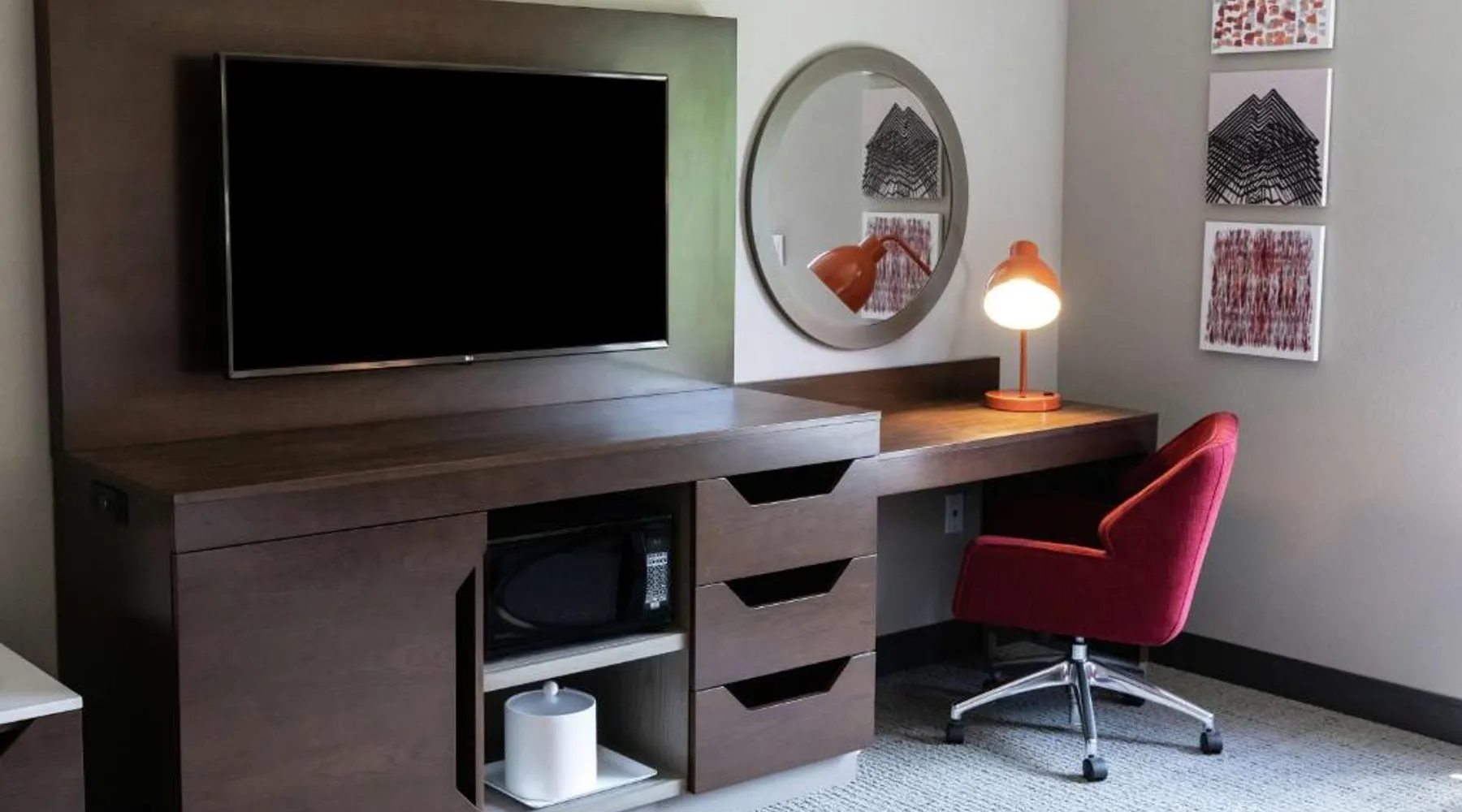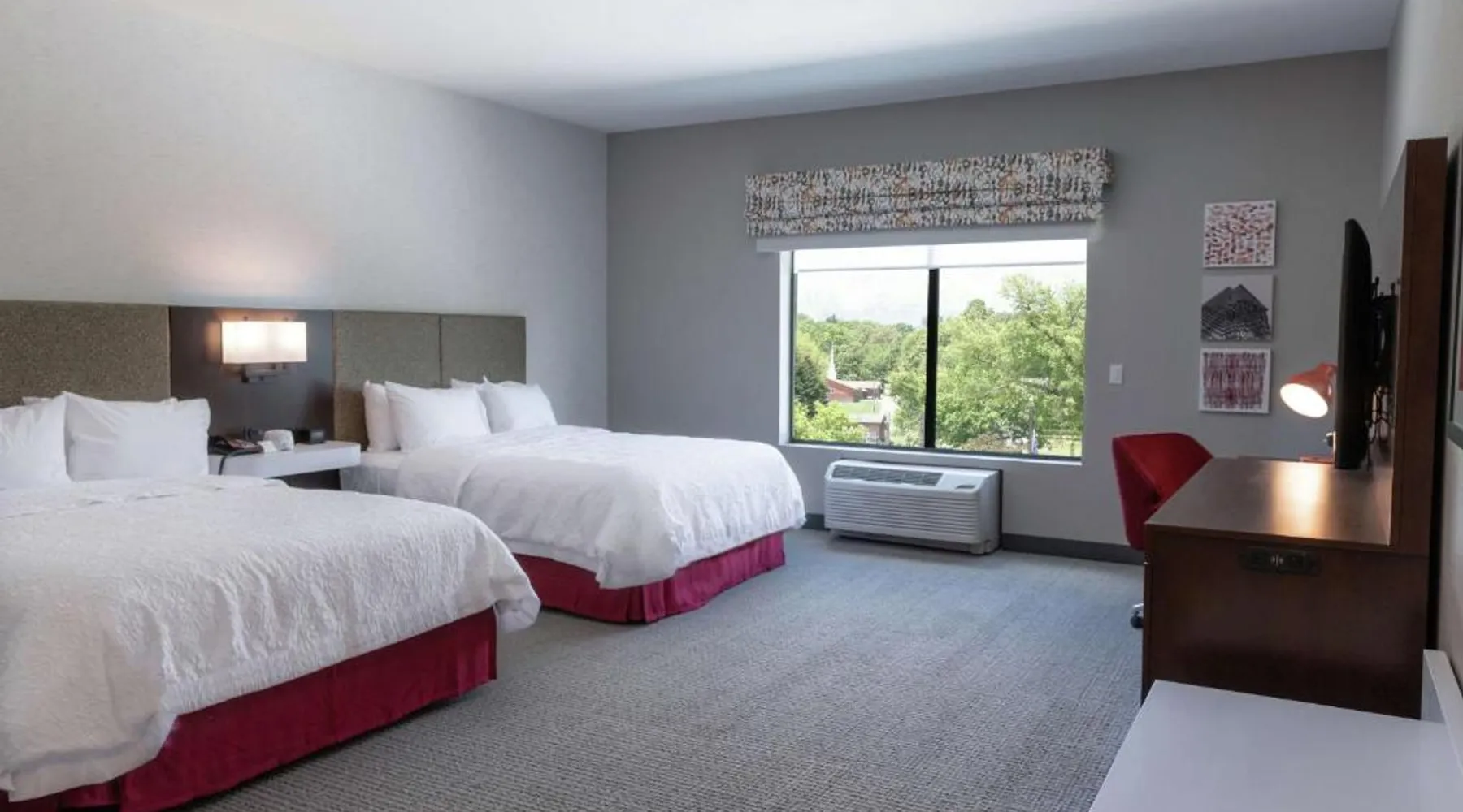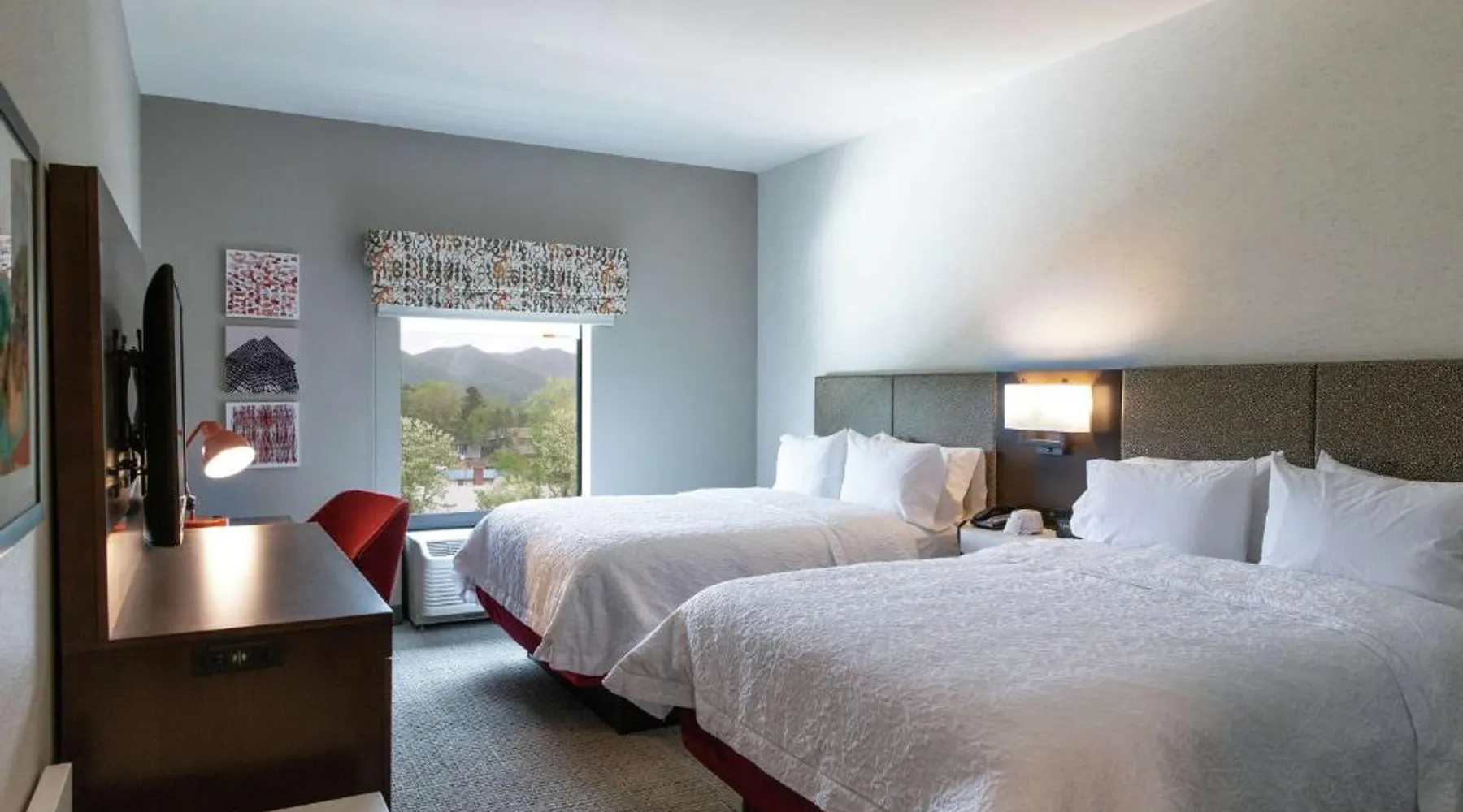 Comfortable Accommodations: Hampton Inn Black Mountain in Black Mountain offers comfortable rooms with air-conditioning, free WiFi, and amenities such as tea and coffee makers, hairdryers, and free toiletries. Leisure Facilities: Guests can enjoy a saltwater and indoor swimming pool, outdoor fireplace, fitness room, and outdoor seating area. Free on-site private parking is available. Dining Experience: A buffet breakfast is served with warm dishes, juice, fresh pastries, pancakes, cheese, and fruits. Convenient Location: Located 23 mi from Asheville Regional Airport, the hotel is near attractions like Biltmore Estate (17 mi) and the Folk Art Center (11 mi). Highly rated for breakfast, room cleanliness, and comfort. This double room has air conditioning, a tea and coffee maker and a TV. The unit has 1 bed.