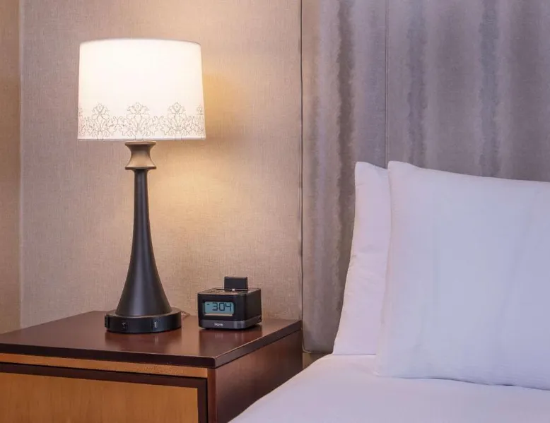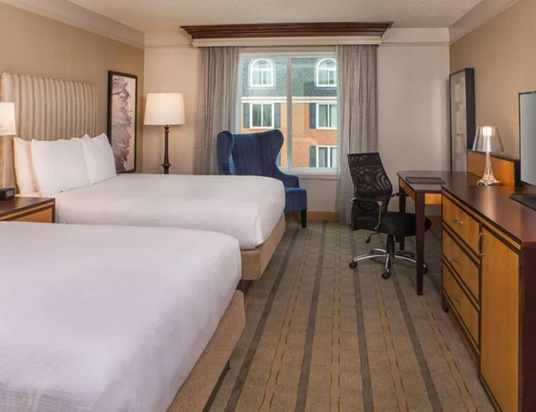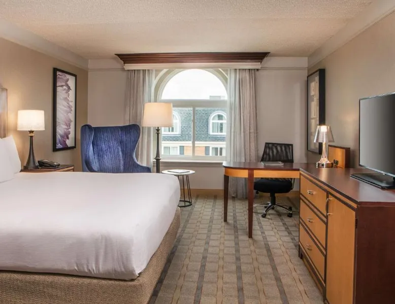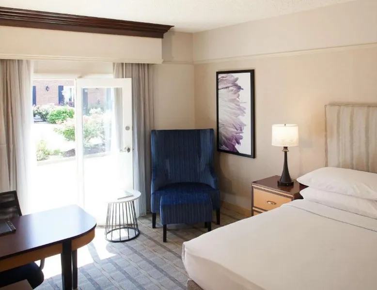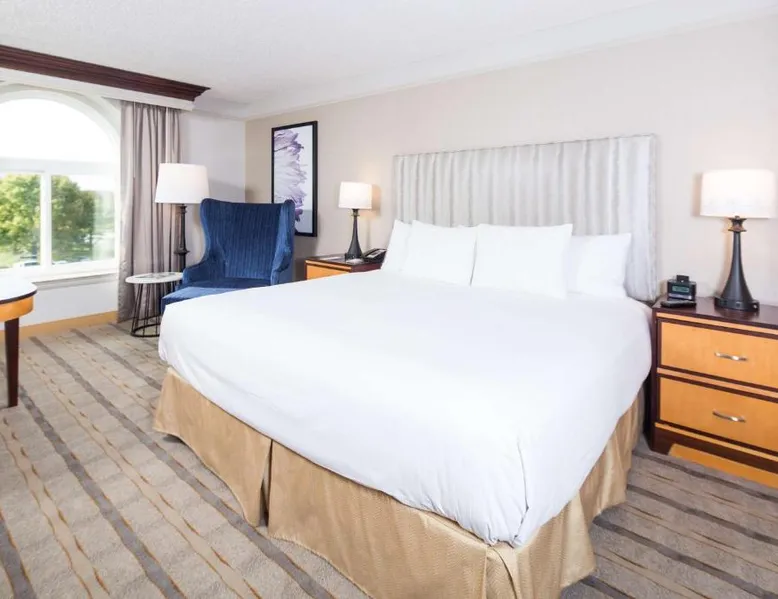 Located just off Interstate 95, Hilton Wilmington/Christiana offers modern comfort near Wilmington, Newark, and top local attractions. Guests enjoy easy access to tax-free shopping at Christiana Mall (1.1 mi), Delaware Park Casino (1 mi), and nearby cultural landmarks like Longwood Gardens (18 mi) and Winterthur Museum (12 mi). Each guest room features WiFi, Hilton Digital Key access, and premium bedding. The hotel’s Market Kitchen & Bar serves fresh, locally inspired dishes, with seasonal live music on the outdoor patio. A 24-hour fitness center is also available. Perfect for business travel, weddings, and events, Hilton Wilmington/Christiana offers flexible indoor and outdoor event spaces, including a landscaped courtyard, patio, and gazebo. The property is just 3.5 mi from Downtown Newark, 9.3 mi from Wilmington’s Riverfront, and minutes from the University of Delaware. Whether you’re visiting for work or a weekend getaway, Hilton Wilmington/Christiana combines convenience, comfort, and style in the heart of Delaware.. This king room features a microwave, tea/coffee maker, HT150 CUBE CLOCK, tabletop lamp with built-in power outlets and USB port, work desk and chair, and 42 inch LG TV with On Demand and HBO.