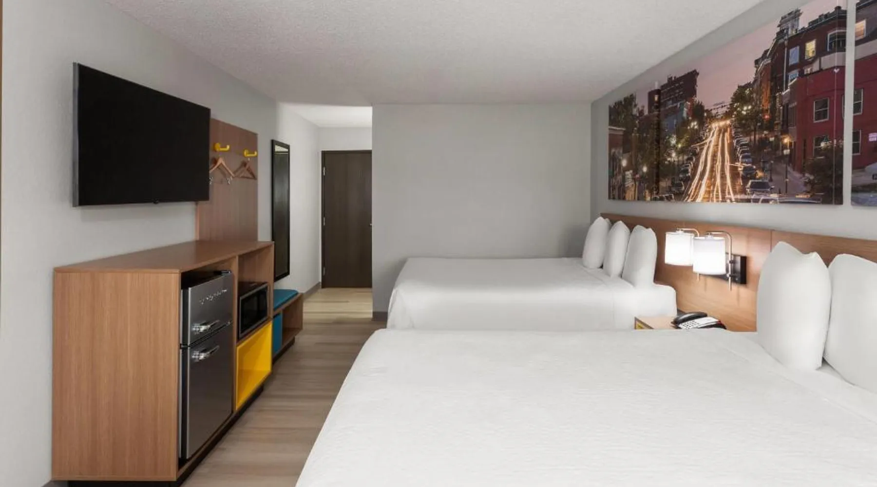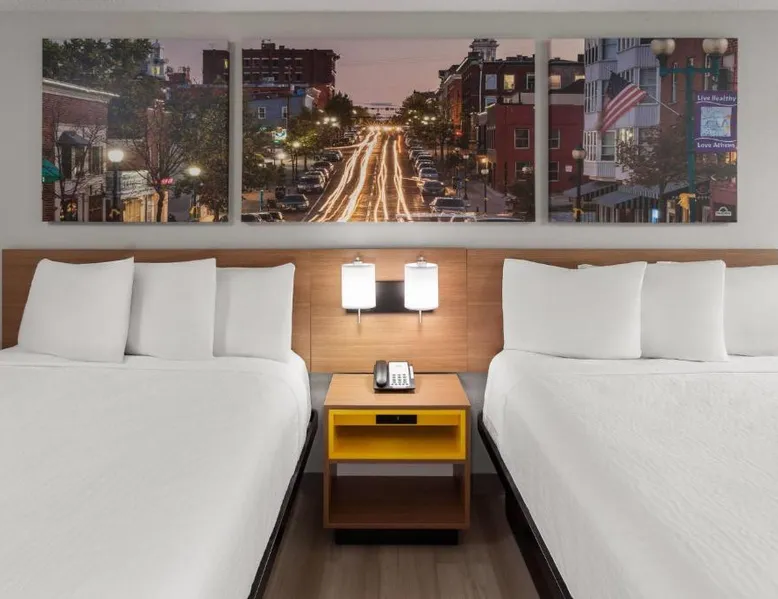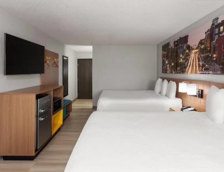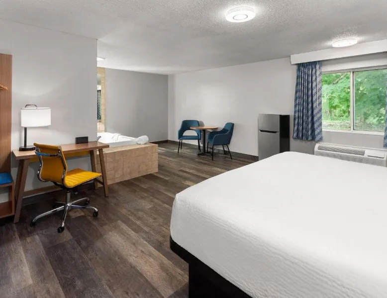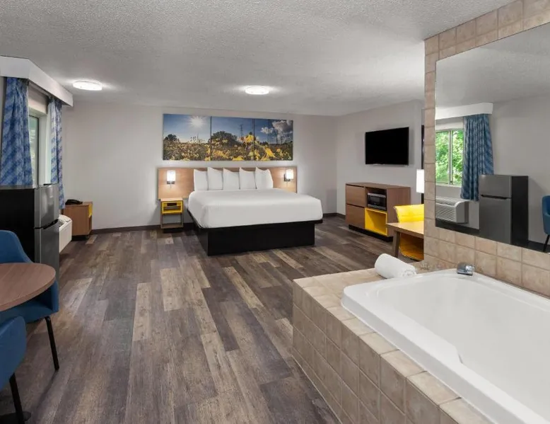 Comfortable Accommodations: Rooms feature air-conditioning, private bathrooms, tea and coffee makers, hairdryers, refrigerators, work desks, free toiletries, microwaves, showers, and TVs. Additional amenities include spa baths, sofa beds, and sofas. Exceptional Facilities: Guests enjoy an indoor swimming pool, free WiFi, private check-in and check-out, casino, 24-hour front desk, daily housekeeping, business area, outdoor seating, picnic area, family rooms, and full-day security. Dining Options: An American breakfast is served with juice, fresh pastries, and fruits. Location and Attractions: Located in Kaukauna, the hotel is 16 mi from Outagamie County Regional Airport. Nearby attractions include Lambeau Field (20 mi), The History Museum at the Castle (9.3 mi), Lawrence University (9.3 mi), and Oneida Casino Pavilion (19 mi). Featuring free toiletries, this quadruple room includes a private bathroom with a bath, a shower and a hairdryer. The quadruple room features air conditioning, a tea and coffee maker, heating, as well as a flat-screen TV with cable channels. The unit has 2 beds.