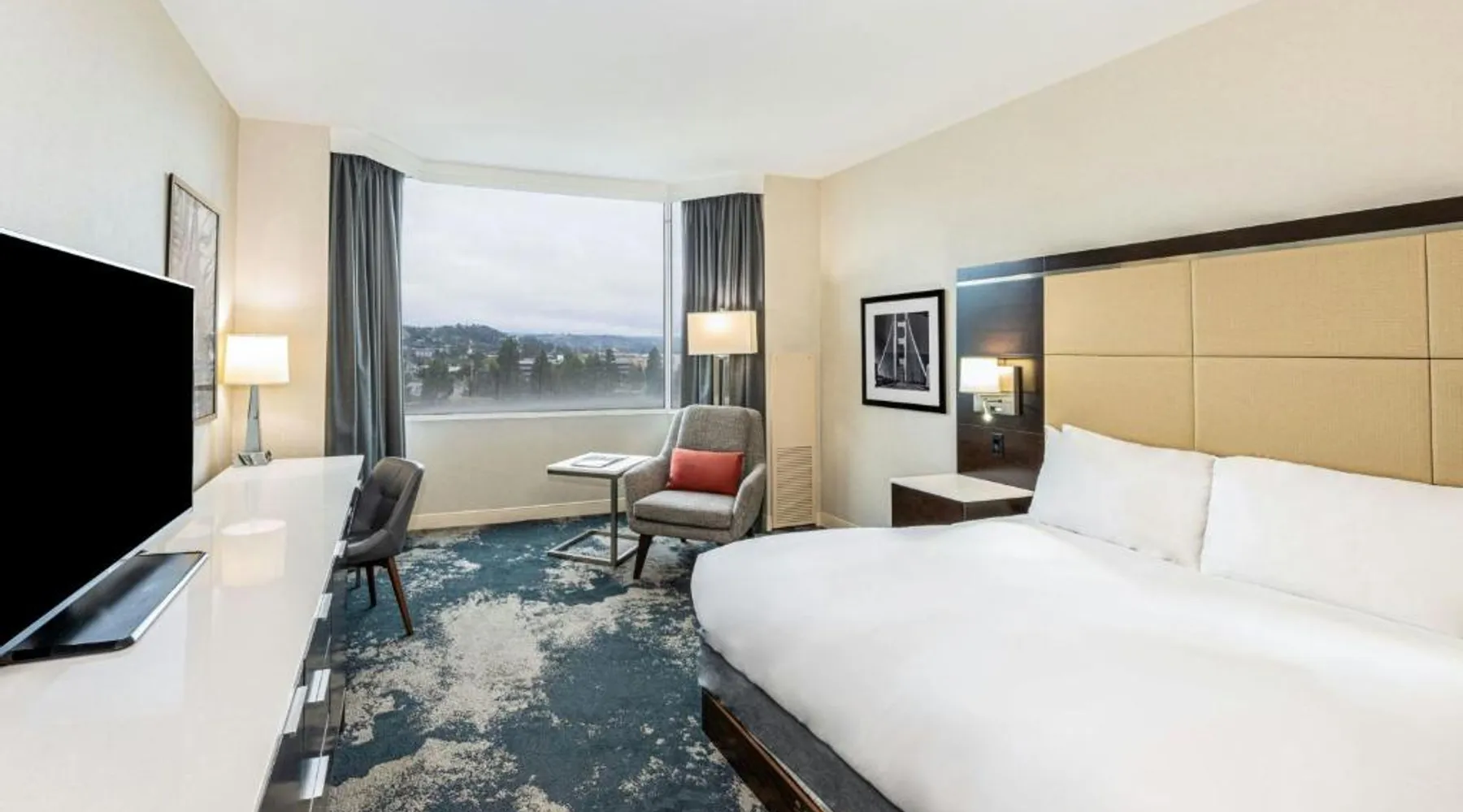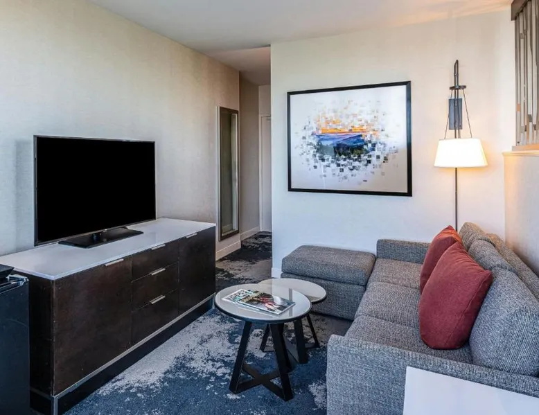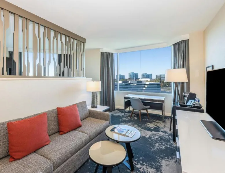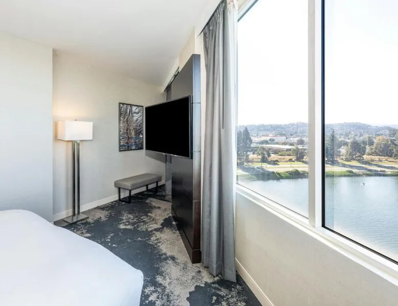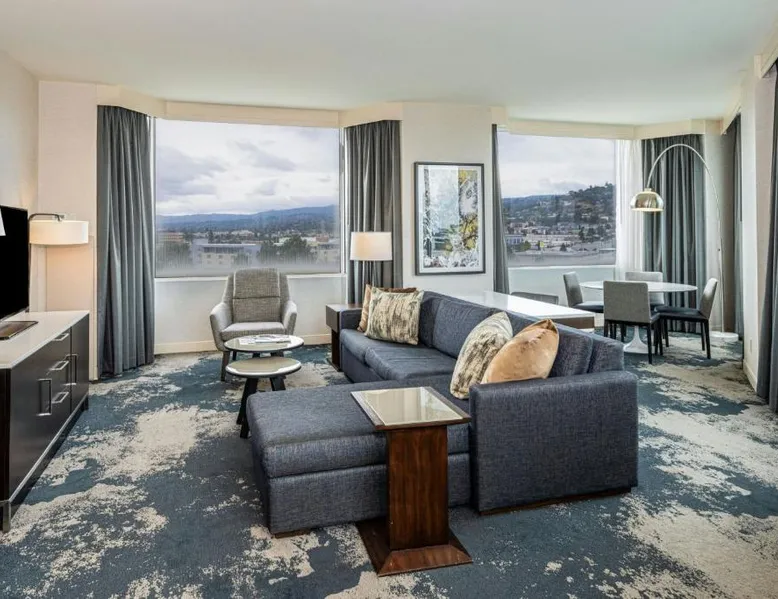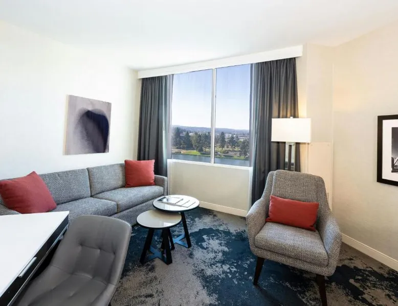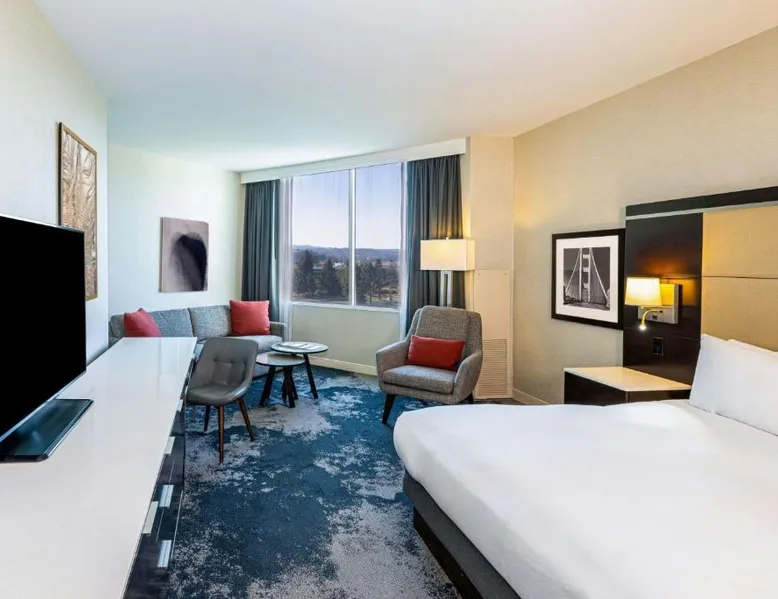 "A Marriott Bonvoy hotel' This hotel overlooks a lagoon. All rooms feature a work desk and a coffee machine. The hotel offers room service. Dining options at the Grand Bay Hotel San Francisco Hotel include Waterside Grill and Lounge, which has views of the lagoon and serves local California cuisine. The hotel also has the Bar, which has views of the pool and lagoon. The bar offers a light menu and unique cocktails. Guests at the Grand Bay Hotel San Francisco Hotel can swim in the outdoor pool or work out in the gym. The hotel also offers a gift shop. The Grand Bay Hotel San Francisco Hotel is 30 km from Silicon Valley. The hotel is within a 40-minute drive of San Francisco, which has shopping, dining and entertainment. This room features high speed internet, a spacious bathroom with both a shower and bathtub, a separate sitting area with a love seat and table, a work space with desk and chair, 2 TVs, an alarm clock, hairdryer, coffee maker, refrigerator, safe deposit box, and premium sound system.