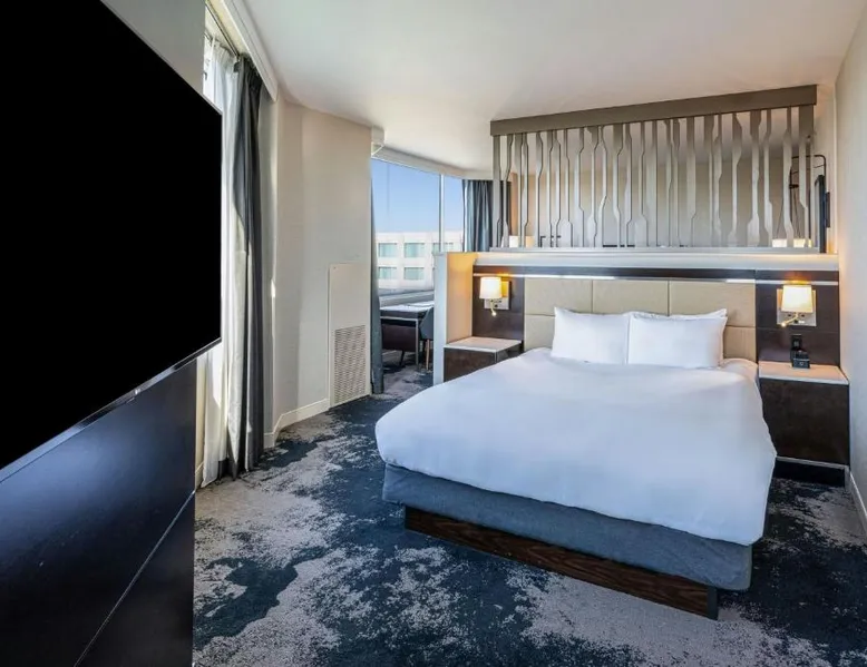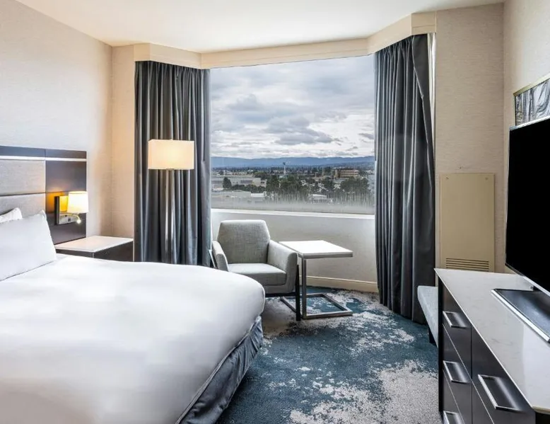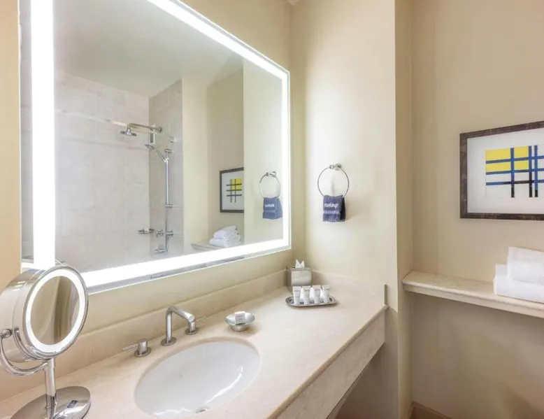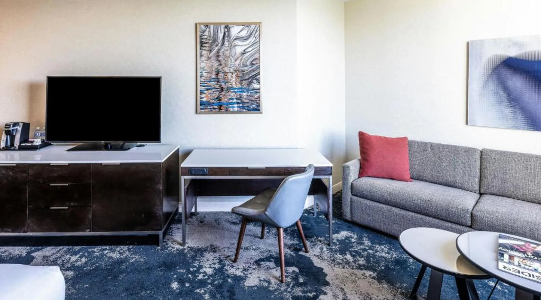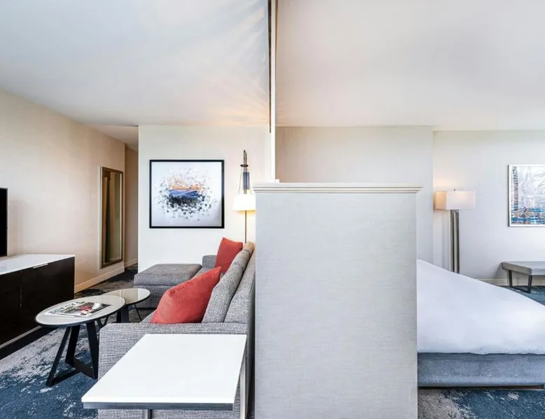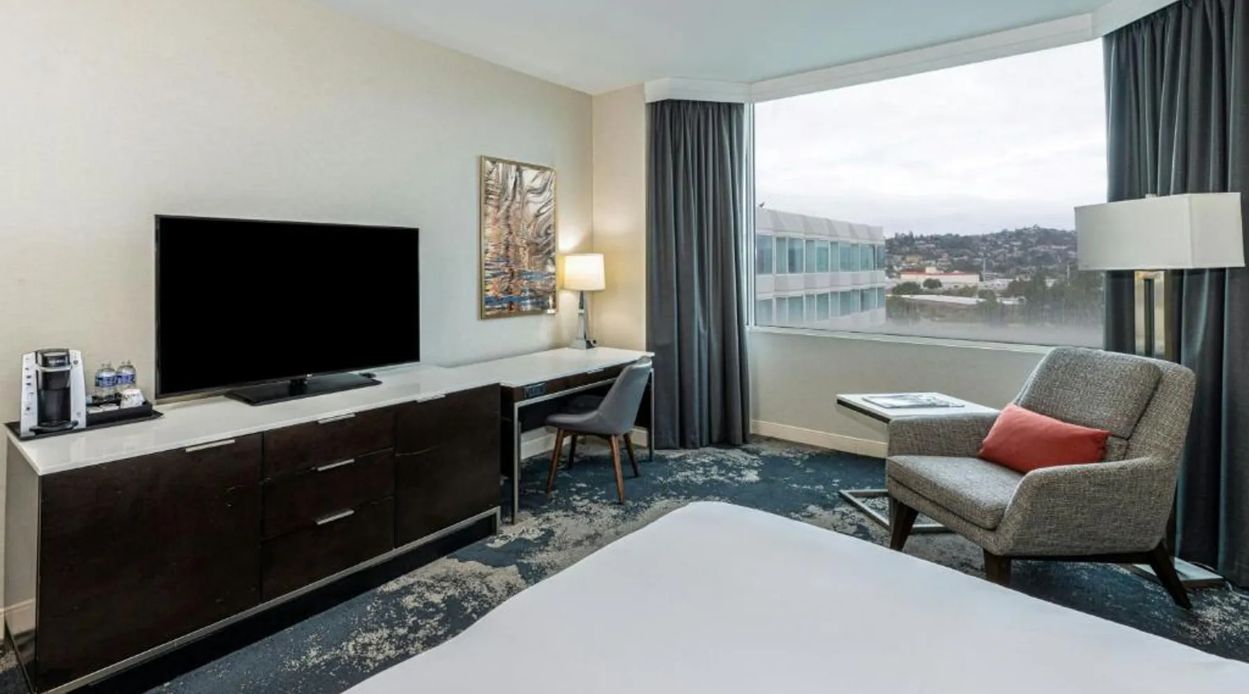 "A Marriott Bonvoy hotel' This hotel overlooks a lagoon. All rooms feature a work desk and a coffee machine. The hotel offers room service. Dining options at the Grand Bay Hotel San Francisco Hotel include Waterside Grill and Lounge, which has views of the lagoon and serves local California cuisine. The hotel also has the Bar, which has views of the pool and lagoon. The bar offers a light menu and unique cocktails. Guests at the Grand Bay Hotel San Francisco Hotel can swim in the outdoor pool or work out in the gym. The hotel also offers a gift shop. The Grand Bay Hotel San Francisco Hotel is 30 km from Silicon Valley. The hotel is within a 40-minute drive of San Francisco, which has shopping, dining and entertainment. This room features high speed internet, a spacious bathroom with both a shower and bathtub, a separate sitting area with a love seat and table, a work space with desk and chair, 2 TVs, an alarm clock, hairdryer, coffee maker, refrigerator, safe deposit box, and premium sound system.
