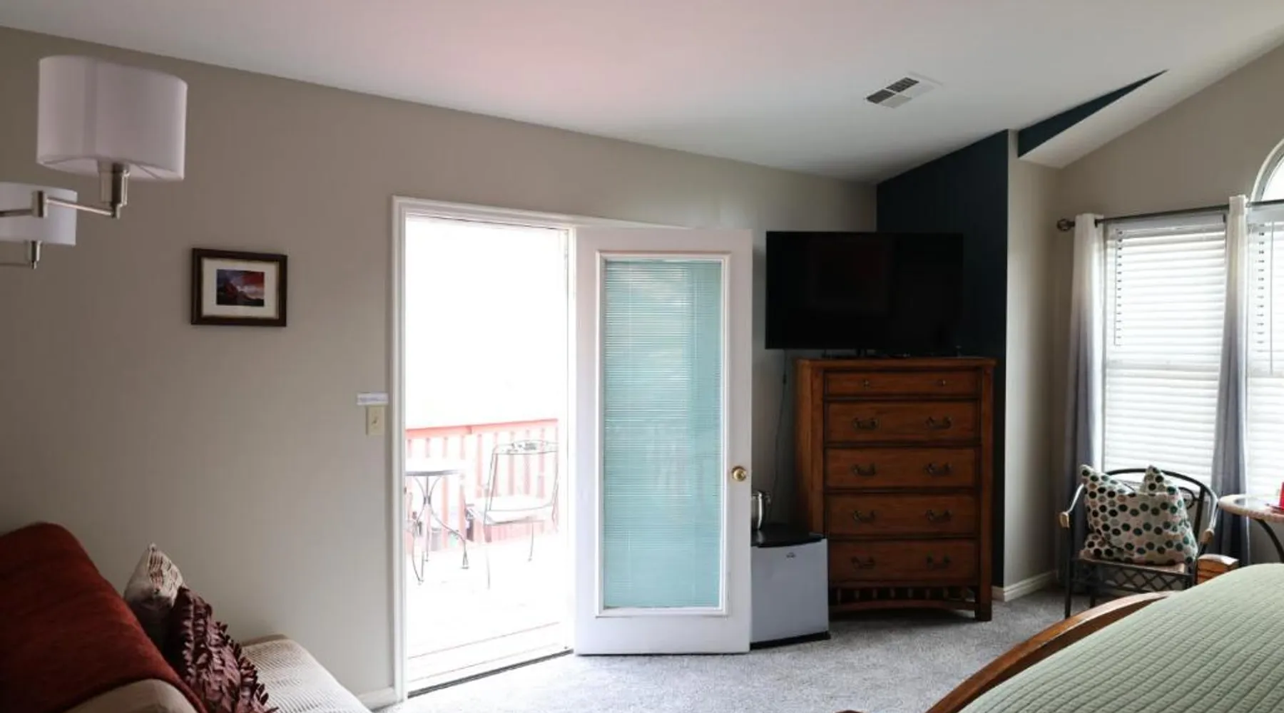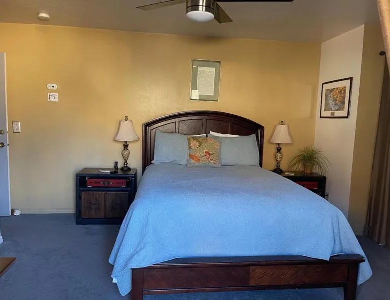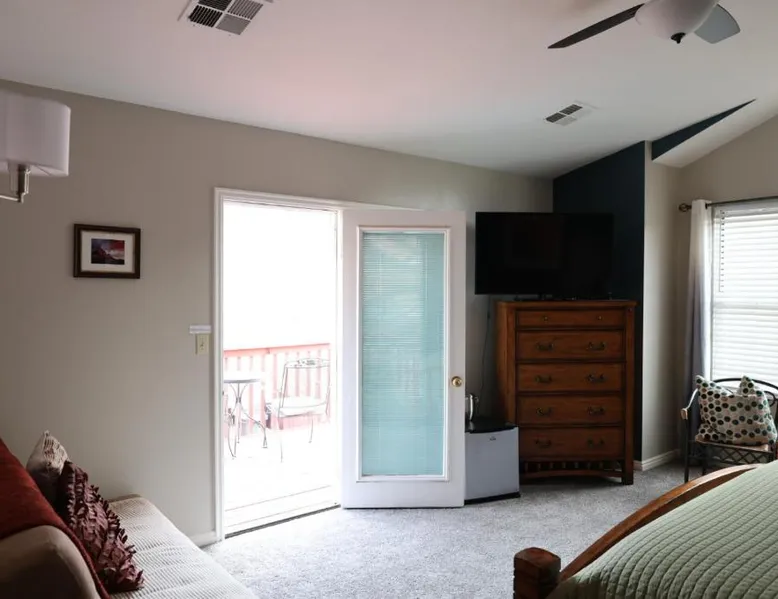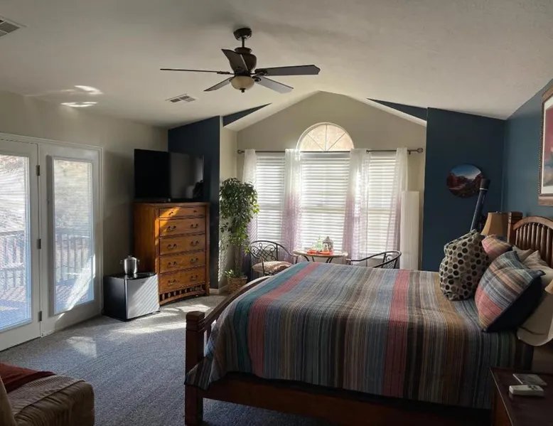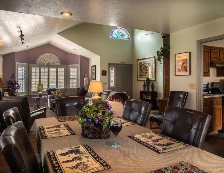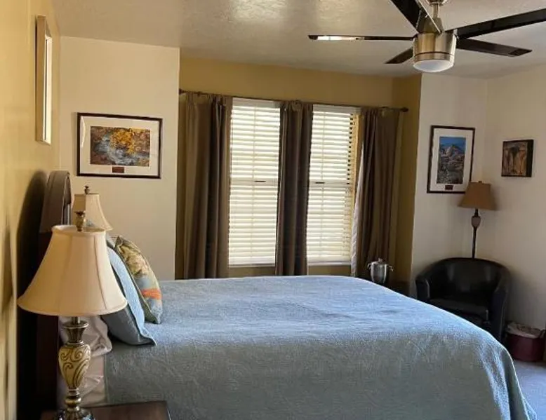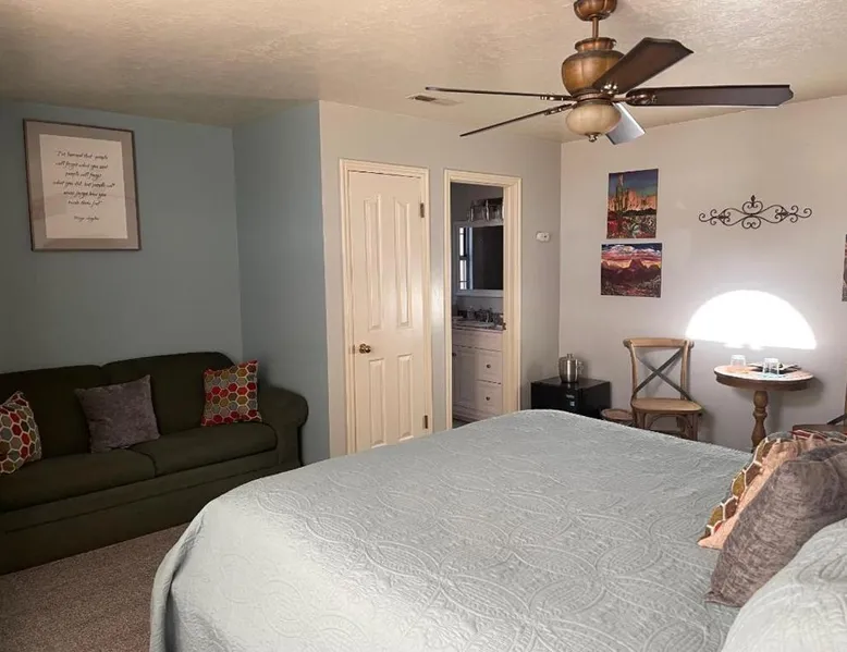 Elegant Accommodations: Harvest House Bed and Breakfast in Springdale offers adults-only rooms with private bathrooms, air-conditioning, and garden or mountain views. Each room includes a balcony, walk-in shower, and free toiletries. Exceptional Facilities: Guests enjoy a beautiful garden, free WiFi, lounge, outdoor seating area, picnic area, and electric vehicle charging station. Free on-site private parking is available, along with a shuttle service. Convenient Location: Located 40 mi from St. George Regional Airport, the property is a short walk from Peaceful Escapes and near attractions such as Zion National Park. Highly rated for its friendly host, delicious breakfast, and convenient location. This suite consists of 1 living room, 1 separate bedroom and 1 bathroom with a walk-in shower and free toiletries. The air-conditioned suite provides a TV with satellite channels, a seating area, a sofa, a carpeted floor as well as garden views. The unit offers 1 bed.