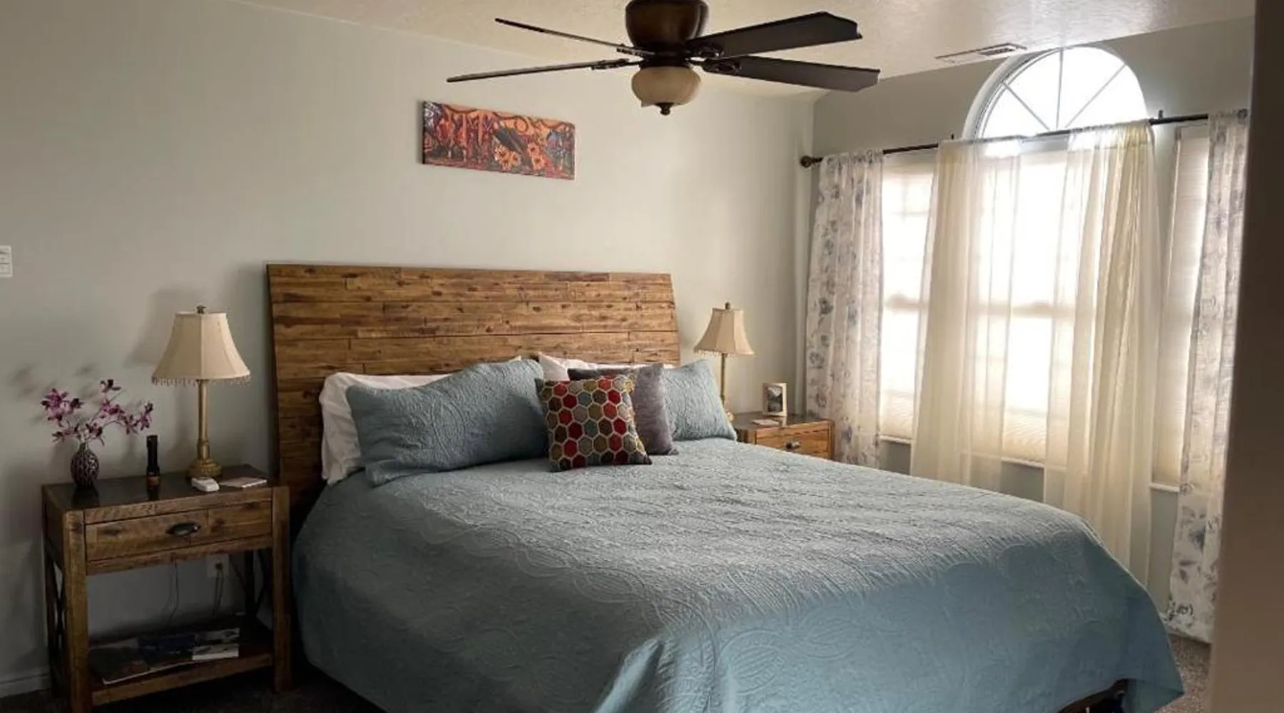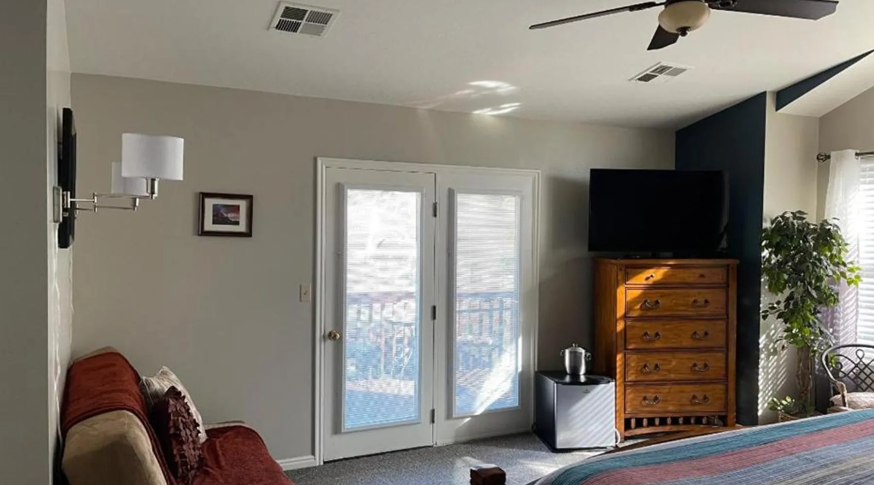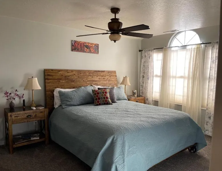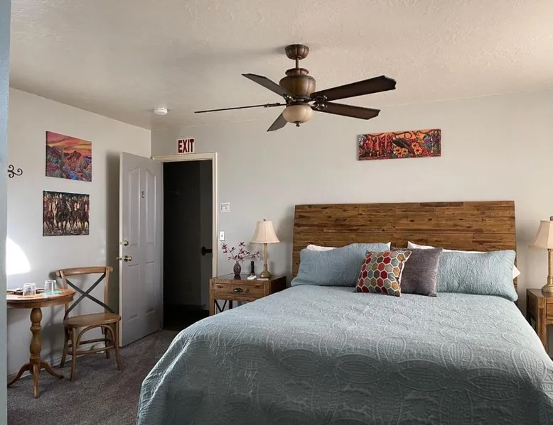 Elegant Accommodations: Harvest House Bed and Breakfast in Springdale offers adults-only rooms with private bathrooms, air-conditioning, and garden or mountain views. Each room includes a balcony, walk-in shower, and free toiletries. Exceptional Facilities: Guests enjoy a beautiful garden, free WiFi, lounge, outdoor seating area, picnic area, and electric vehicle charging station. Free on-site private parking is available, along with a shuttle service. Convenient Location: Located 40 mi from St. George Regional Airport, the property is a short walk from Peaceful Escapes and near attractions such as Zion National Park. Highly rated for its friendly host, delicious breakfast, and convenient location. This suite consists of 1 living room, 1 separate bedroom and 1 bathroom with a walk-in shower and free toiletries. The air-conditioned suite provides a TV with satellite channels, a seating area, a sofa, a carpeted floor as well as garden views. The unit offers 1 bed.