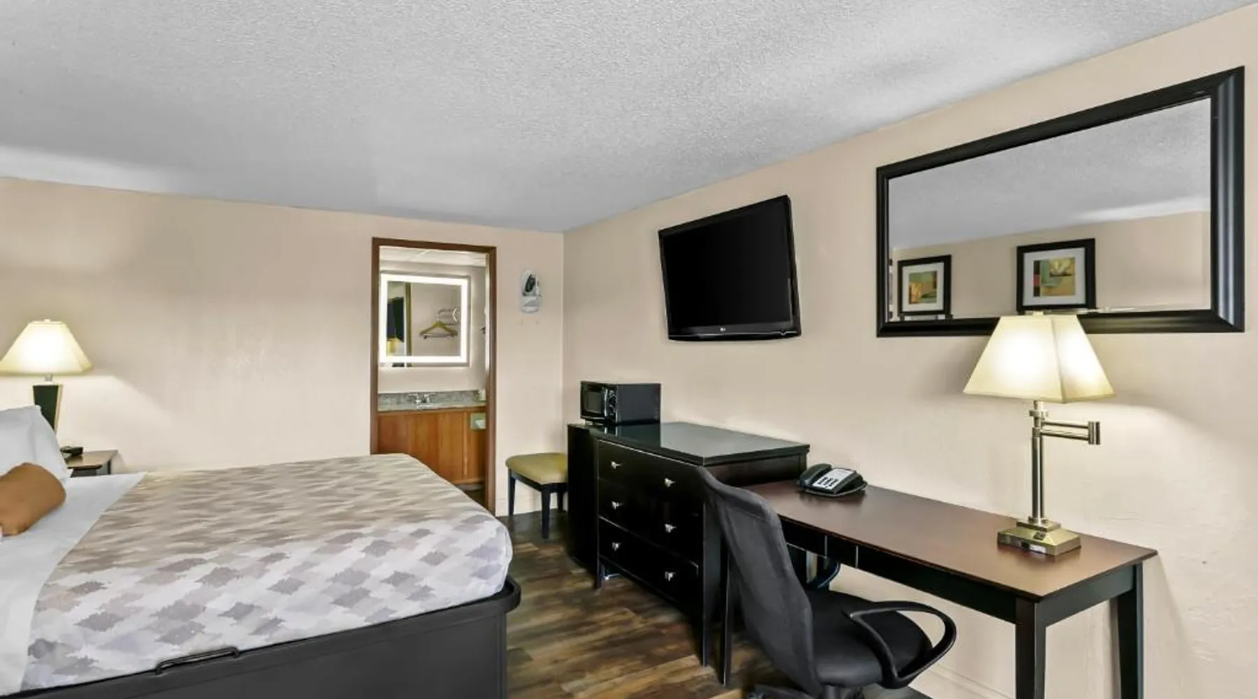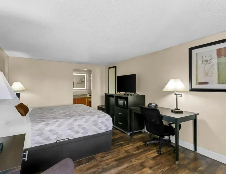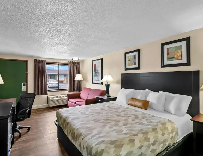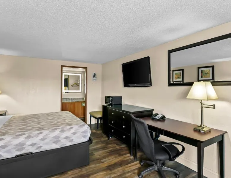 Comfortable Accommodations: Americas Best Value Inn Martinsburg in Martinsburg offers family rooms with air-conditioning, private bathrooms, and free WiFi. Each room includes a bath, hypoallergenic bedding, hairdryer, refrigerator, work desk, free toiletries, microwave, TV, private entrance, and parquet floors. Convenient Facilities: Guests benefit from a 24-hour front desk, daily housekeeping service, and free on-site parking. Additional amenities include a sofa bed and sofa, ensuring a relaxing stay. Prime Location: Located 21 mi from Hagerstown Regional Airport, the hotel is near attractions such as Art By Weeze (2.2 mi), Queen Street Gallery (2.4 mi), and Antietam National Battlefield (14 mi). Guests appreciate the convenient location. The double room offers air conditioning, a private entrance, as well as a private bathroom boasting a bath and a hairdryer. The unit has 1 bed.