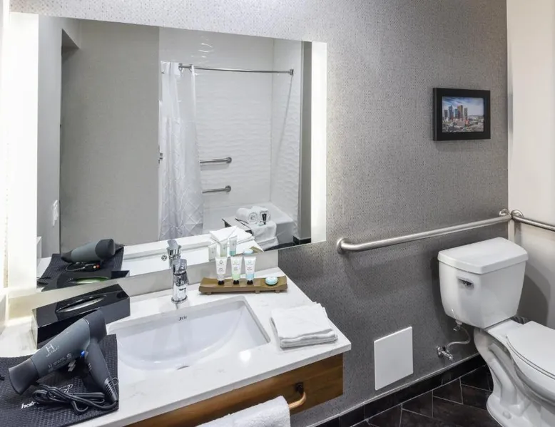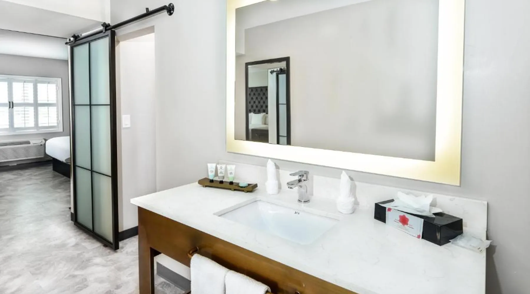 Comfortable Accommodations: Rooms feature air-conditioning, private bathrooms, hairdryers, and free toiletries. Each room includes a refrigerator, TV, and work desk, ensuring a pleasant stay. Leisure Facilities: Guests can enjoy a year-round outdoor swimming pool and free WiFi. Additional amenities include a elevator and parking, catering to various needs. Convenient Location: Located in Los Angeles, the hotel is 2.5 mi from Hawthorne Municipal Airport. Nearby attractions include Stubhub Center (5.6 mi) and Hustler Casino (1.9 mi). Guests appreciate the room size, comfort, and cleanliness. The air-conditioned suite has 1 bedroom and 1 bathroom with a bath and a shower. The suite features a seating area, a wardrobe, a safe deposit box, a sofa and a flat-screen TV with satellite channels. The unit has 2 beds.