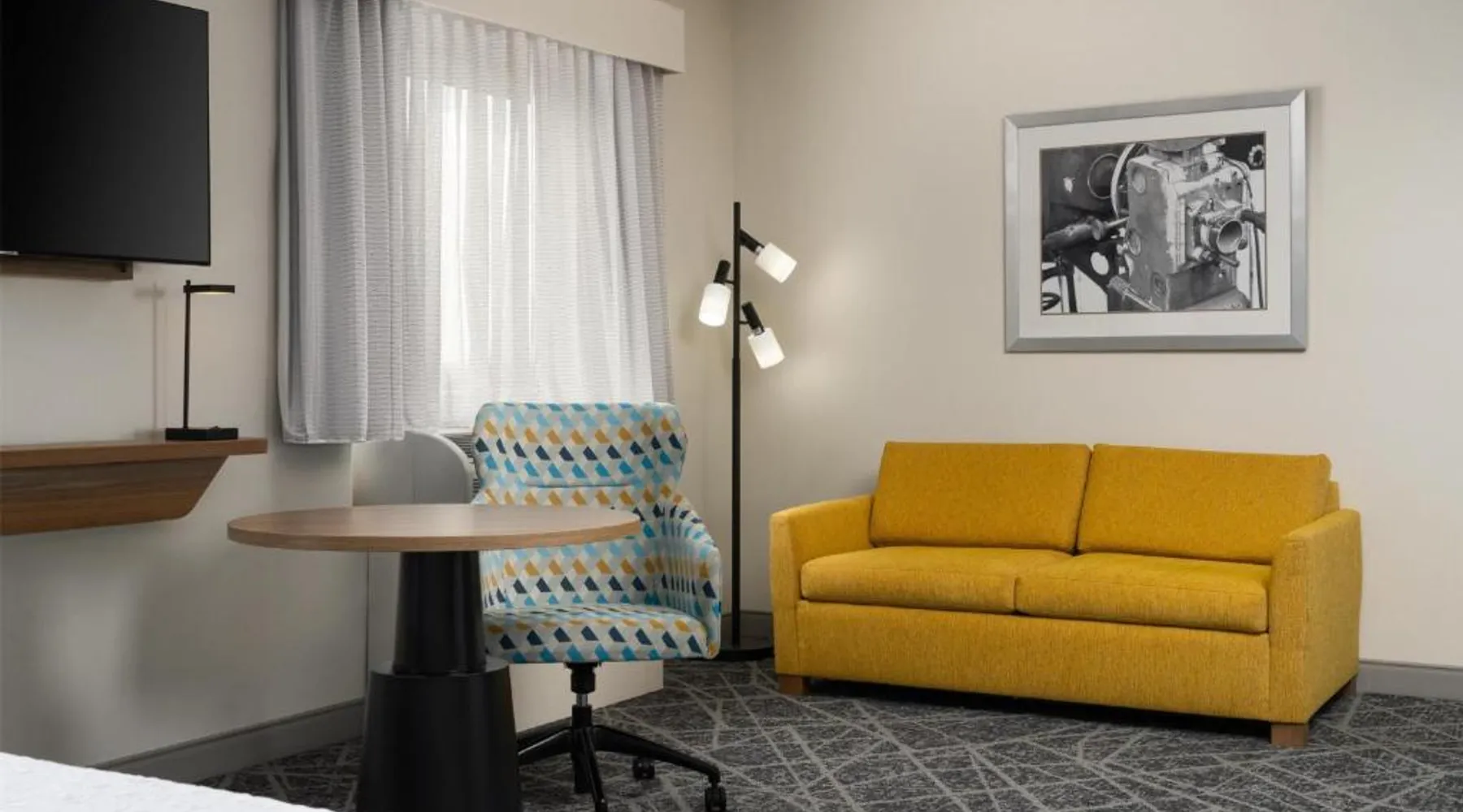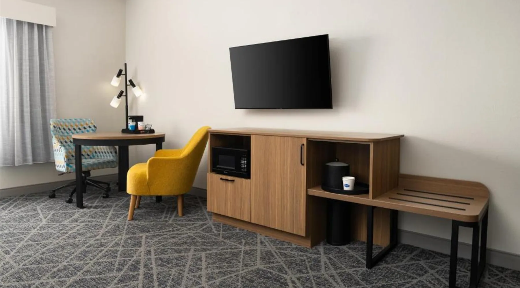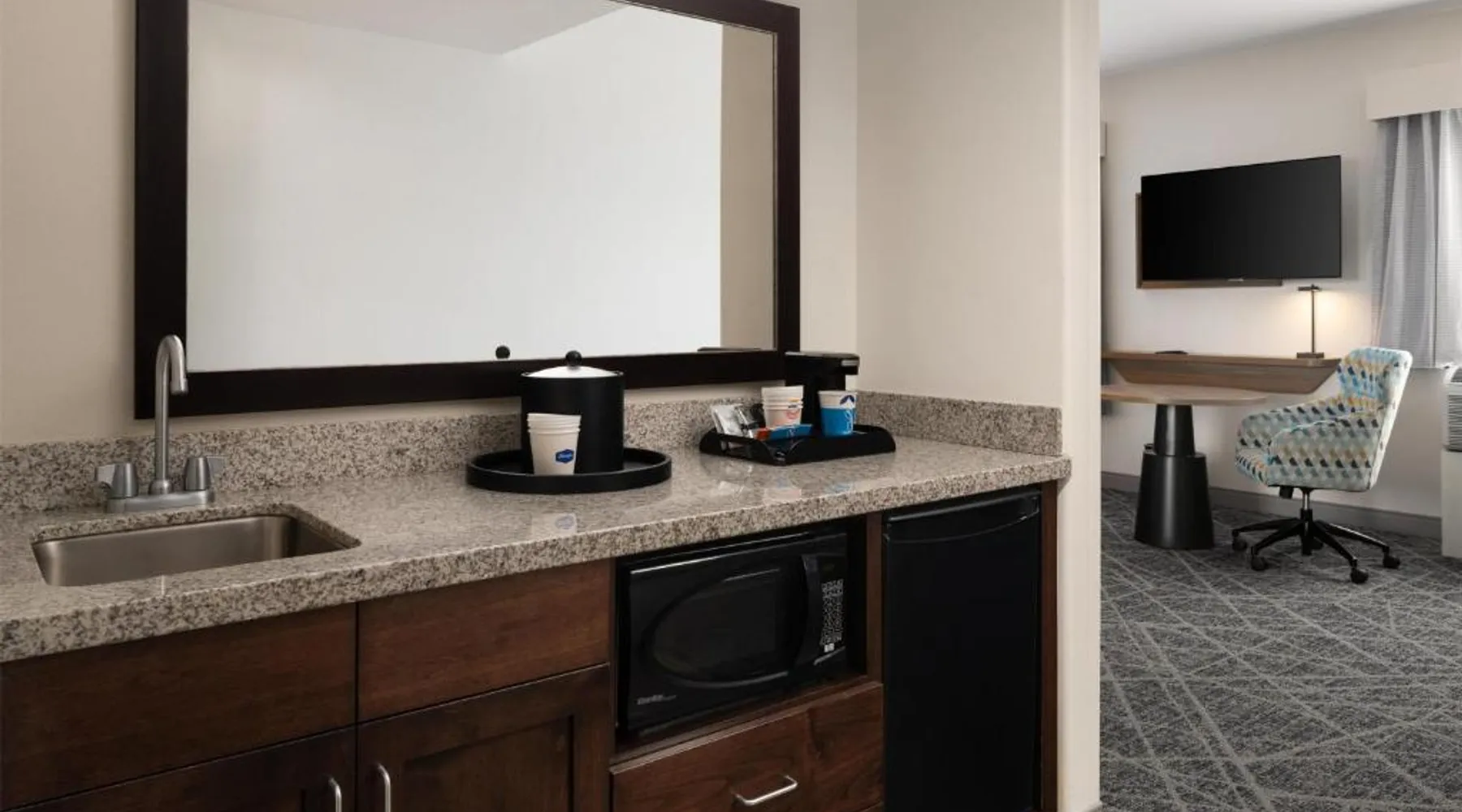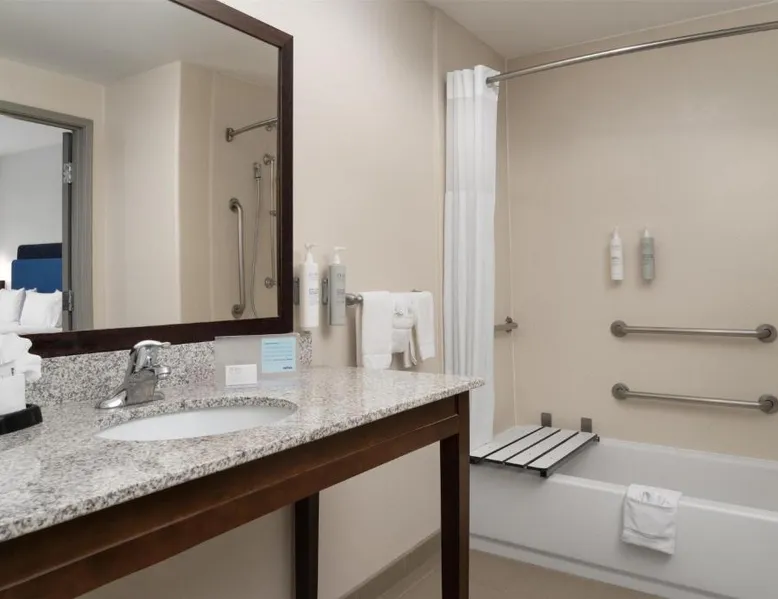 Comfortable Accommodations: Hampton Inn & Suites Albuquerque North/I-25 in Albuquerque offers family rooms with free WiFi, a fitness center, indoor swimming pool, and a hot tub. Guests enjoy a lounge, fitness room, and 24-hour front desk. Dining and Amenities: The hotel serves a continental, American, and buffet breakfast with fresh pastries, cheese, and fruits. Additional amenities include a business area, concierge service, and free on-site parking. Prime Location: Located 7.5 mi from Albuquerque International Sunport, the hotel is a 19-minute walk from Cliff's Amusement Park. Nearby attractions include Bernalillo Metropolitan Courthouse and Albuquerque Convention Center. Guest Satisfaction: Highly rated for room cleanliness, attentive staff, and excellent restaurant. A flat-screen cable TV, a microwave and a small refrigerator are featured in this room. An private bathroom with a hairdryer is also included.
