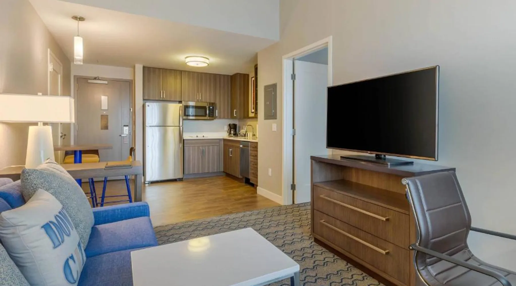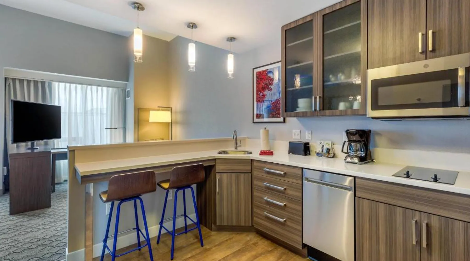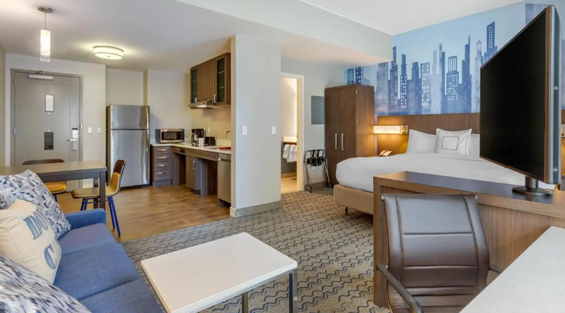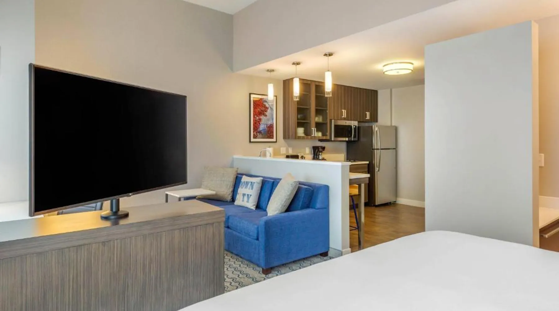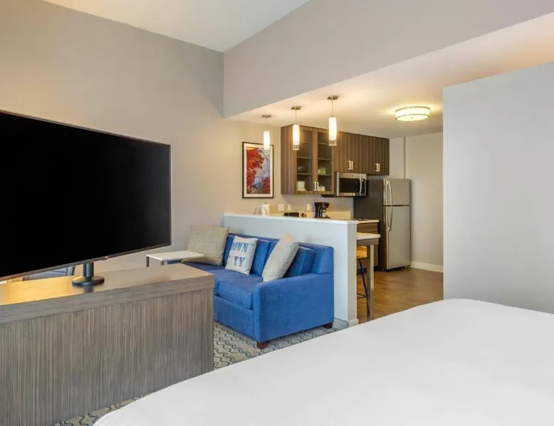 Comfortable Accommodations: Residence Inn Providence Downtown in Providence offers family rooms with air-conditioning, kitchenettes, and private bathrooms. Each room includes a work desk, free toiletries, and a seating area. Exceptional Facilities: Guests enjoy a fitness center, bar, and free WiFi. Additional amenities include a elevator, 24-hour front desk, daily housekeeping, business area, and full-day security. Convenient Location: Located 6.8 mi from T.F. Green Airport, the hotel is a short walk from Dunkin Doughnut Center and near Johnson And Wales University. Nearby attractions include Rhode Island School of Design Museum of Art and Brown University. Guest Satisfaction: Highly rated for its breakfast, convenient location, and room comfort. Featuring free toiletries, this suite includes a private bathroom with a bath, a shower and a hairdryer. Guests can make meals in the kitchen that features a refrigerator, a dishwasher, a microwave and a toaster. The suite features air conditioning, a private entrance, a tea and coffee maker, a seating area, as well as a flat-screen TV with streaming services.