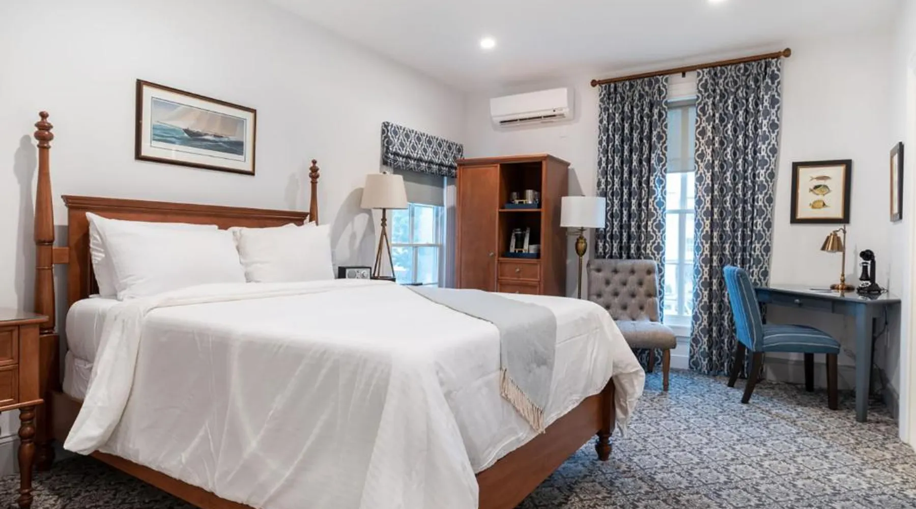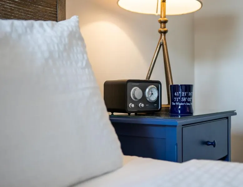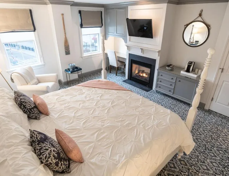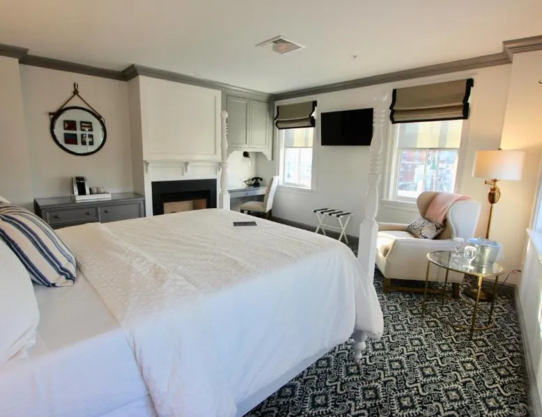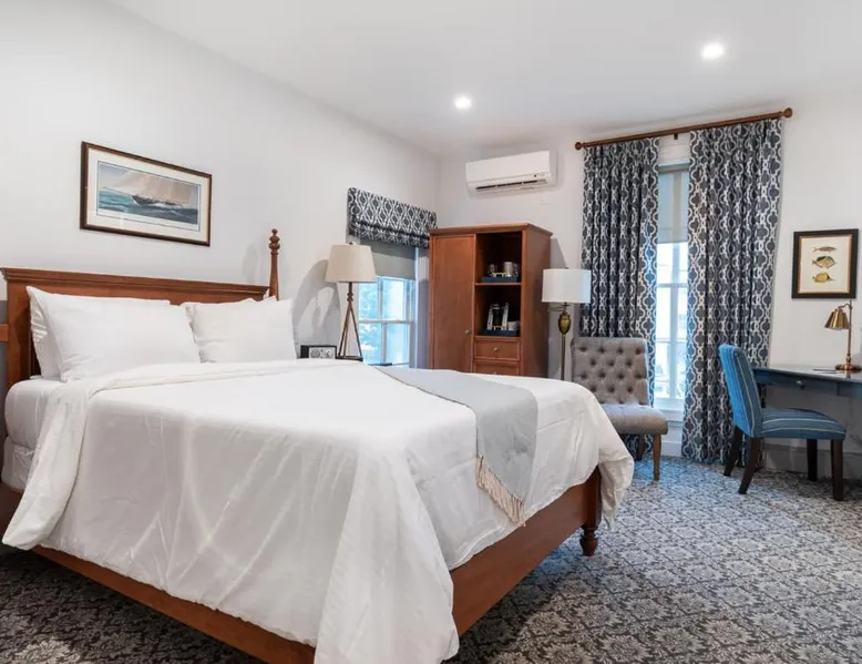 Located 2-miles off of I-95, this historic Mystic hotel offers complimentary Wi-Fi, a restaurant, and individually-designed guest rooms that feature Tuft & Needle mattresses and work desks. The Mystic River Bascule is around the corner, along with numerous shops, restaurants and pubs. Dark wood furnishing and plush bedding are featured in each room at Mystic Whaler’s Inn. Select rooms feature a fireplace. The Whaler’s Inn is located a half mile from Mystic Seaport Museum of America and the Sea and the Mystic Aquarium is a mere 6-minute drive. The property will be undergoing exterior renovations starting in January, with expected completion in March 2023. All guest facilities will still be available, and we will do our best to ensure the updates do not greatly impact the stay of our valued guests. This room features a work desk along with tea and coffee making facilities. Please note that the property is not disability accessible due to the historic nature of the property.