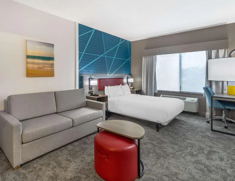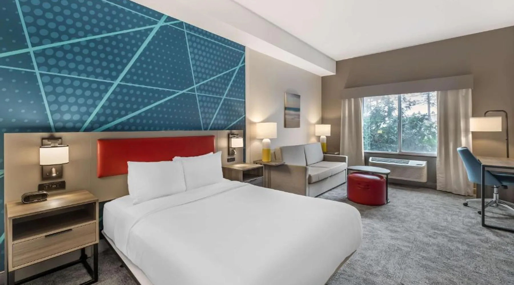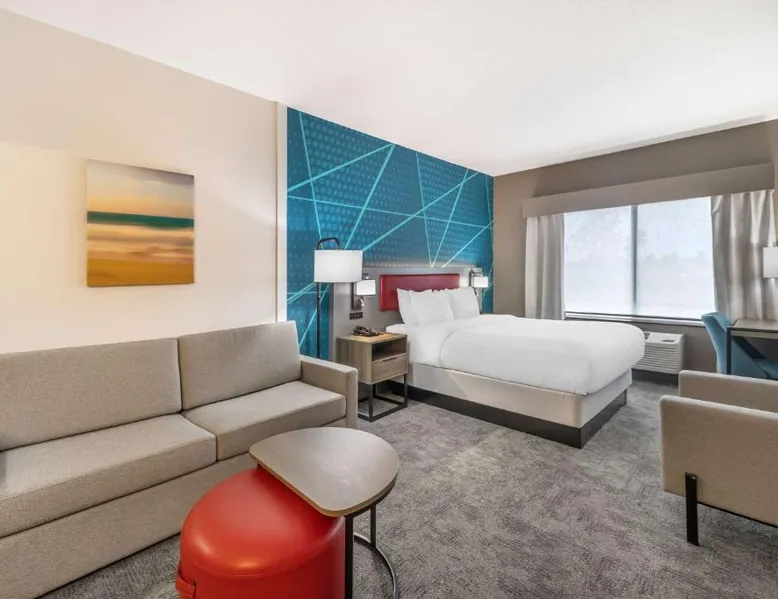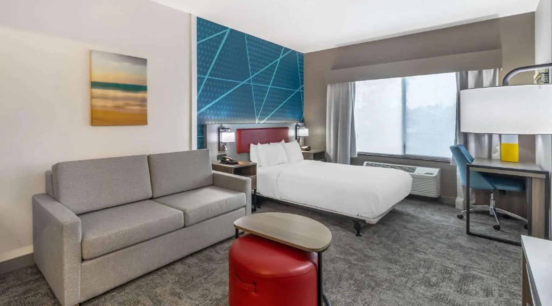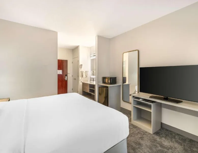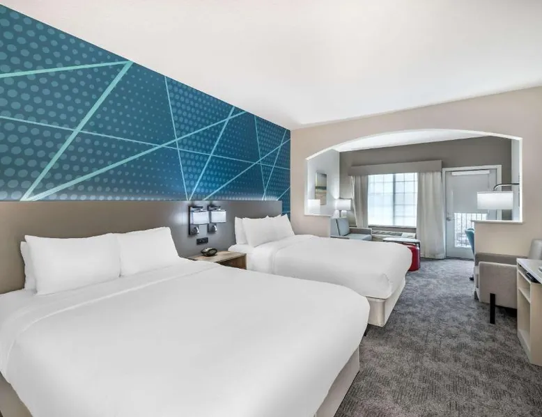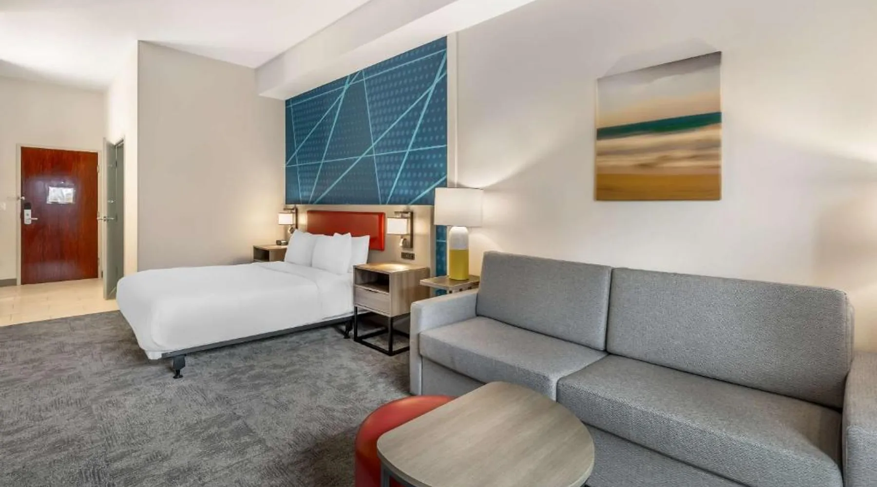 Comfortable Accommodations: Comfort Suites Redmond Airport in Redmond offers air-conditioned rooms with private bathrooms, tea and coffee makers, and free WiFi. Each room includes a work desk, TV, and sofa for added comfort. Relaxing Facilities: Guests can unwind at the spa and wellness center, indoor swimming pool, and hot tub. The property also features a fitness room, lounge, and 24-hour front desk. Convenient Services: The hotel provides a free airport shuttle service, free on-site private parking, and express check-in and check-out. Additional amenities include a business area, housekeeping, and luggage storage. Local Attractions: Located 1.9 mi from Redmond Municipal Airport, the hotel is near Hollinshead Park (14 mi), Drake Park (15 mi), and Ponderosa Park (16 mi). Guests appreciate the breakfast provided by the property and the convenient location. A microwave, refrigerator and flat-screen cable TV are included in this suite.