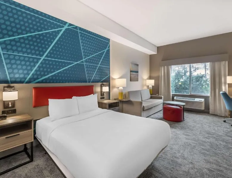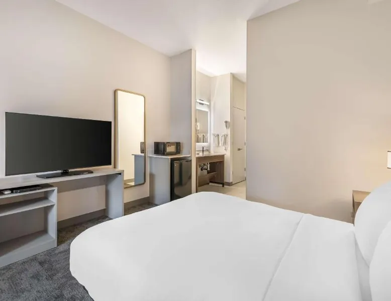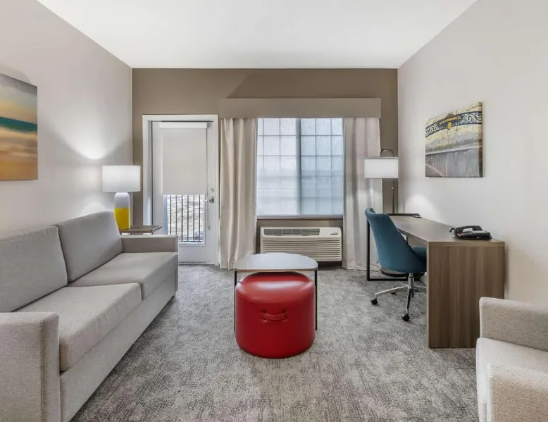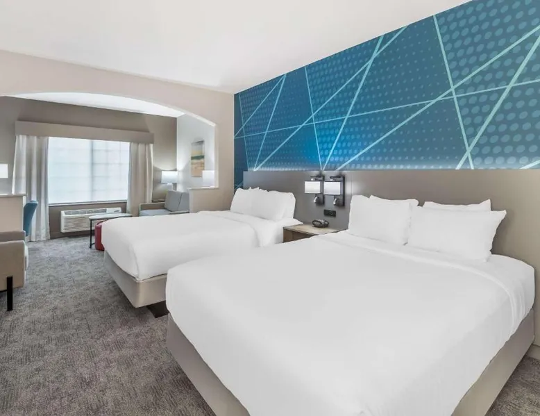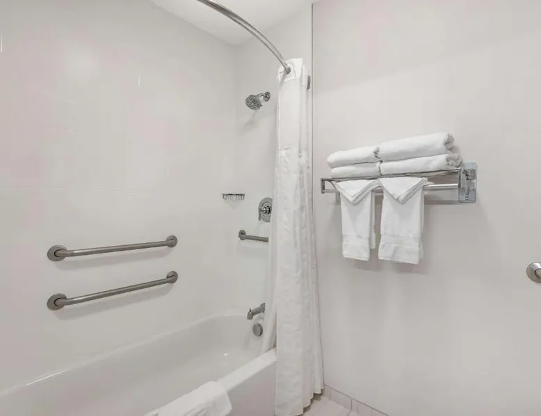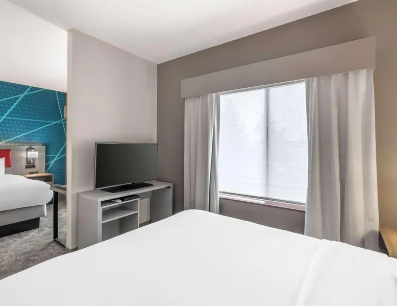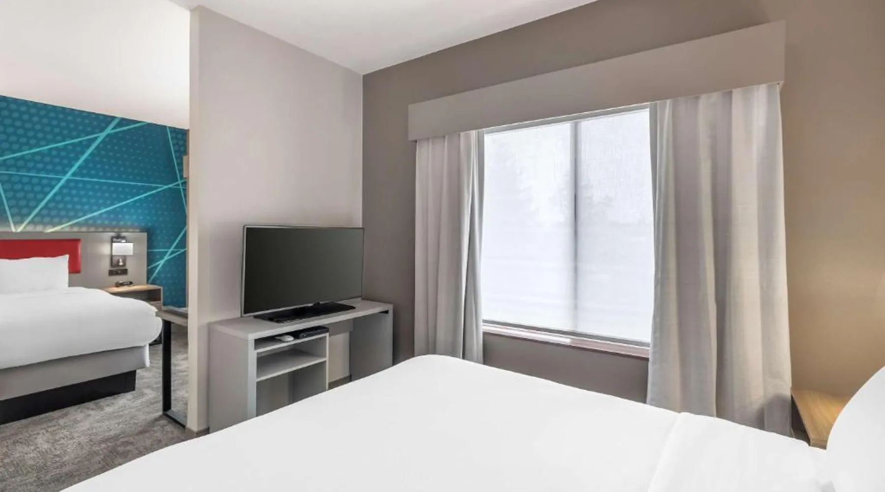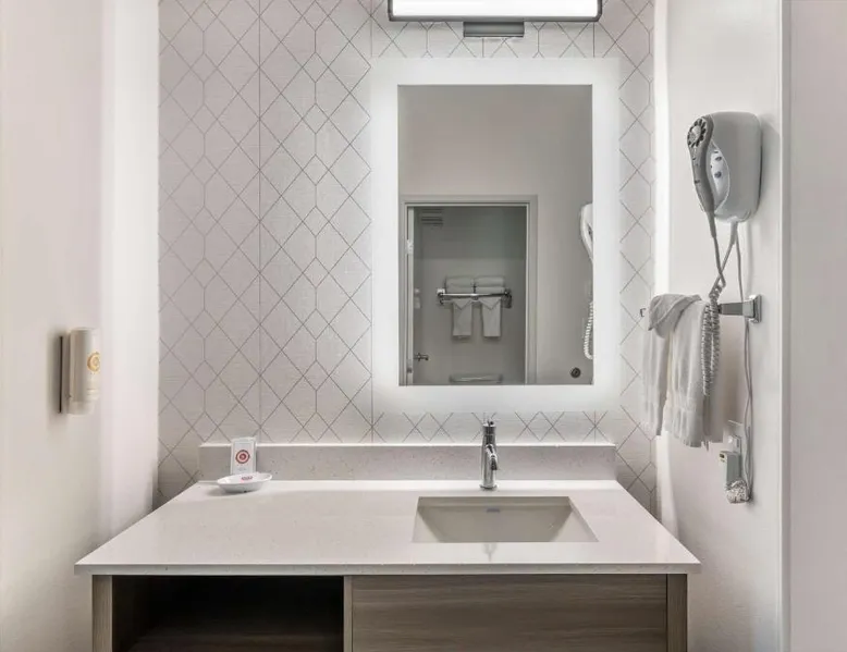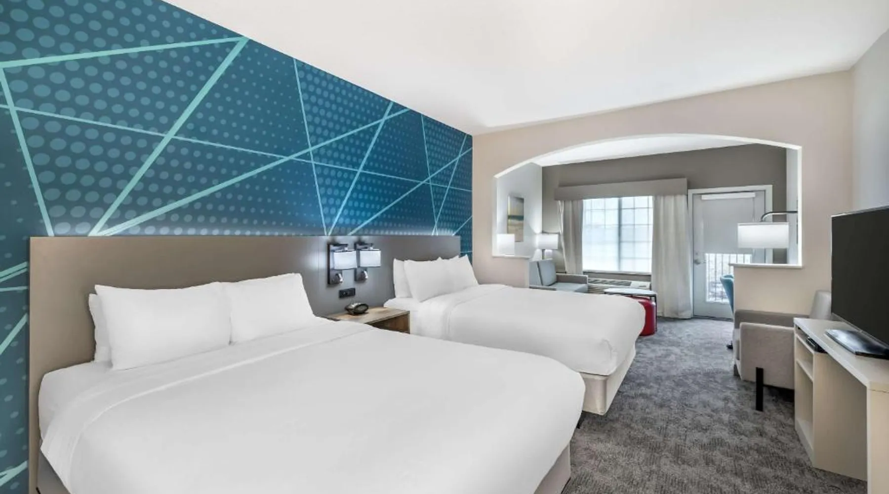 Comfortable Accommodations: Comfort Suites Redmond Airport in Redmond offers air-conditioned rooms with private bathrooms, tea and coffee makers, and free WiFi. Each room includes a work desk, TV, and sofa for added comfort. Relaxing Facilities: Guests can unwind at the spa and wellness center, indoor swimming pool, and hot tub. The property also features a fitness room, lounge, and 24-hour front desk. Convenient Services: The hotel provides a free airport shuttle service, free on-site private parking, and express check-in and check-out. Additional amenities include a business area, housekeeping, and luggage storage. Local Attractions: Located 1.9 mi from Redmond Municipal Airport, the hotel is near Hollinshead Park (14 mi), Drake Park (15 mi), and Ponderosa Park (16 mi). Guests appreciate the breakfast provided by the property and the convenient location. A microwave, refrigerator and flat-screen cable TV are included in this suite.