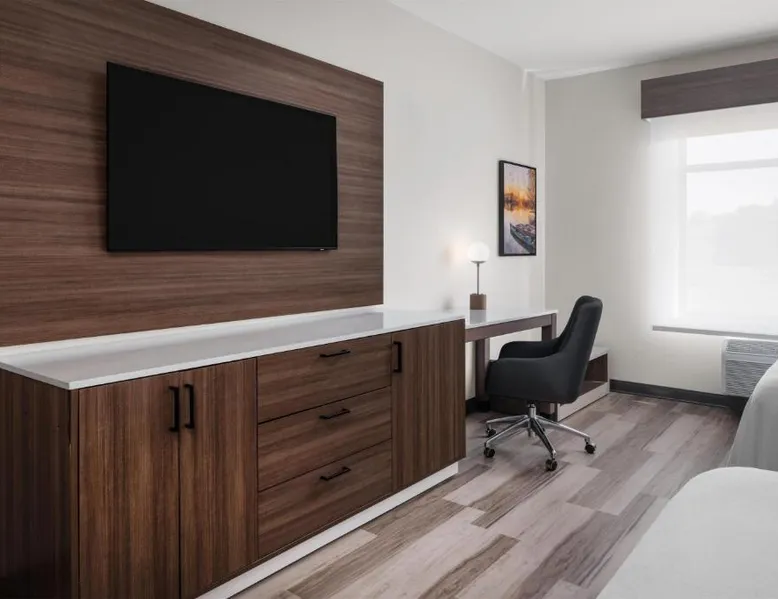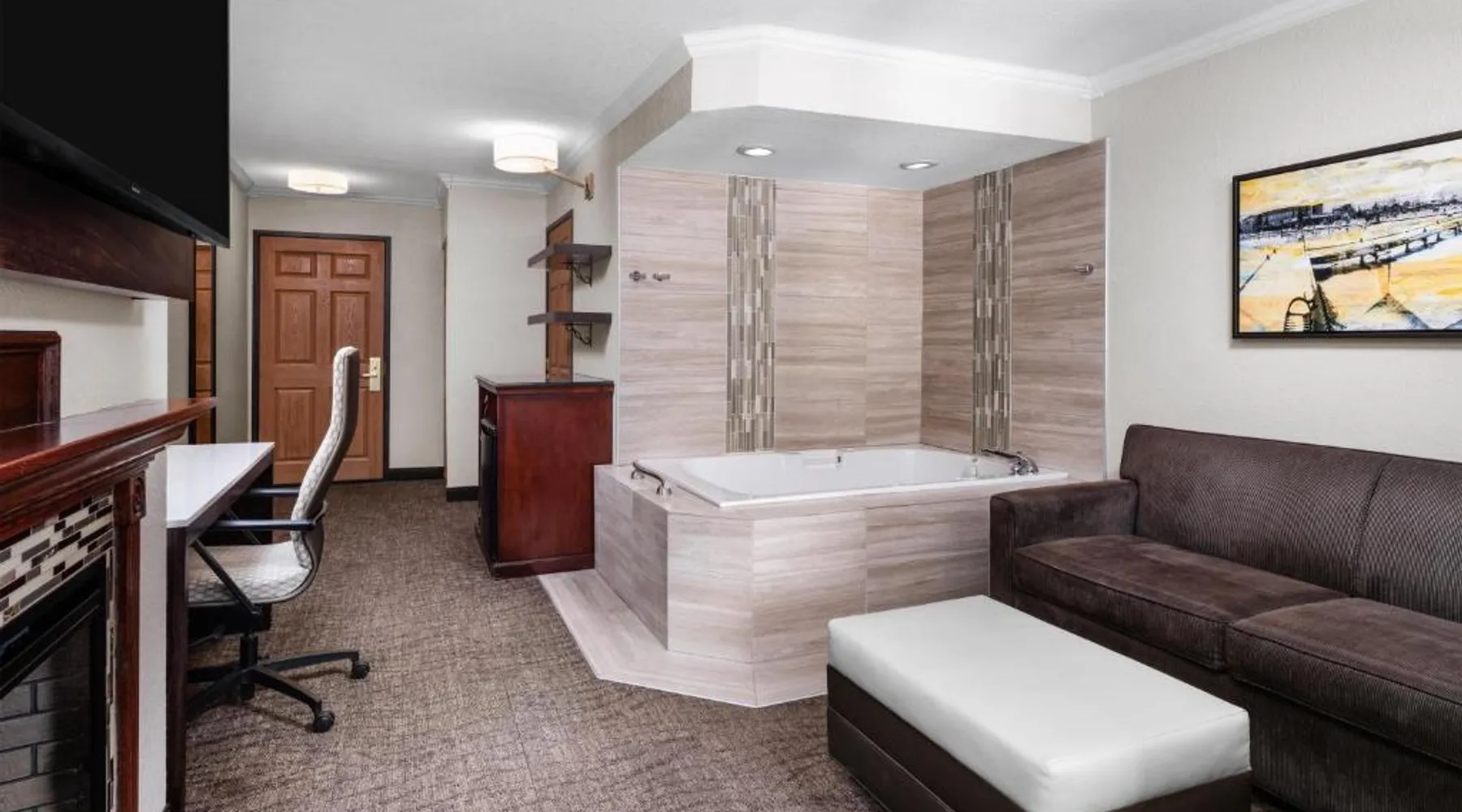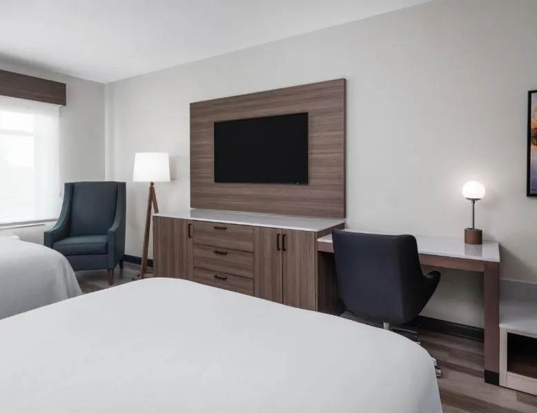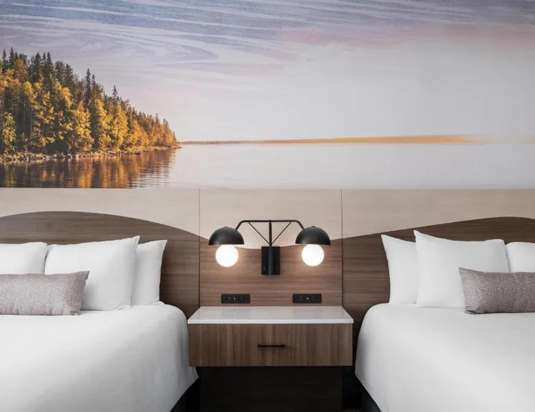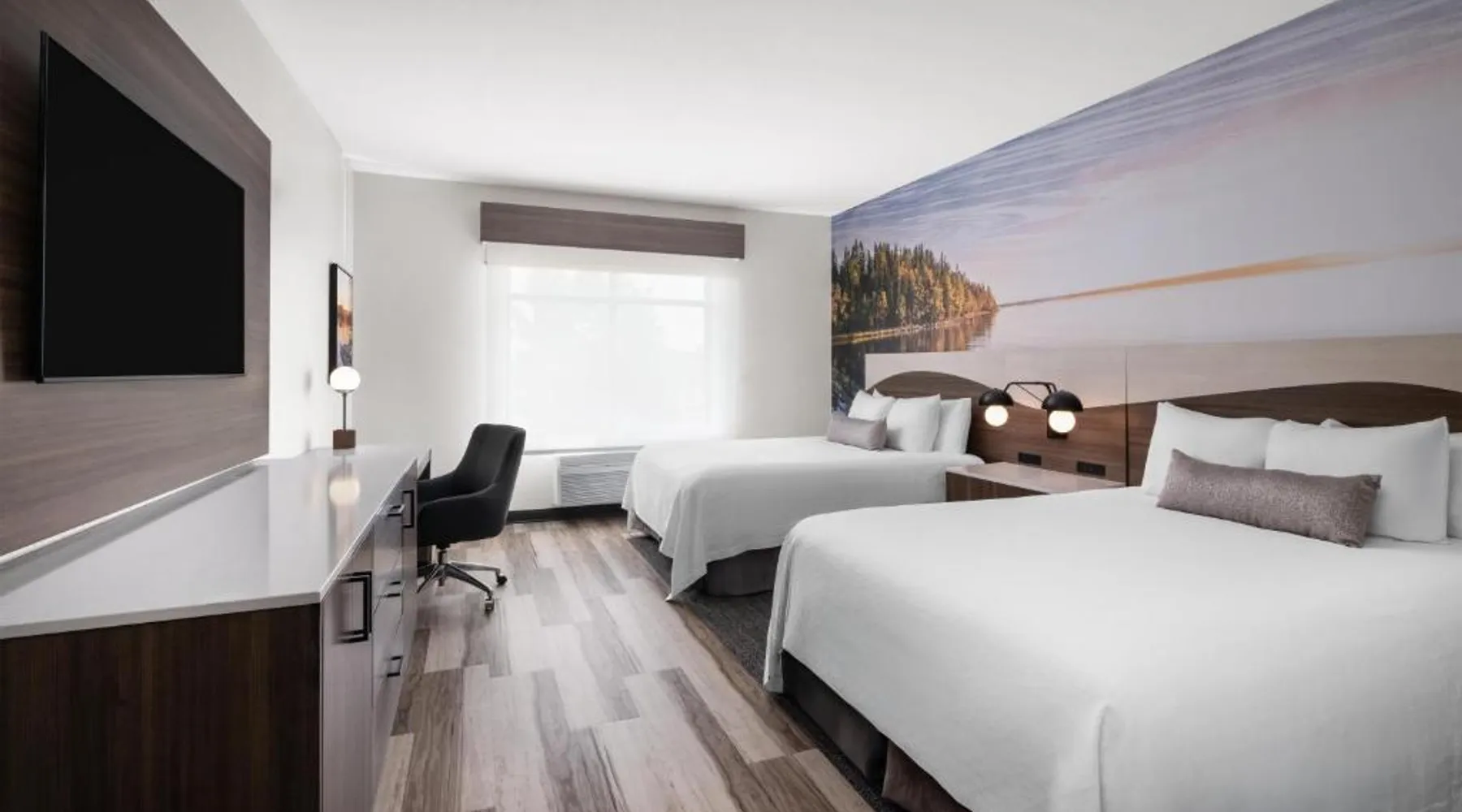 Comfortable Accommodations: Best Western Premier Bridgewood Hotel Resort in Neenah offers family rooms with private bathrooms, air-conditioning, and free WiFi. Each room includes a work desk, refrigerator, and TV. Exceptional Facilities: Guests enjoy a fitness center, sun terrace, indoor swimming pool, tennis court, and free bicycles. Additional amenities include a hot tub, sauna, and outdoor fireplace. Dining and Leisure: The hotel features an American restaurant and bar, offering live music. Free on-site parking and a minimarket enhance the stay. Convenient Location: Located 6.8 mi from Outagamie County Regional Airport, the hotel is near attractions such as Fox Cities Stadium (9.3 mi) and The History Museum at the Castle (9.9 mi). The quadruple room offers a tea and coffee maker and a safe deposit box. The unit has 2 beds.