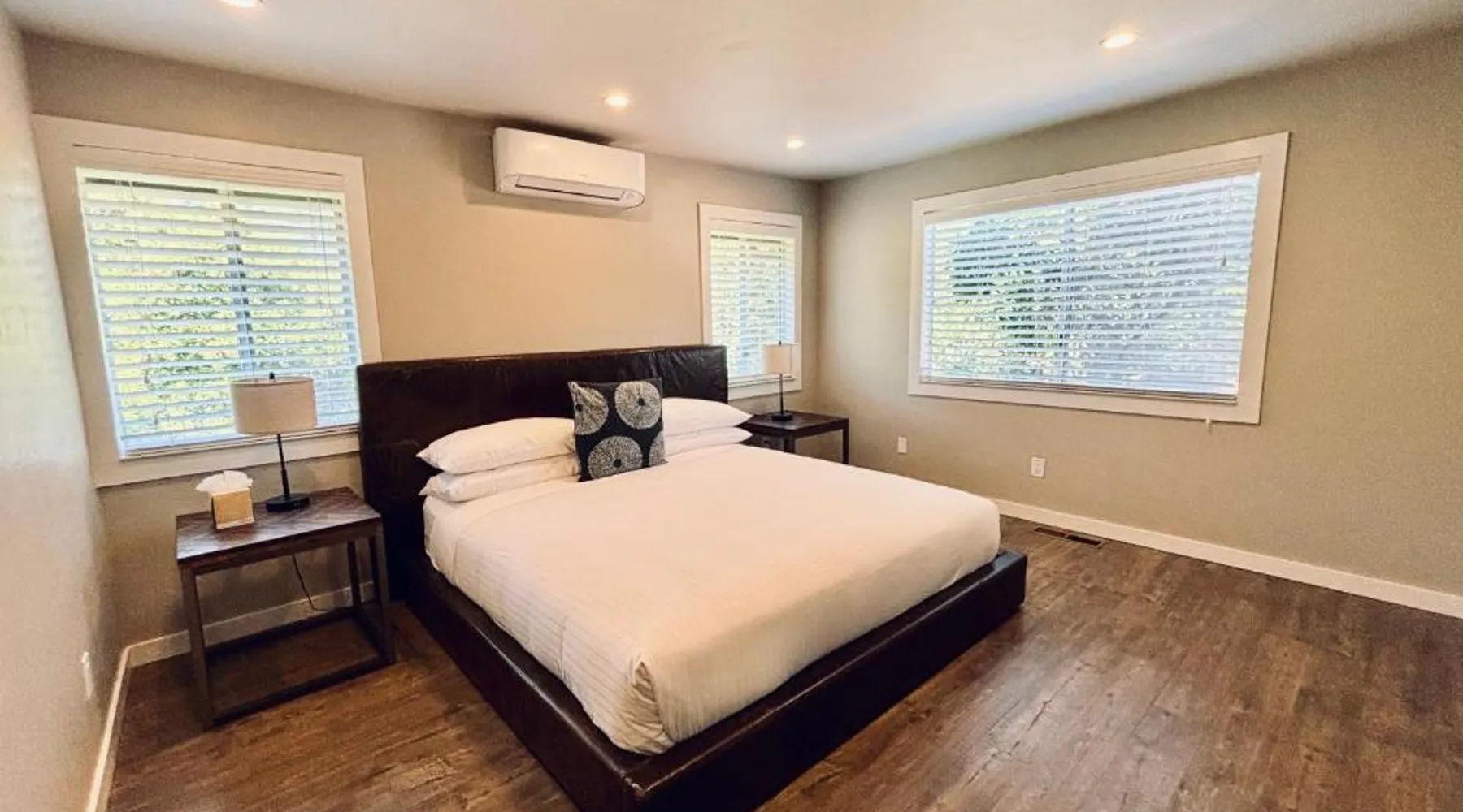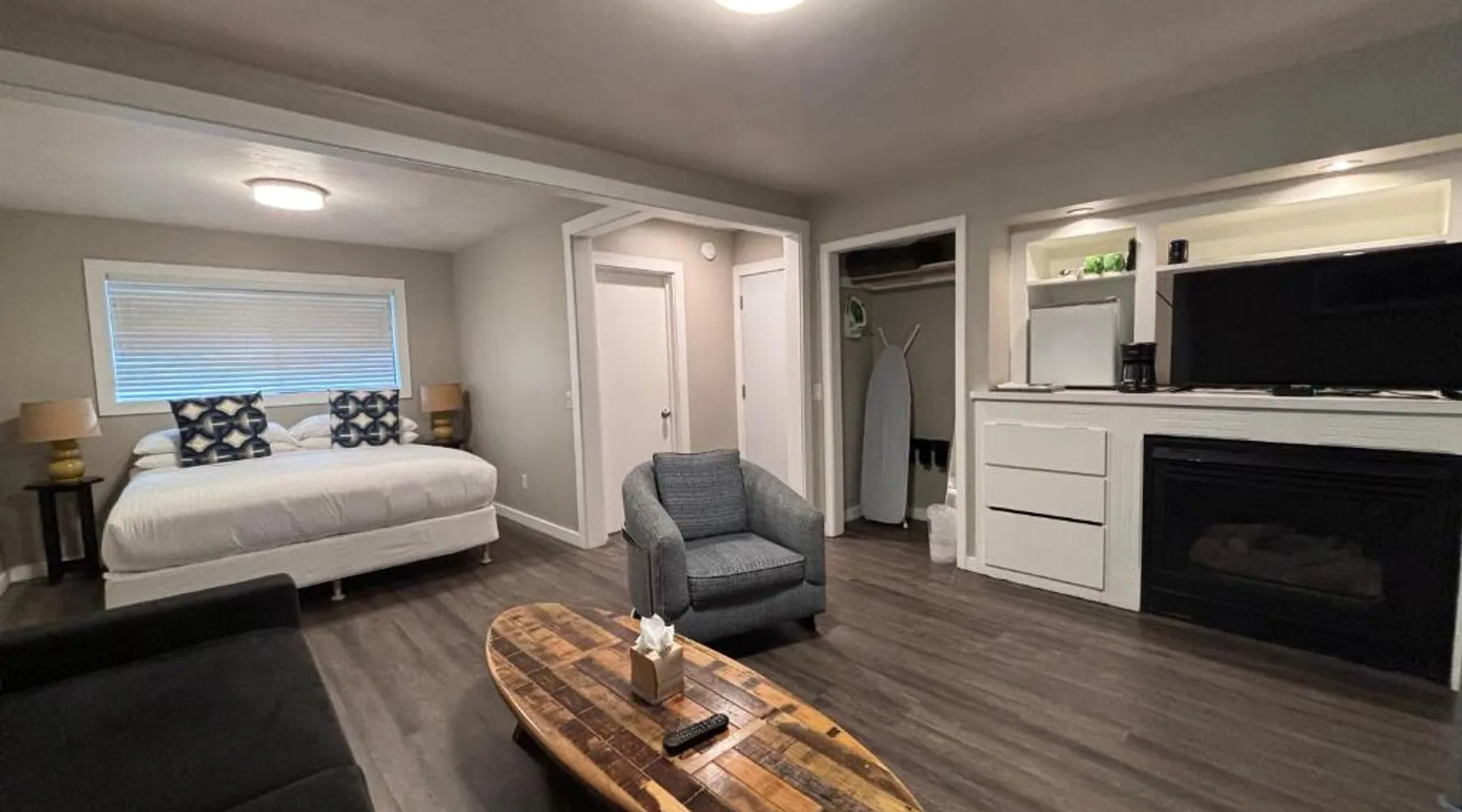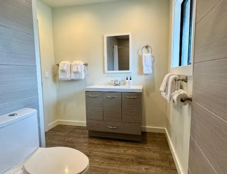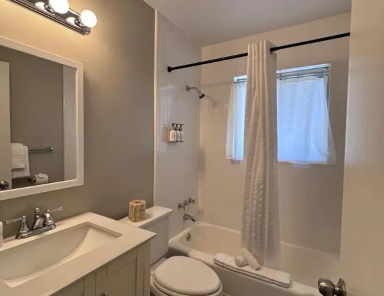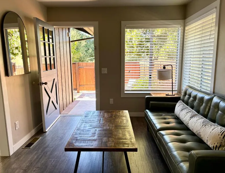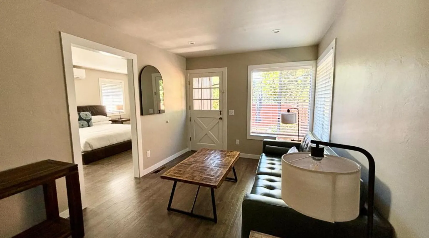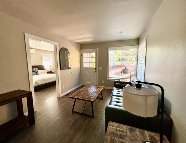 Nestled among the Santa Lucia Mountains, Hidden Valley Inn is just 5 minutes walk to Carmel Valley Village where guests can explore many wine tasting rooms, boutique shops, and fine restaurants offering al fresco style dining. Free guest parking is provided on site. Guest rooms offer cable TV, complimentary WiFi, and a private bathroom with a hairdryer and organic bath products. All rooms will have either a pool, garden, or a mountain view and most offer private outdoor patio space with table and seating. The Inn also offers a spacious communal courtyard surrounding an outdoor swimming pool with lawn and seating Vineyards, golf courses, and scenic trails are all nearby. Guests can visit the nearby Garland Ranch Regional Park, featuring miles of varied hiking trails as well as access to the beautiful Carmel River. Carmel-By-The-Sea, downtown Monterey, and WeatherTech Raceway Laguna Seca are all a short drive away. The Big Sur coast is breathtaking, one hour drive south. This room features a king sized bed. Either a ground level room with outdoor patio or a second level room with deck. It includes in room coffee and cable TV.
