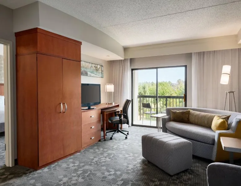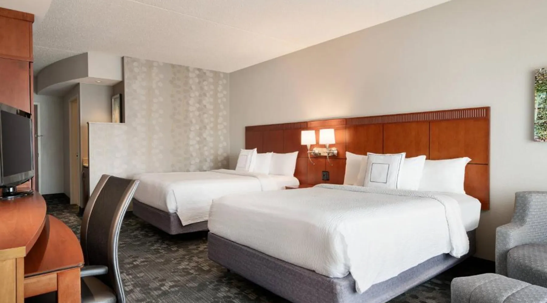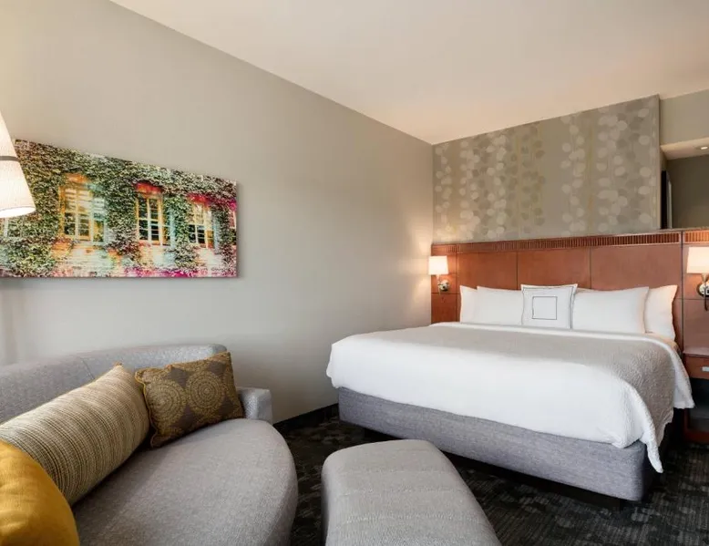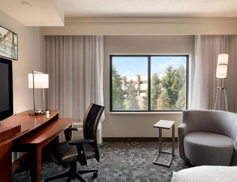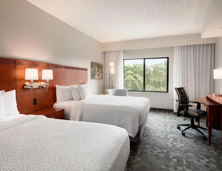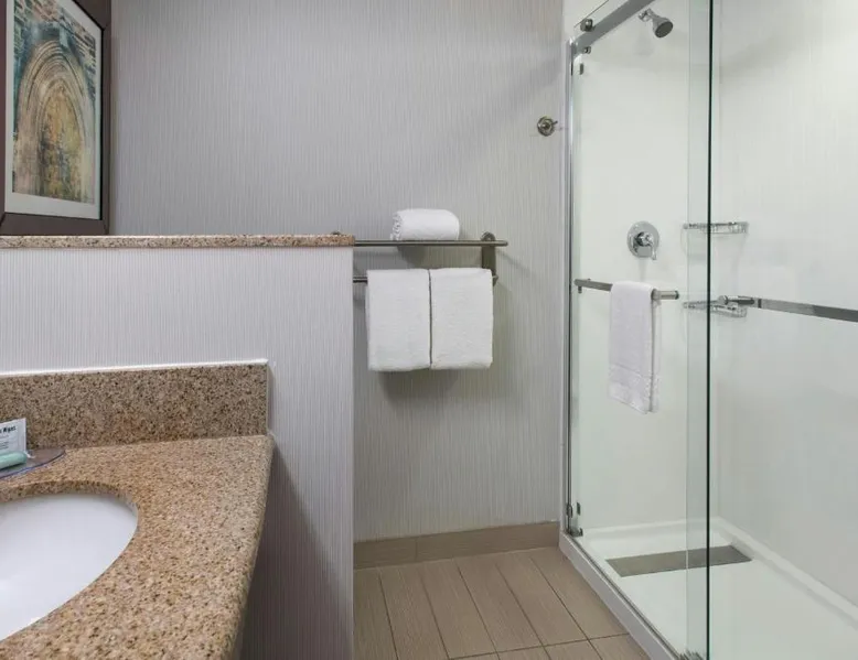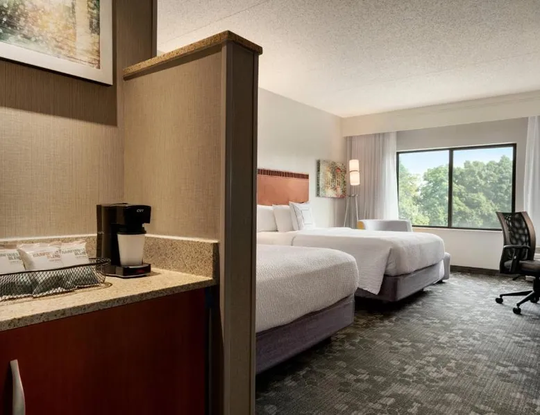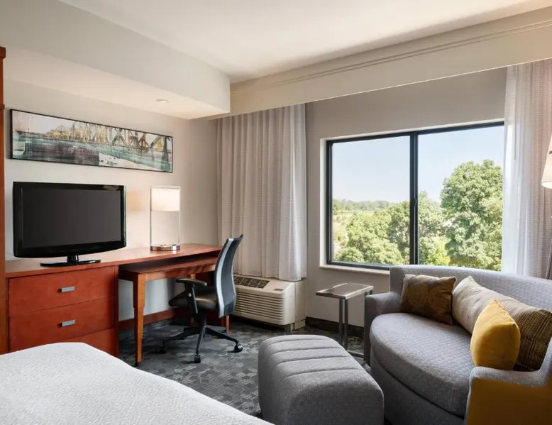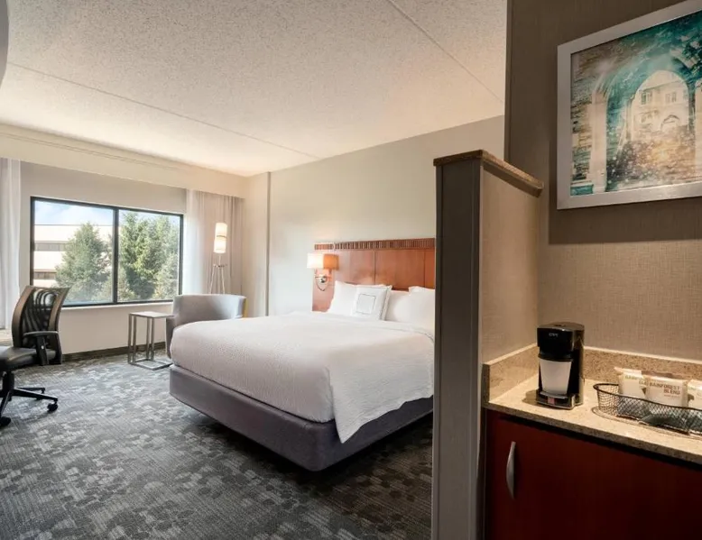 Comfortable Accommodations: Courtyard Ewing Princeton in Ewing offers spacious rooms with air-conditioning, private bathrooms, and modern amenities. Guests enjoy free WiFi, flat-screen TVs, and work desks. Exceptional Facilities: The hotel features a fitness center, indoor swimming pool, and free airport shuttle service. Additional amenities include a restaurant, bar, lounge, outdoor fireplace, and picnic area. Dining Experience: A restaurant serves American cuisine with fresh pastries for breakfast and dinner. An on-site bar provides a relaxing atmosphere for guests. Prime Location: Located a few steps from Trenton-Mercer Airport, the hotel is near attractions such as Sesame Place (12 mi), Princeton University (13 mi), and Six Flags Great Adventure & Wild Safari (29 mi). Features a sofa bed. Also offers a flat-screen cable TV, microwave and fridge.