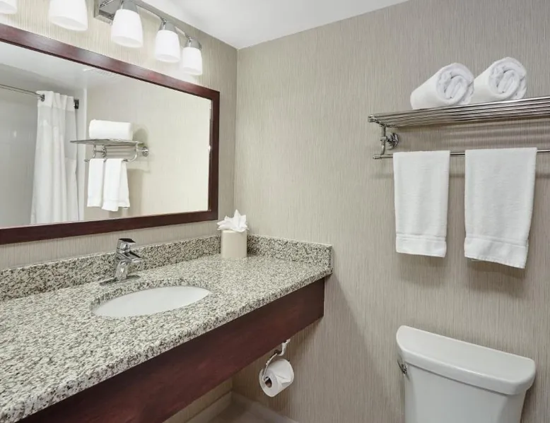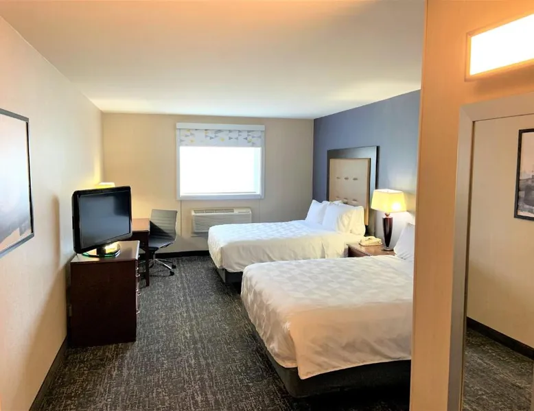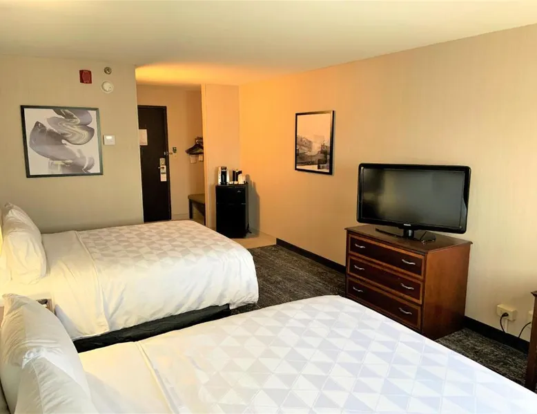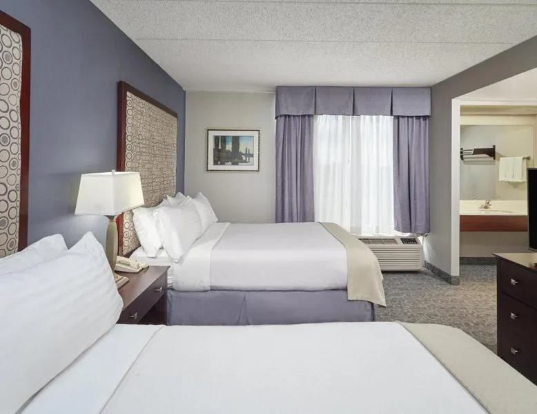 Comfortable Accommodations: Holiday Inn & Suites Chicago-Carol Stream Wheaton by IHG in Carol Stream offers comfortable rooms with air-conditioning, private bathrooms, and modern amenities. Each room includes a work desk, free WiFi, and a flat-screen TV. Dining and Leisure: Guests can enjoy a family-friendly restaurant serving American cuisine, a bar, and an indoor swimming pool. Additional facilities include a fitness center, hot tub, and outdoor seating area. Convenient Location: Located 14 mi from Chicago O'Hare International Airport, the hotel is near attractions such as United Center (25 mi) and Lincoln Park Zoo (27 mi). Free on-site parking is available. Guest Satisfaction: Highly rated for its convenient location, room cleanliness, and attentive staff. Offering free Wi-Fi and a flat-screen TV, this room includes a microwave and a refrigerator. Bed type preference cannot be guaranteed as it will be allocated upon arrival based on availability.