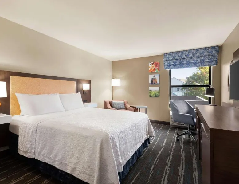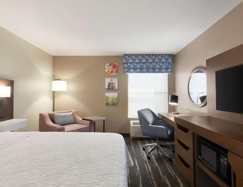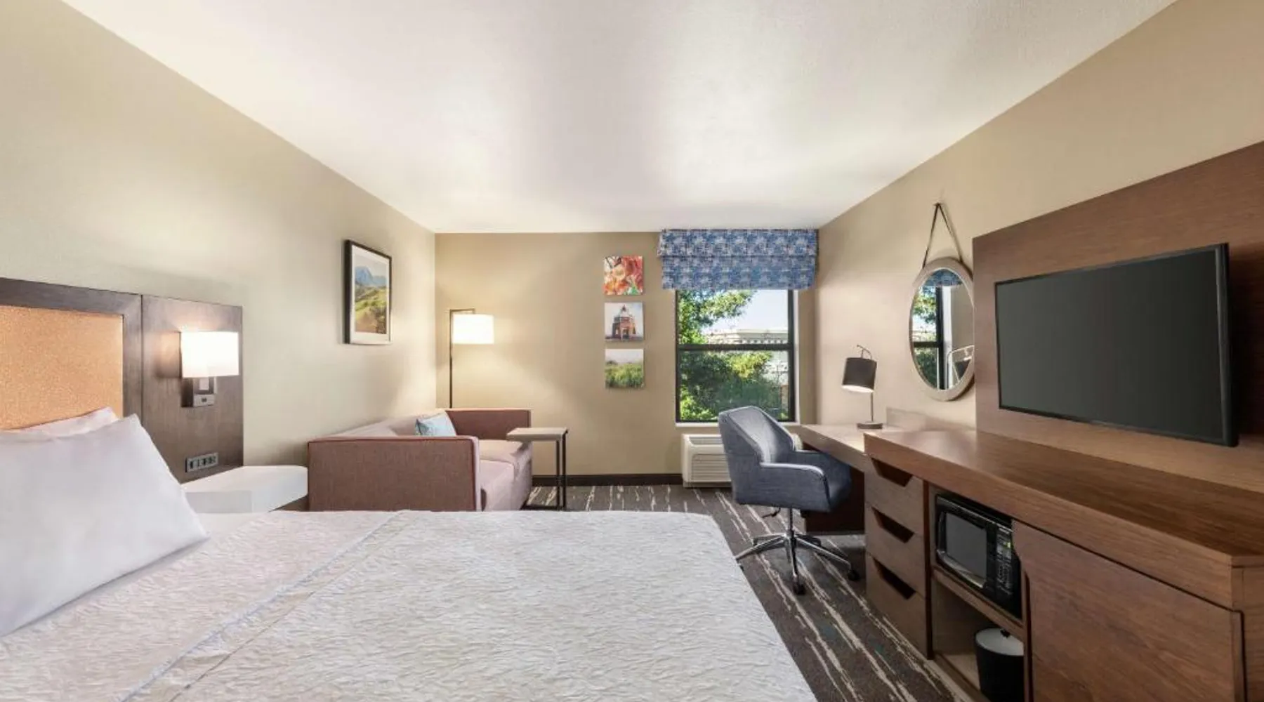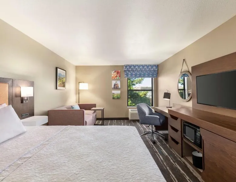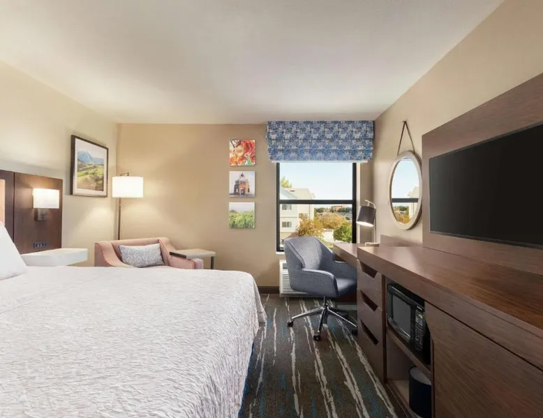 Comfortable Accommodations: Hampton Inn Tracy in Tracy offers family rooms with air-conditioning, free WiFi, and amenities such as a fitness center, elevator, 24-hour front desk, business area, and paid on-site private parking. Convenient Facilities: Guests can enjoy a fitness room, work desk, free toiletries, microwave, shower, TV, and sofa bed. The hotel provides an American breakfast and is 21 mi from Stockton Metropolitan Airport. Prime Location: Located 25 mi from University of the Pacific, 17 mi from Newport Casino, 28 mi from Lone Tree Golf Course, and 31 mi from Alameda County Fairgrounds. Guests appreciate the attentive staff and excellent service. This room includes a sofa bed, microwave and refrigerator.